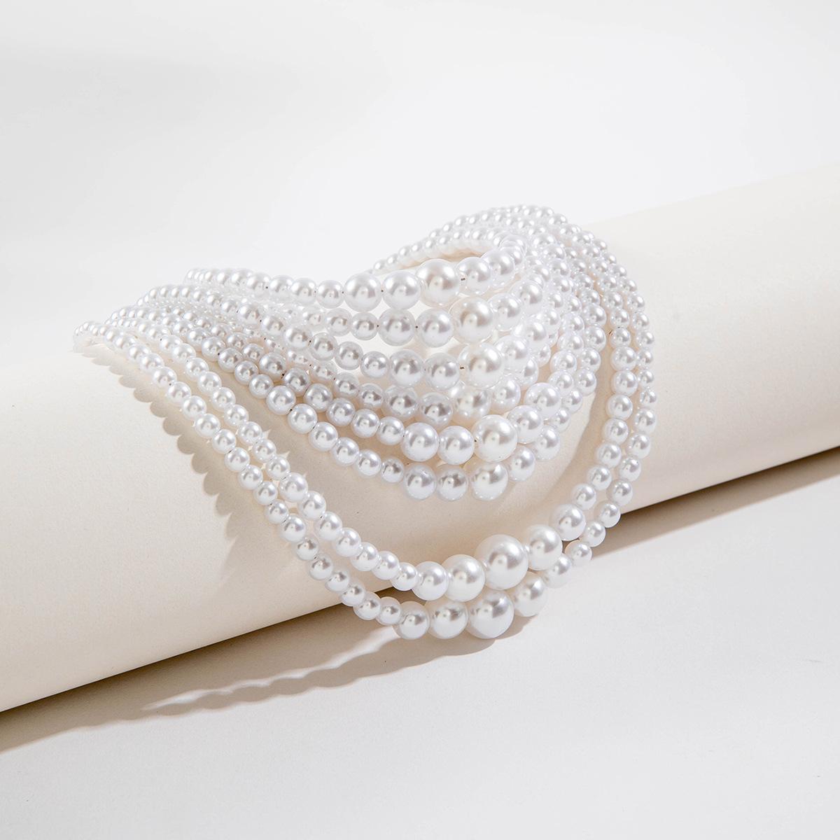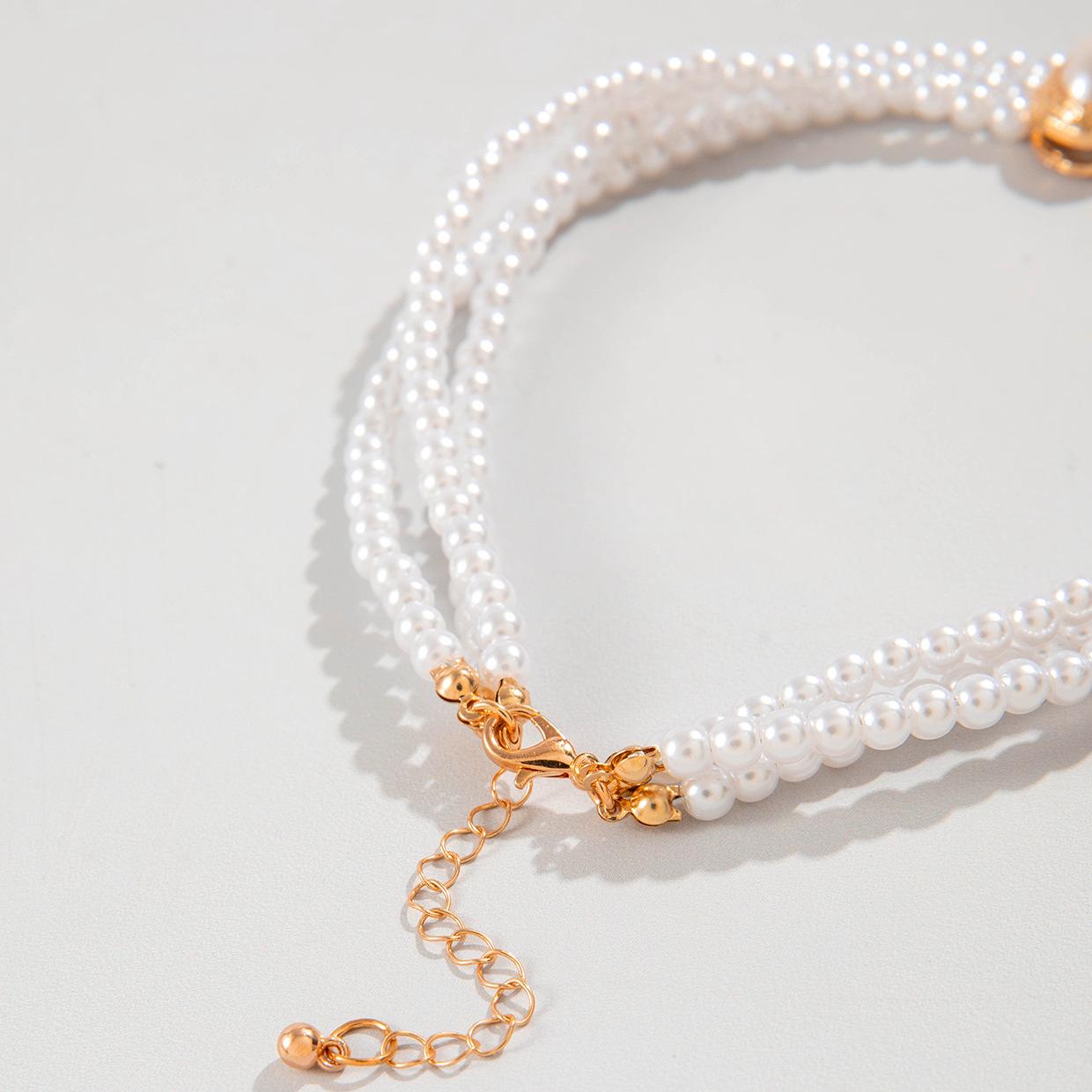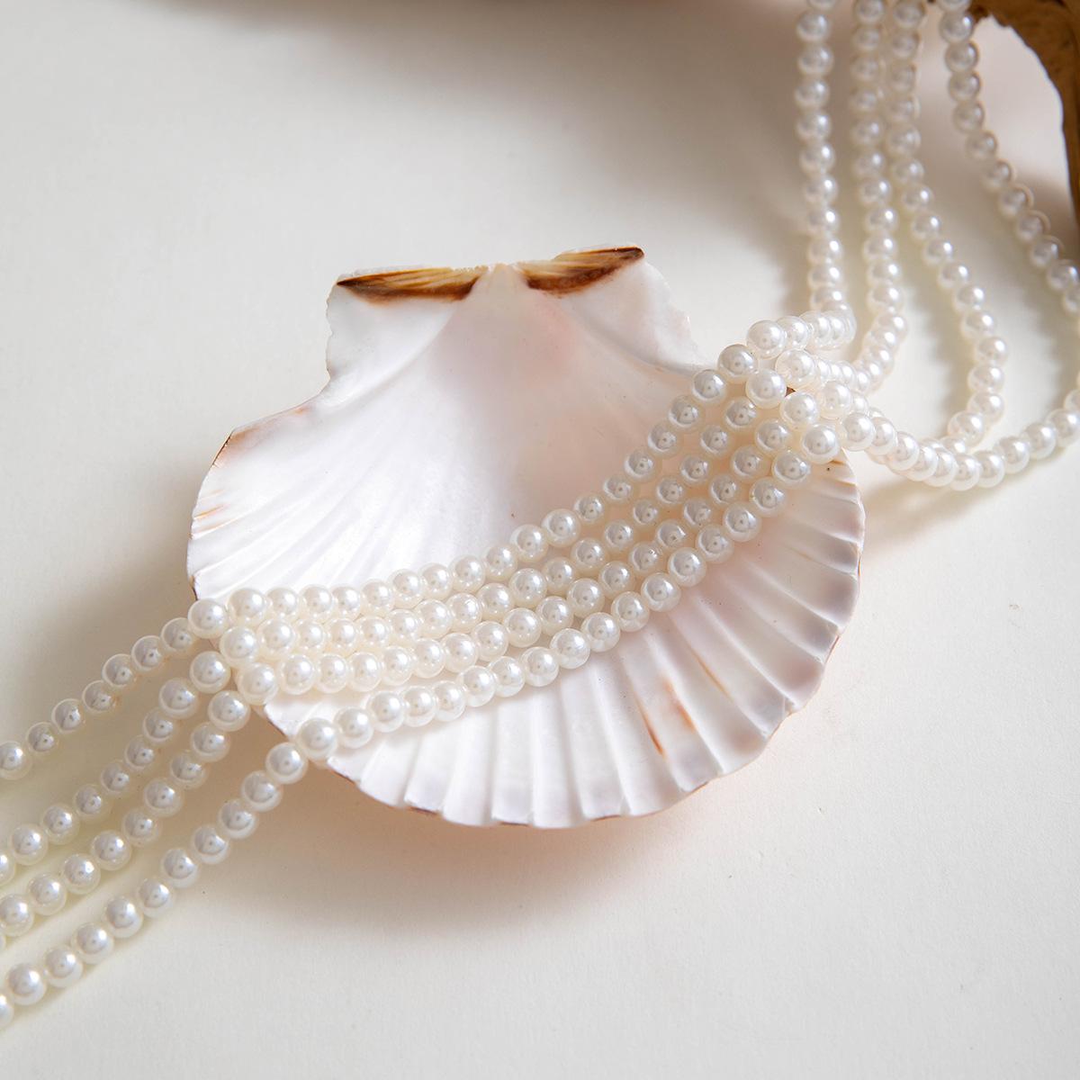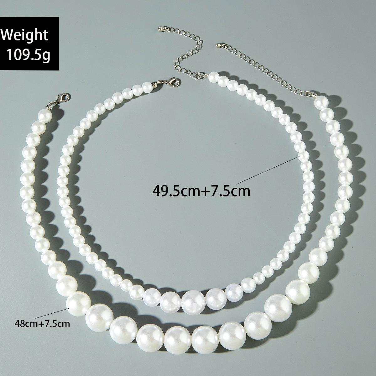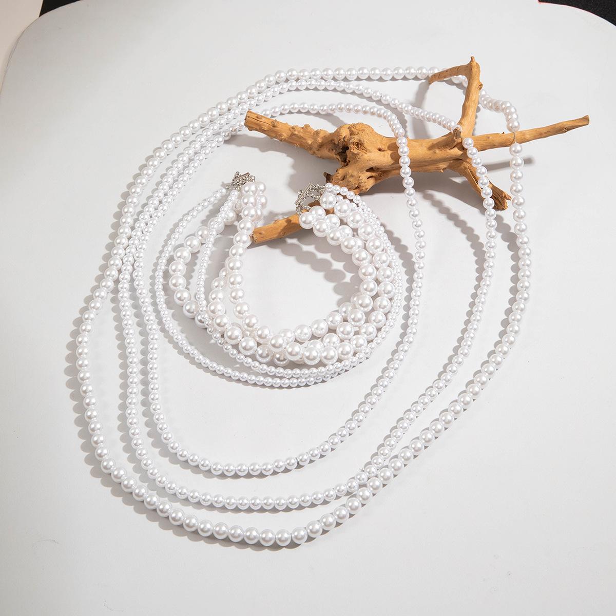 Collar Retro Geométrico con Cuentas de Moda Transfronteriza Europea y Americana Simple Elegante Perla de Imitación Diseño Multicapa Cadena Larga para Clavícula