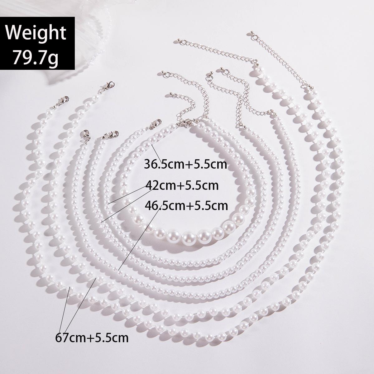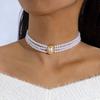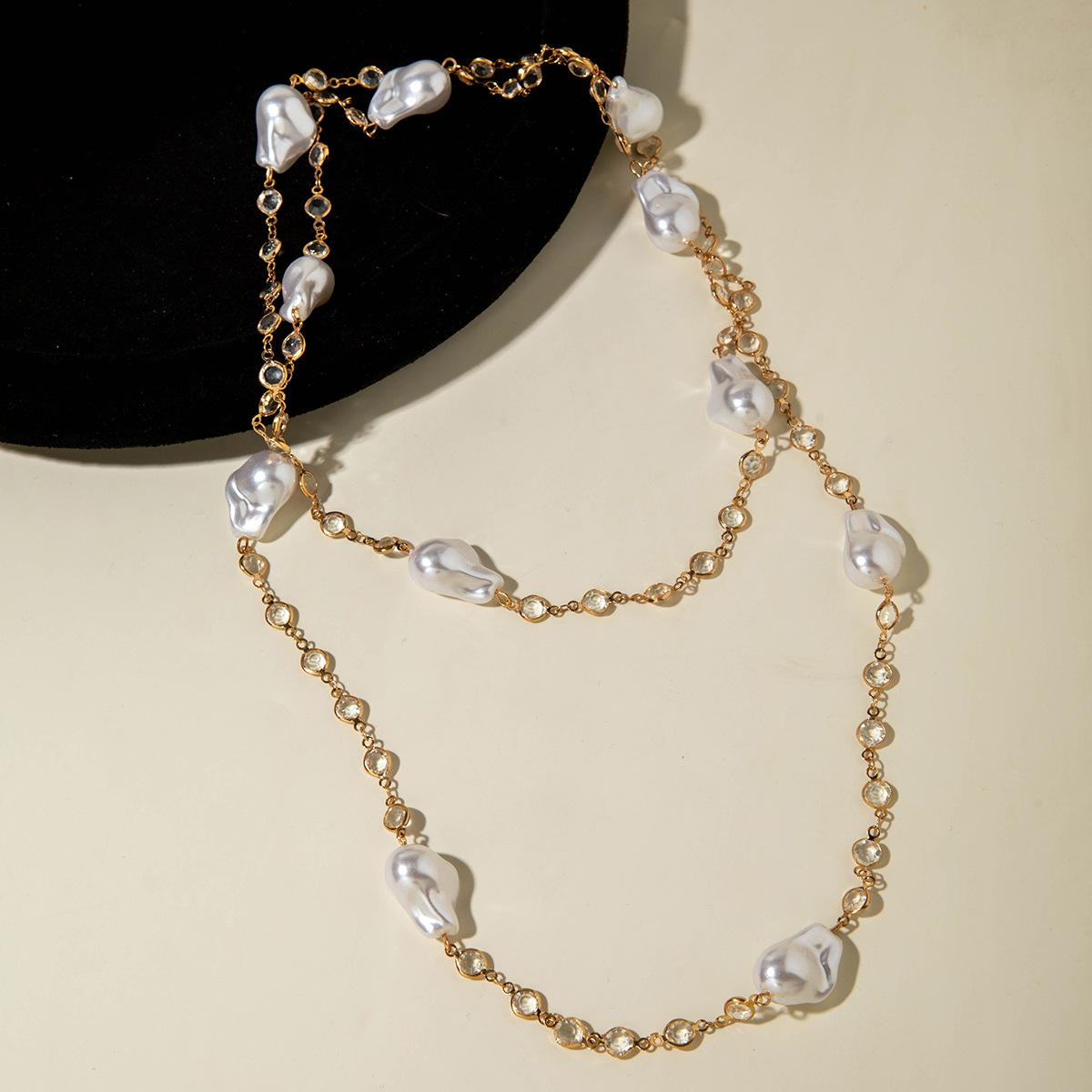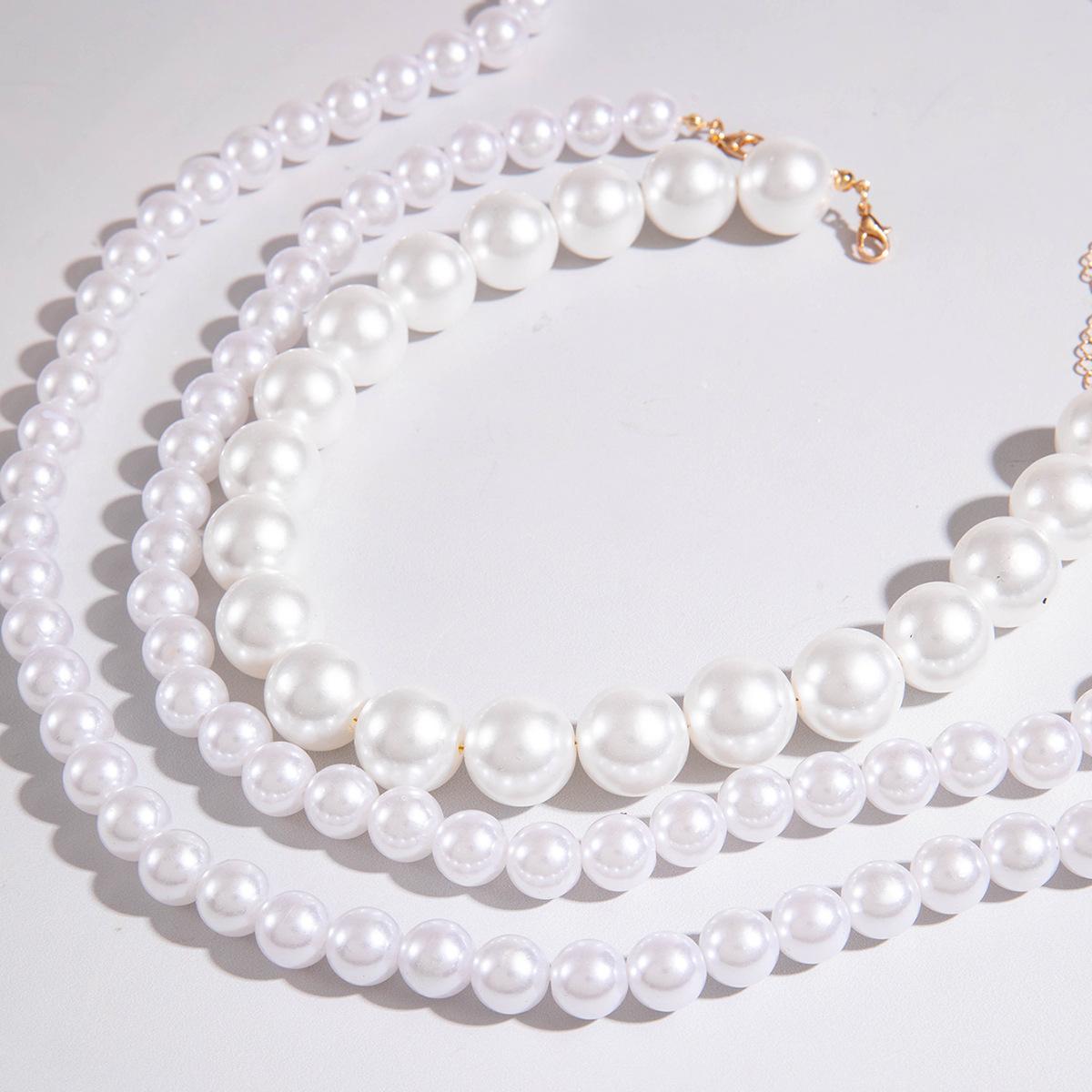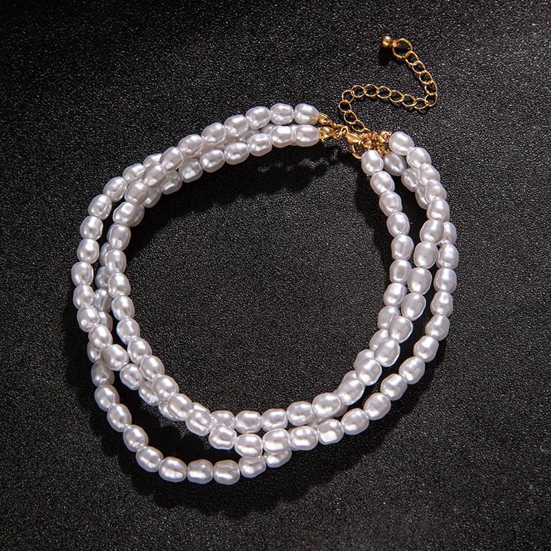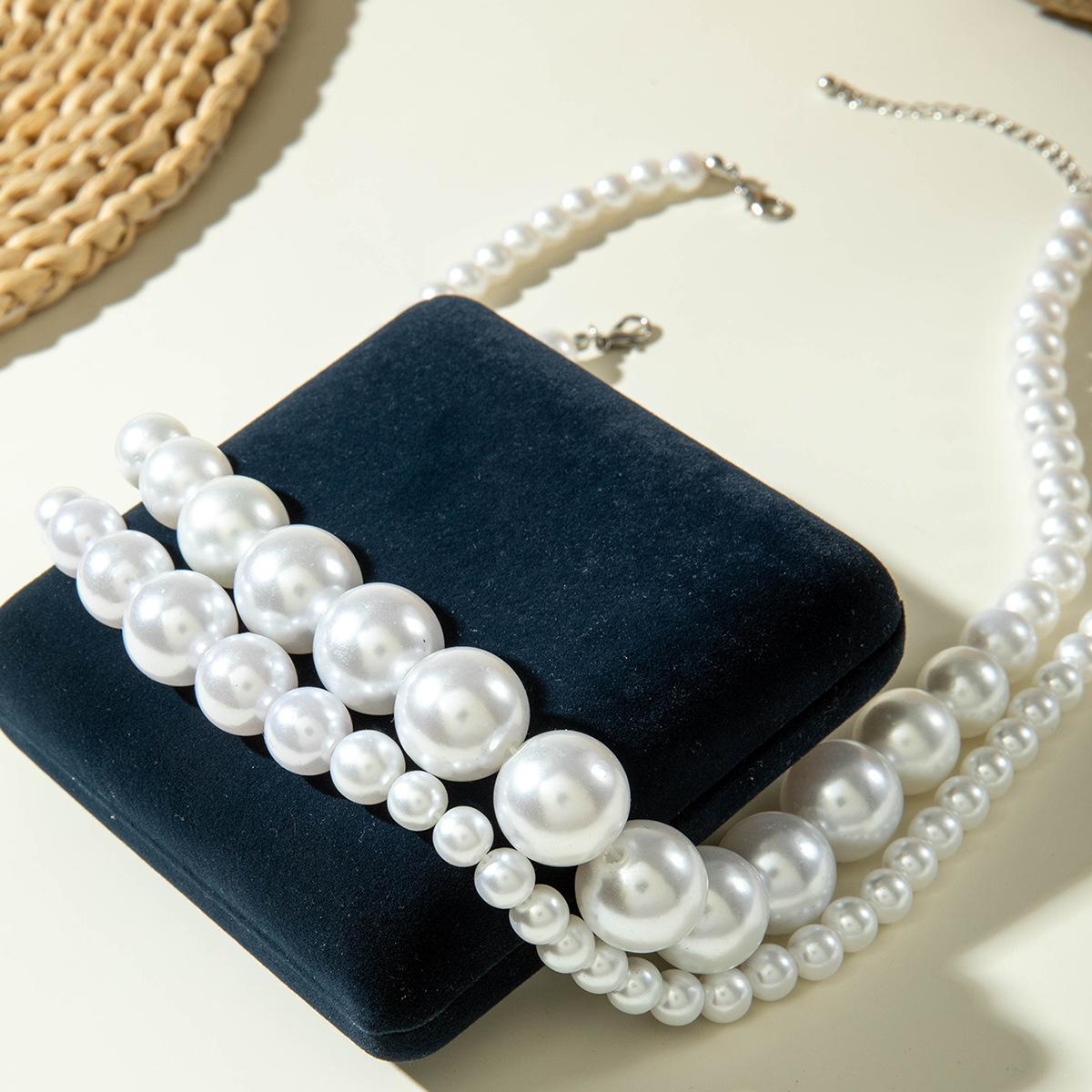 Collar Retro Geométrico con Cuentas de Moda Transfronteriza Europea y Americana Simple Elegante Perla de Imitación Diseño Multicapa Cadena Larga para Clavícula