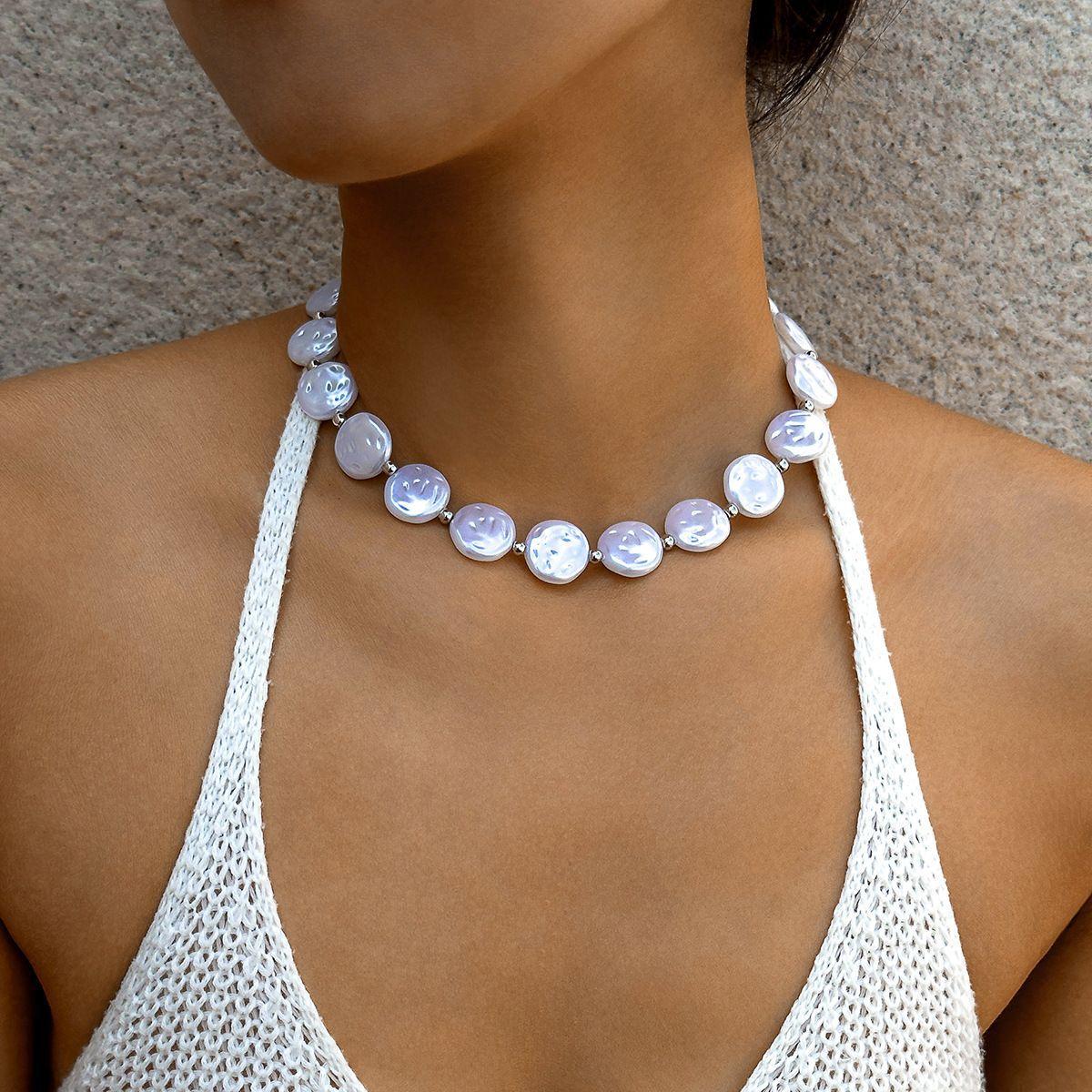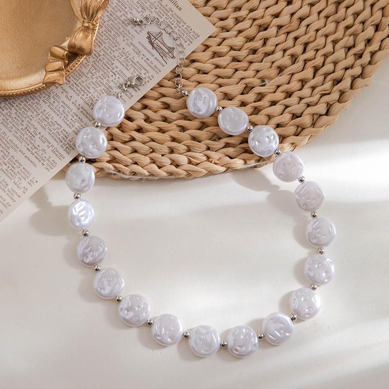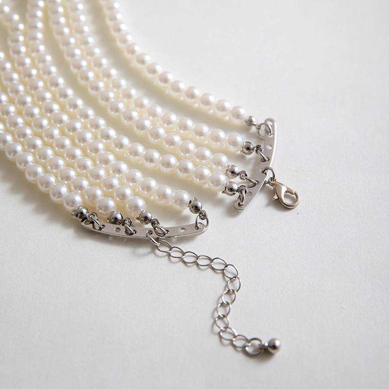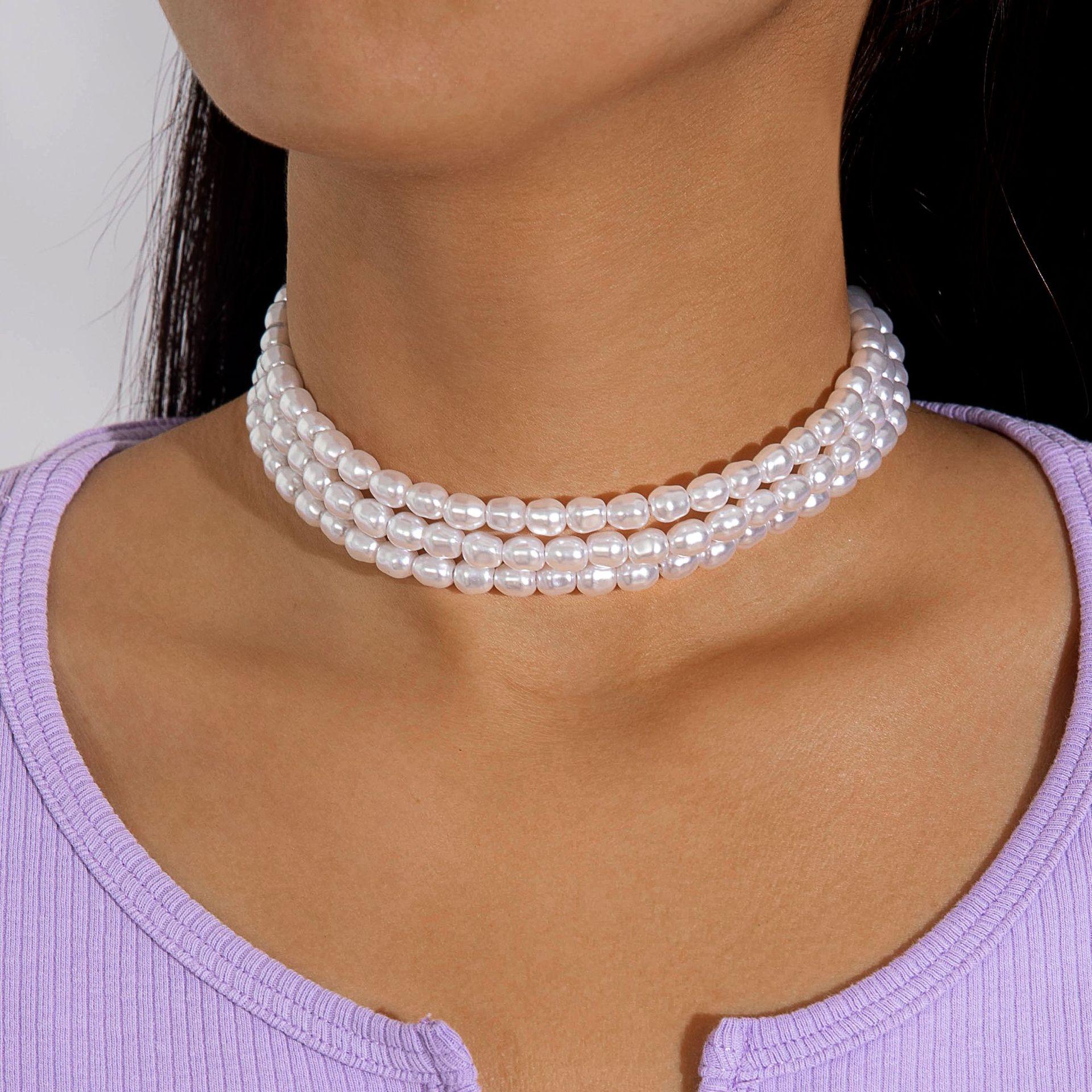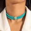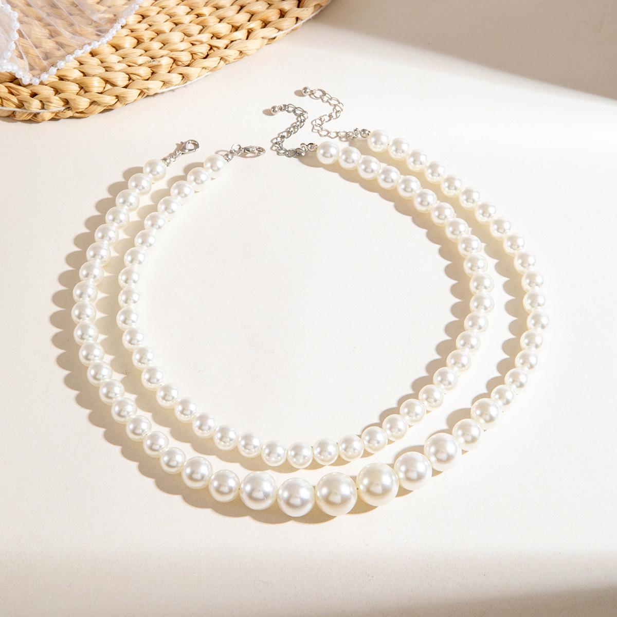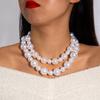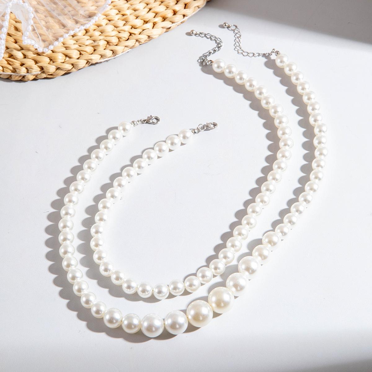 Collar Retro Geométrico con Cuentas de Moda Transfronteriza Europea y Americana Simple Elegante Perla de Imitación Diseño Multicapa Cadena Larga para Clavícula