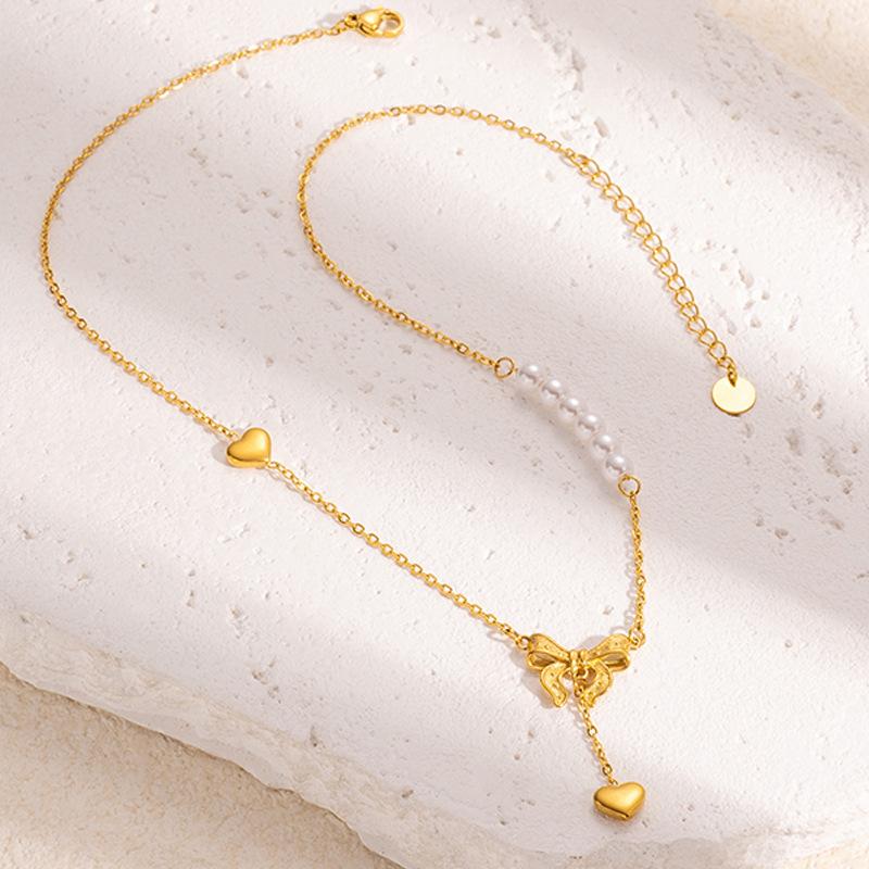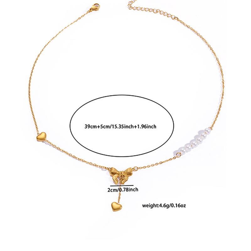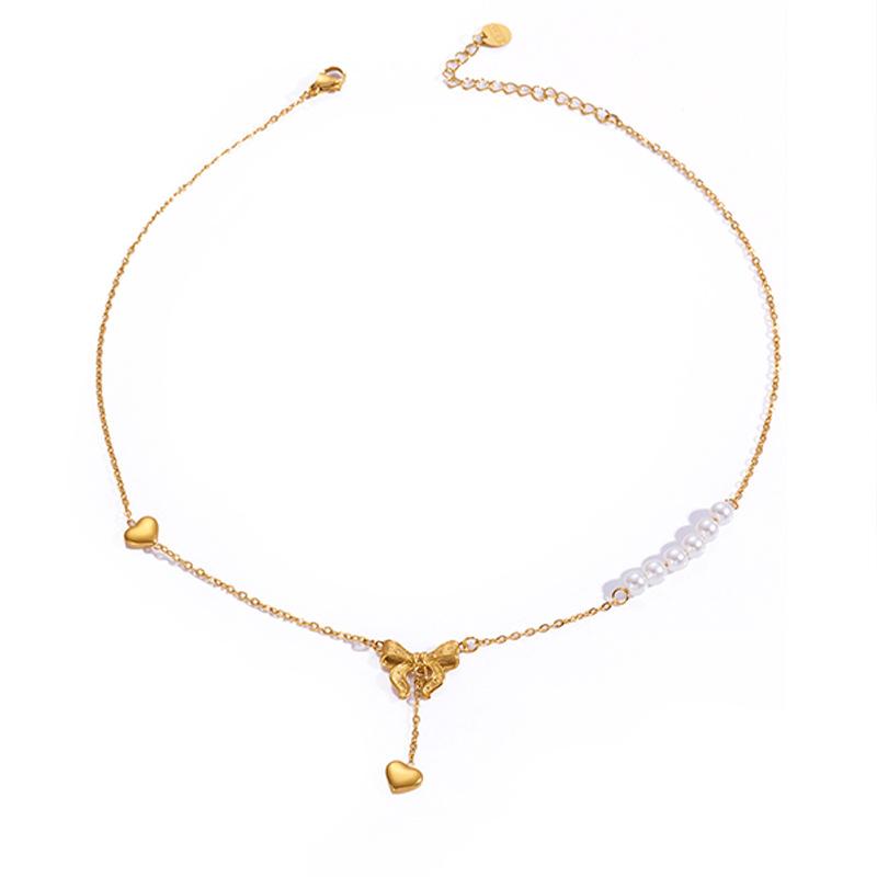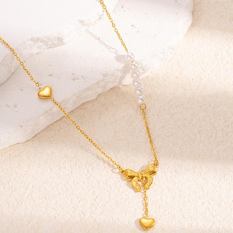 Collar con colgante de amor de lazo de titanio de alta calidad, sencillo, con cadena de clavícula y nicho, versátil y exquisito diseño de perlas.