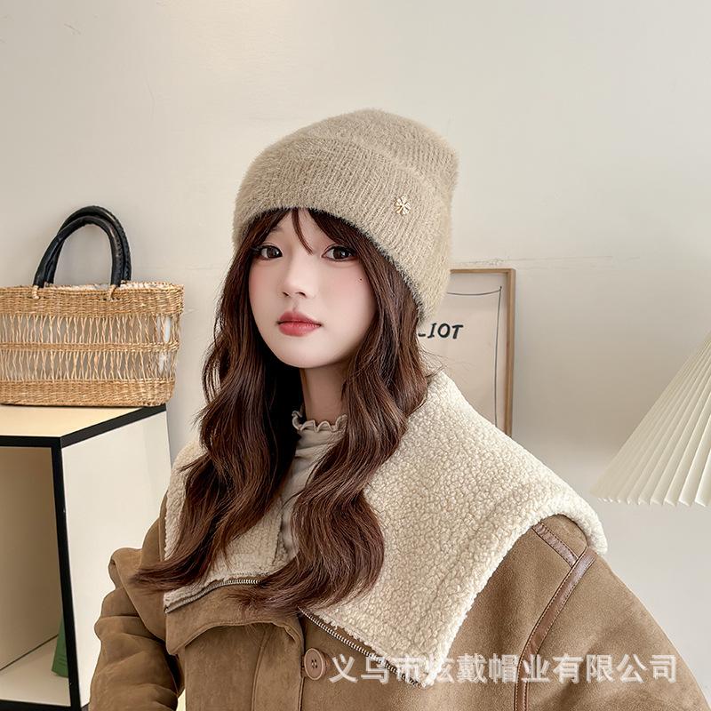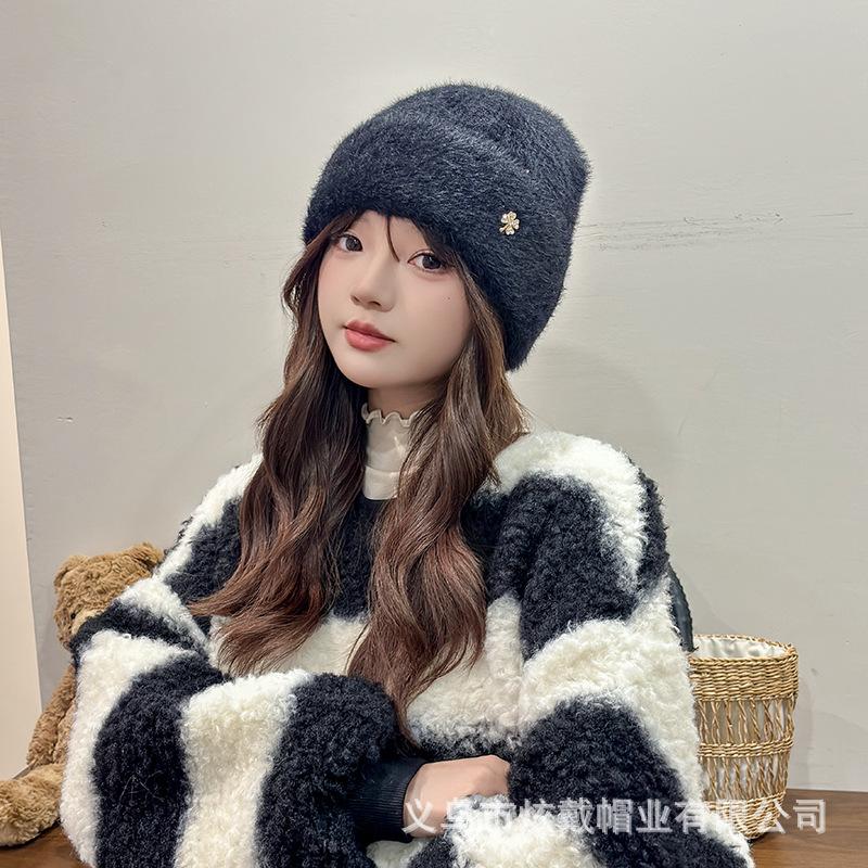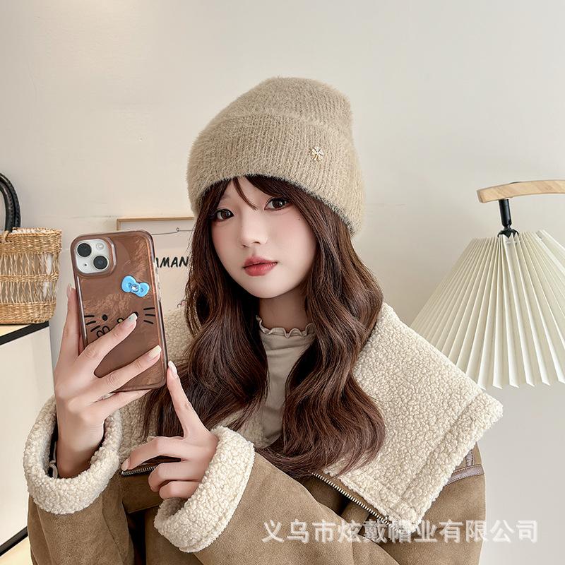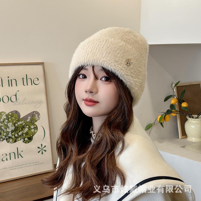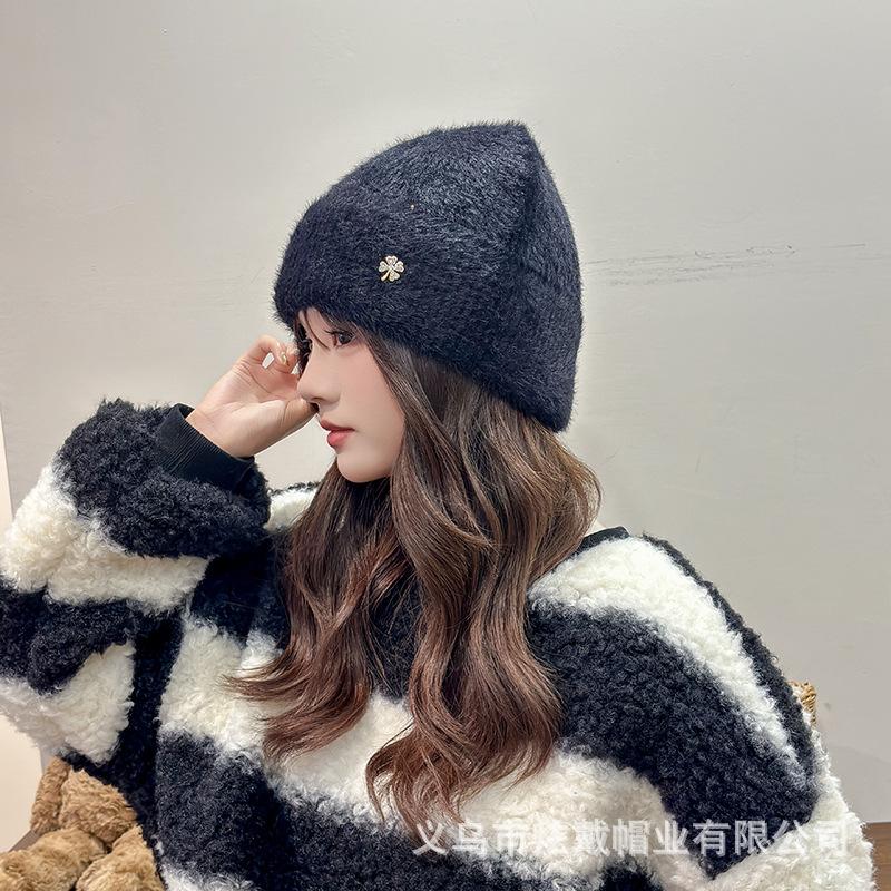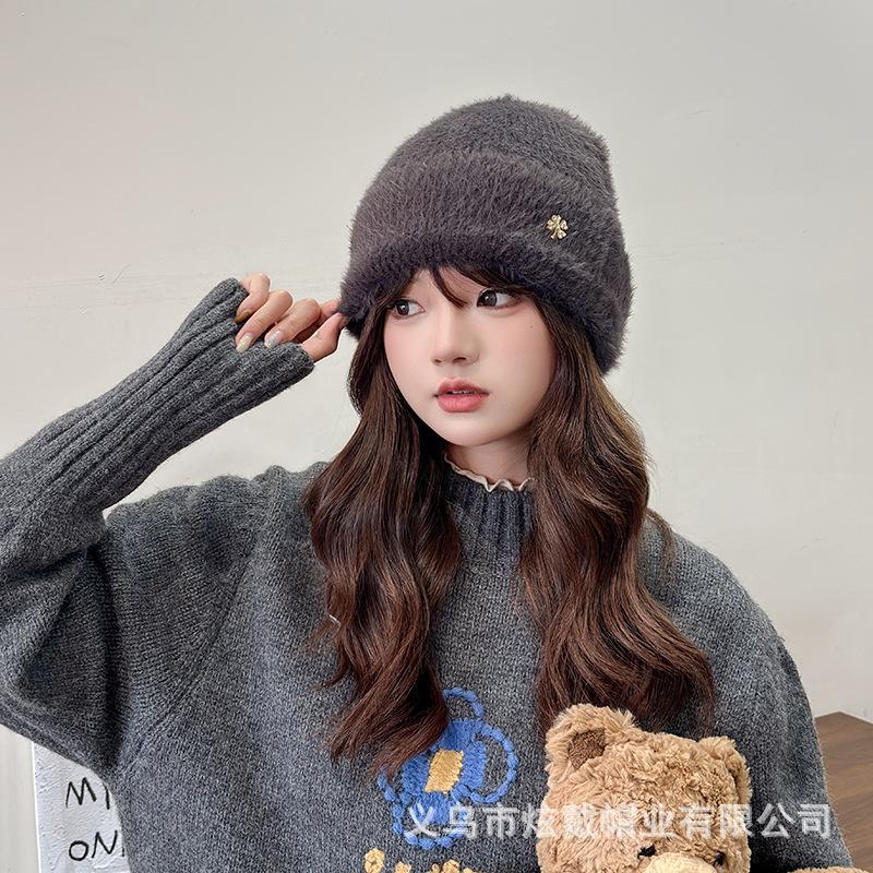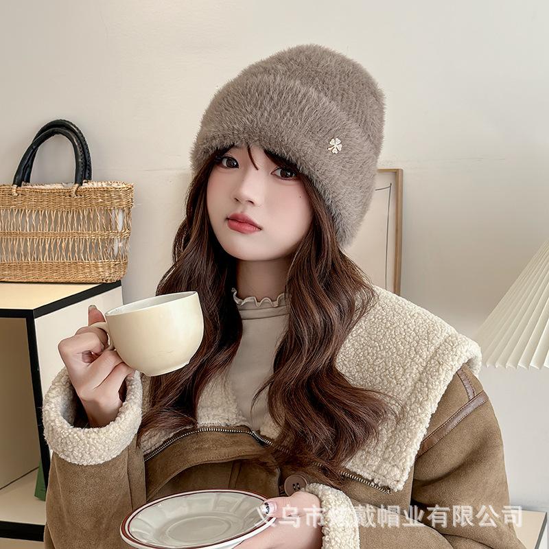 Gorro de otoño e invierno para mujer, de felpa, nuevo gorro de punto coreano, cálido, con protección para las orejas, grueso, de lana transfronteriza.