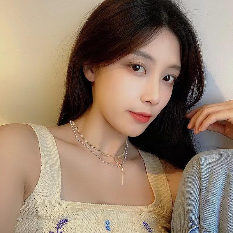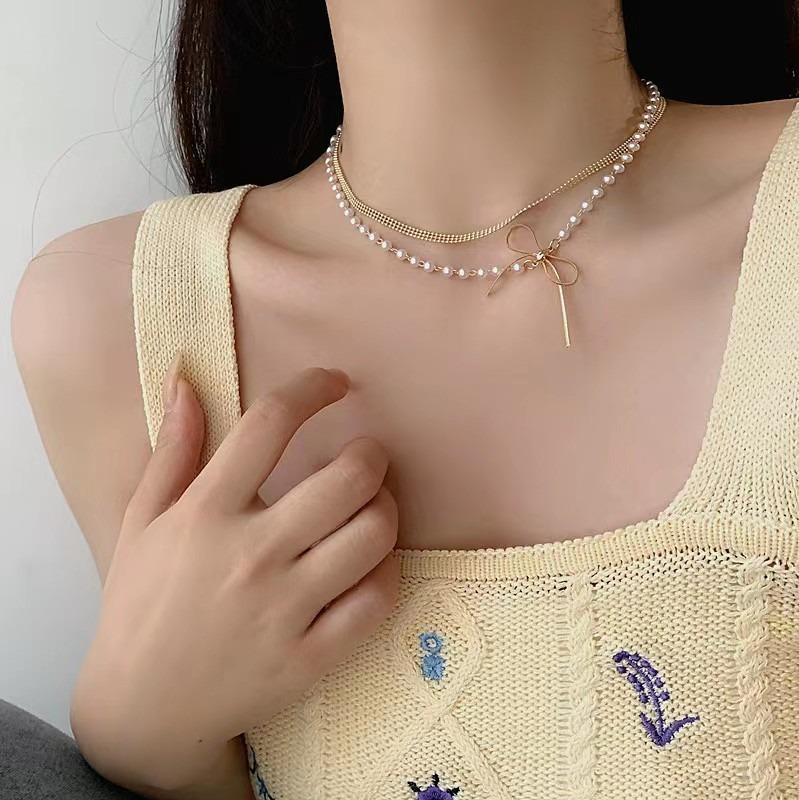 Collar de perlas de doble capa para mujer, nuevo estilo, sencillo, de lujo accesible, diseño exclusivo, cadena de clavícula, elegante collar.