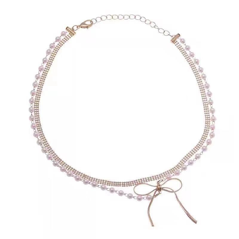 Bow pearl necklace