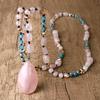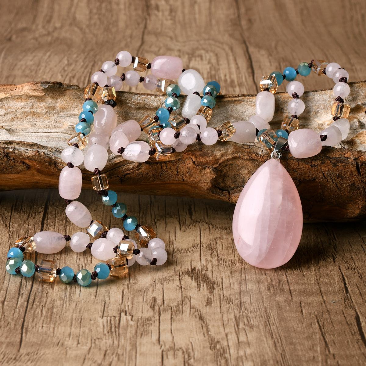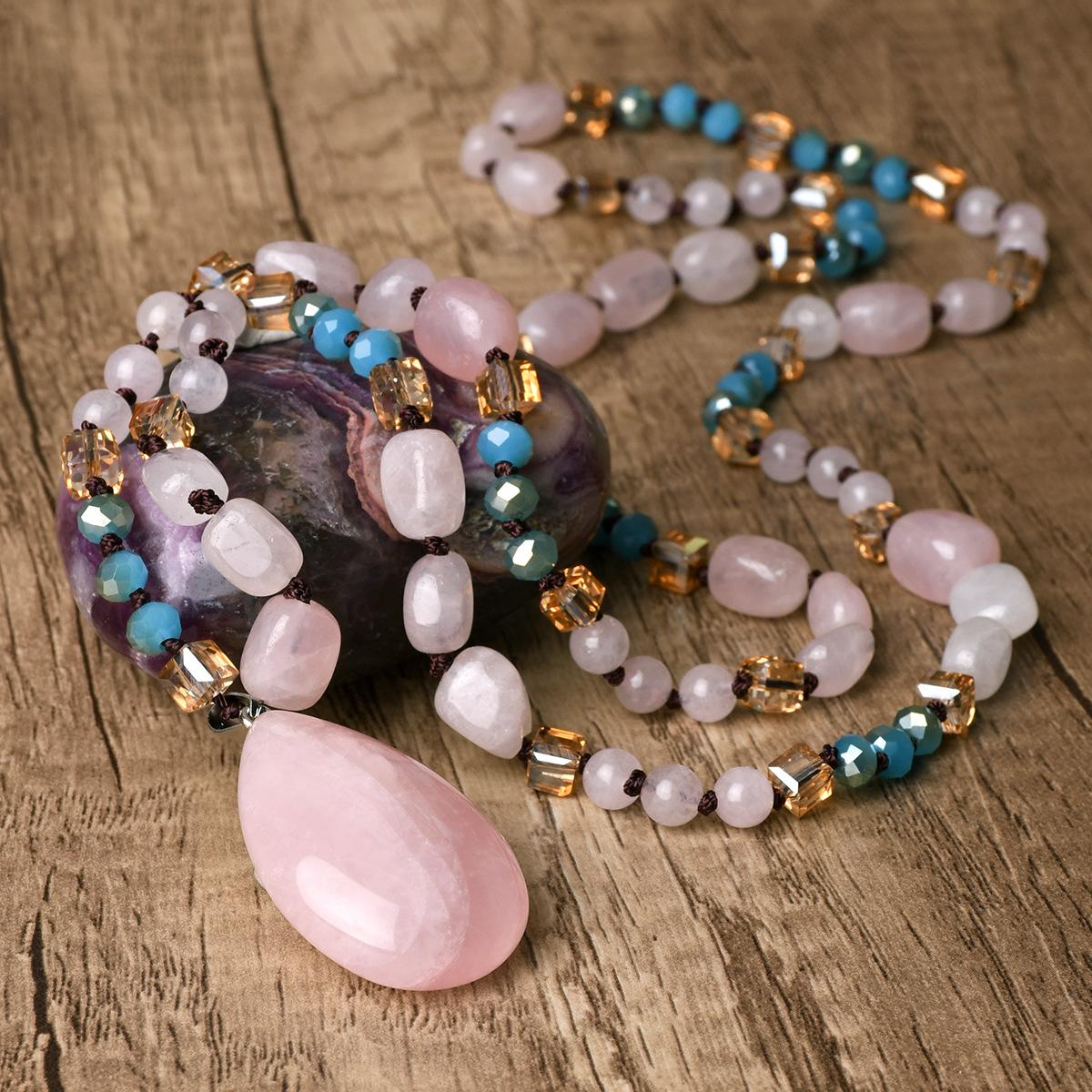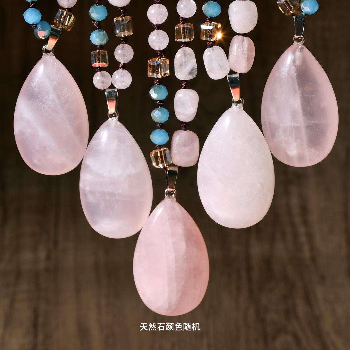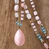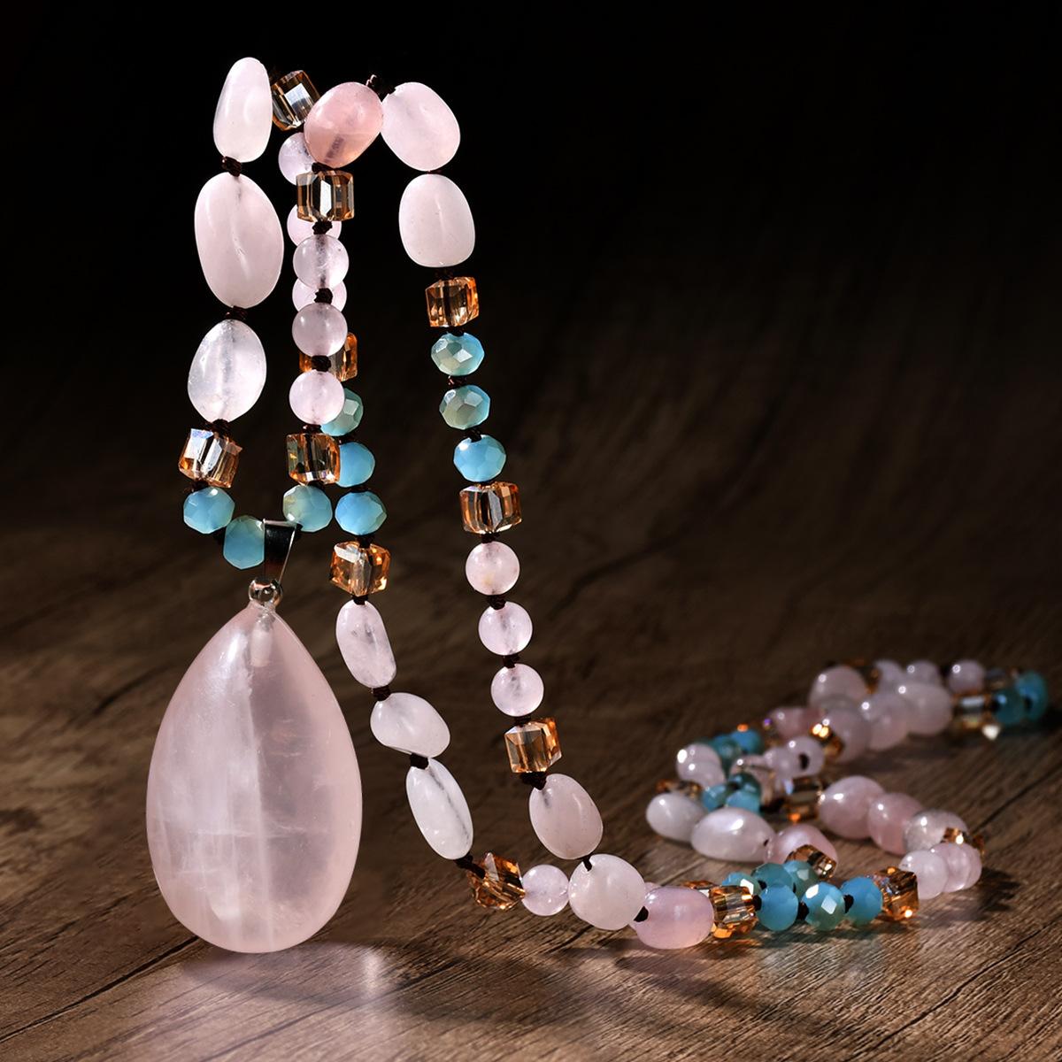 Nuevo Producto Transfronterizo Collar de Cristal Rosa Anudado a Mano para Mujer Lujo Ligero Retro Colgante en Forma de Gota Cadena Larga para Suéter Venta al por Mayor