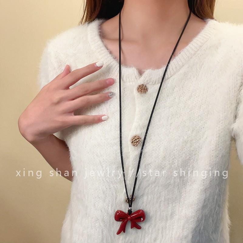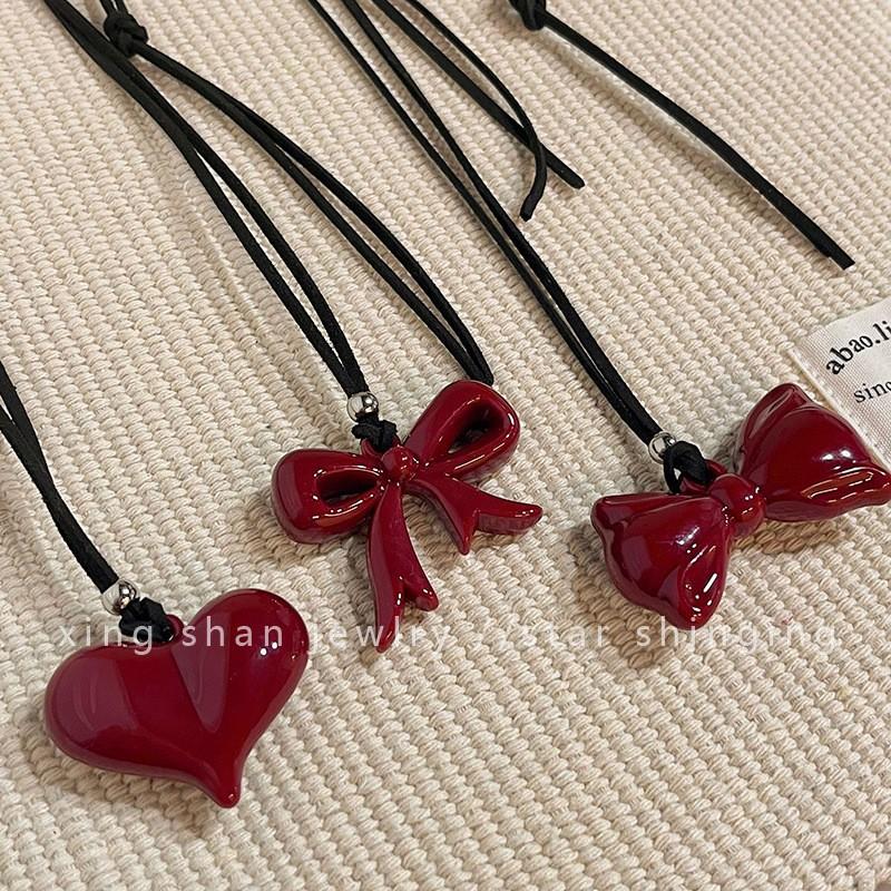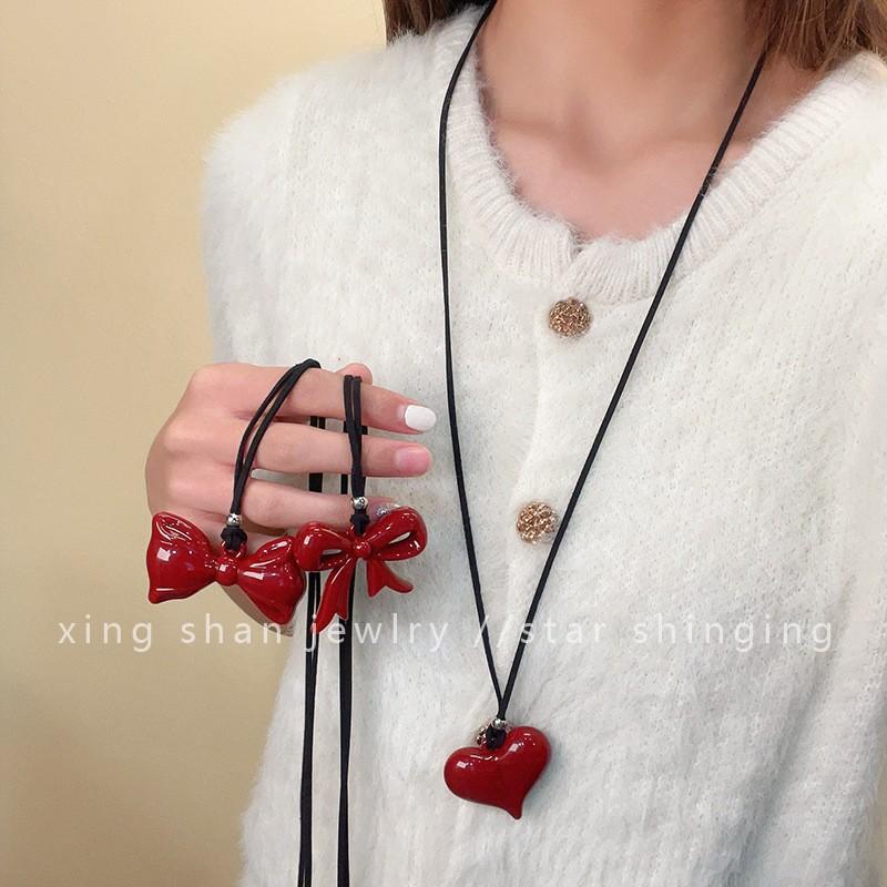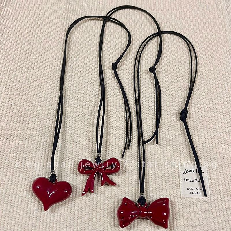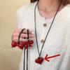 Collar con colgante de lazo rojo para mujer, estilo moderno, ligero, de lujo, combinable con todo, accesorios de nicho.