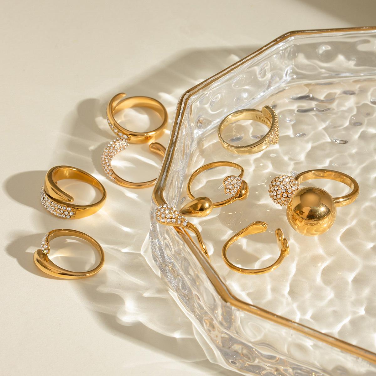 Jiding Europeo y Americano Oro de 18K Acero Inoxidable Diamante Anillo Abierto Anillo de Alta Gama Acero de Titanio Joyería de Mano Anillo Transfronterizo