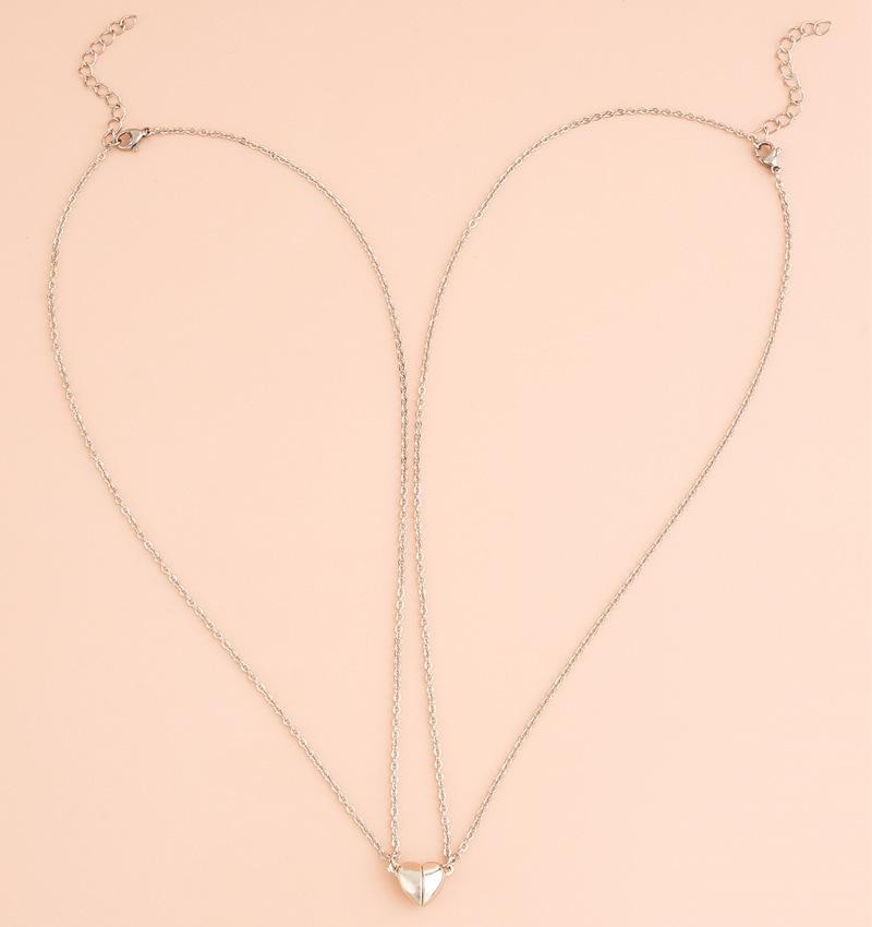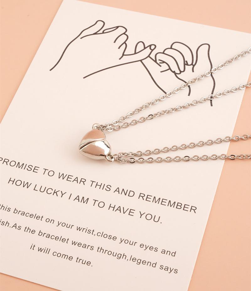 Conjunto de 2 piezas de collar y joyería de clavícula con hebilla magnética en forma de corazón y cadena de acero inoxidable con personalidad creativa transfronteriza