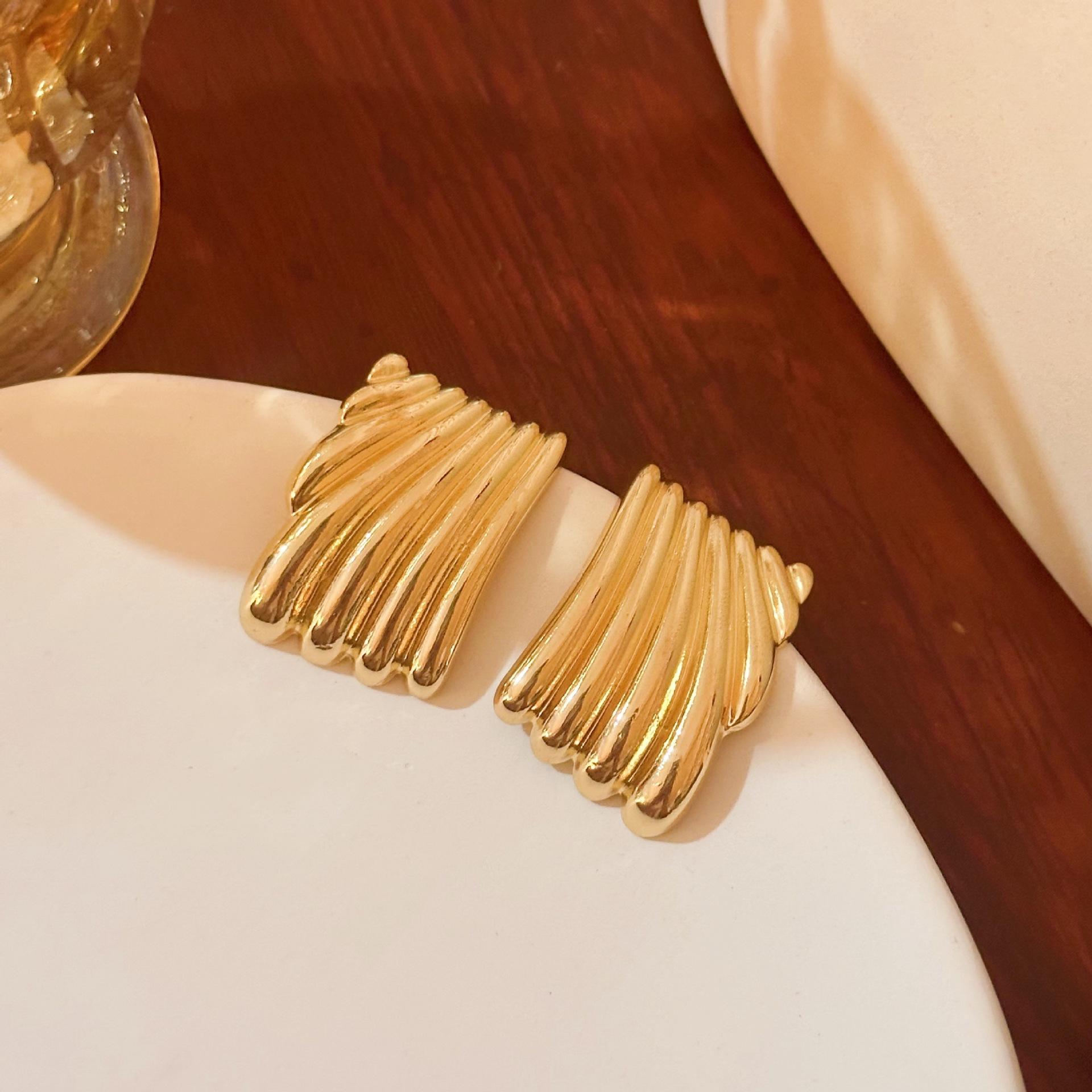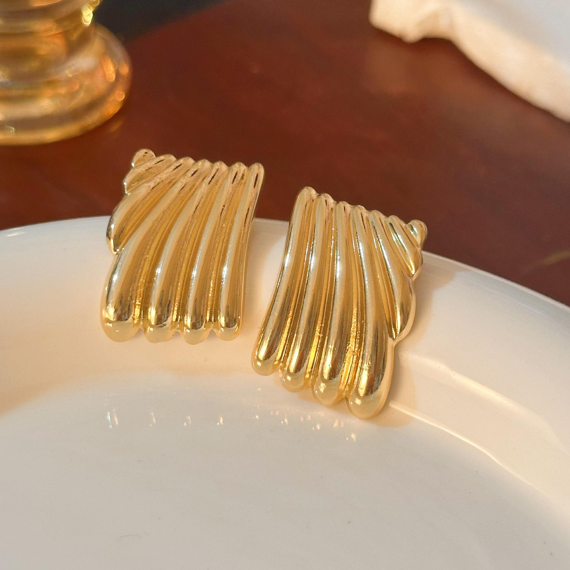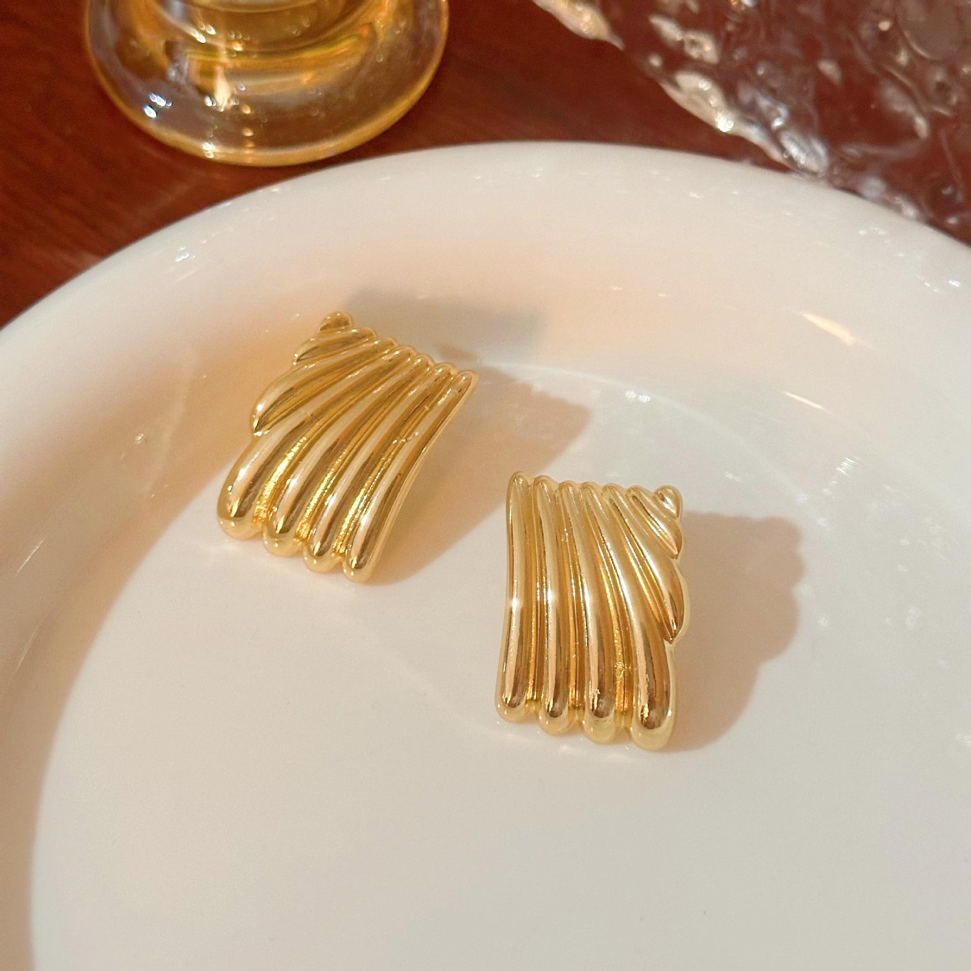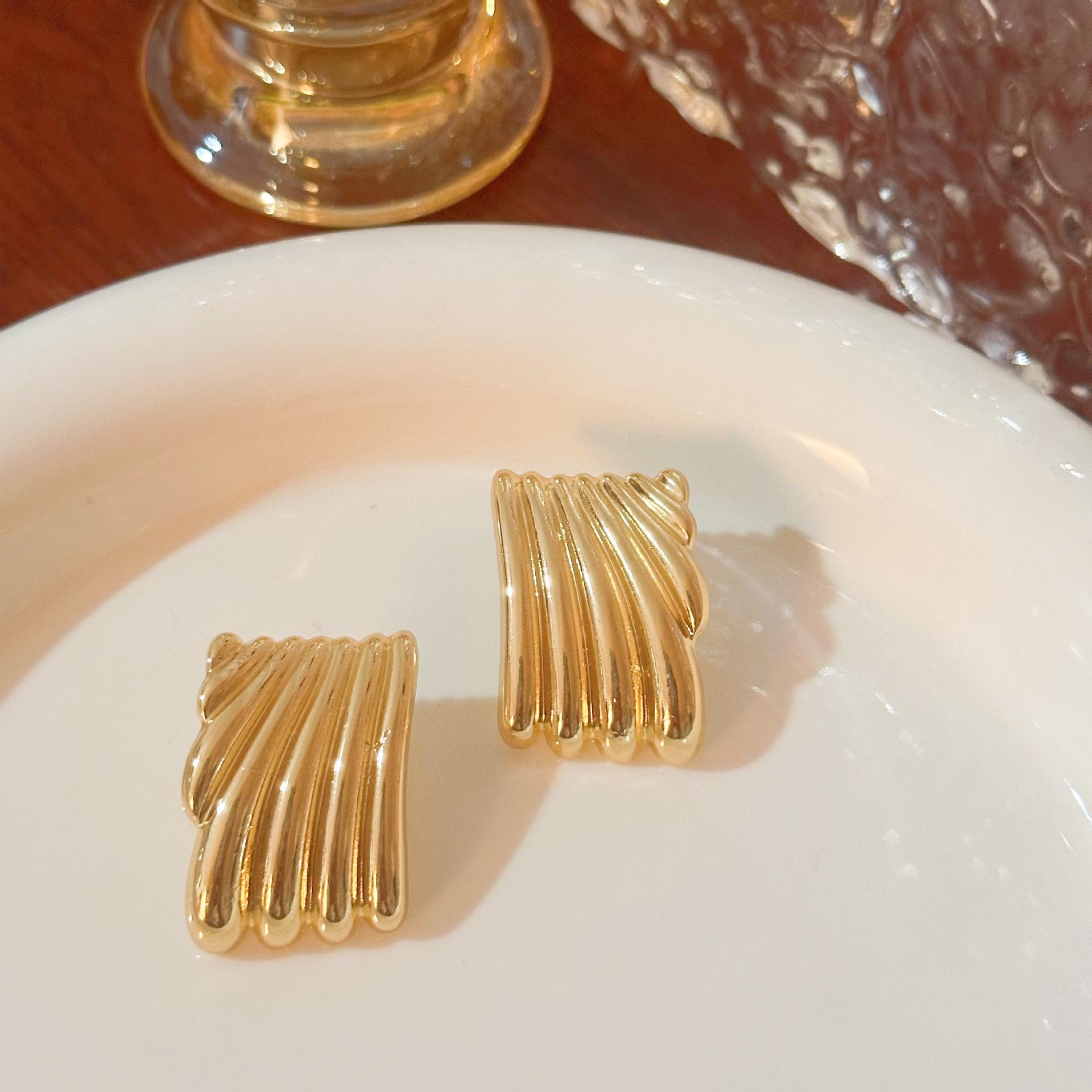 Pendientes cuadrados irregulares europeos y americanos para mujer, con textura plisada geométrica, joyería para las orejas, pendientes exagerados de moda dorados de alto nivel