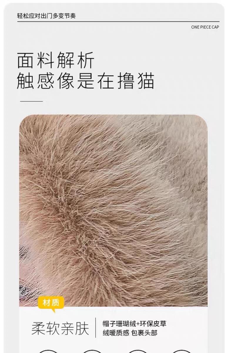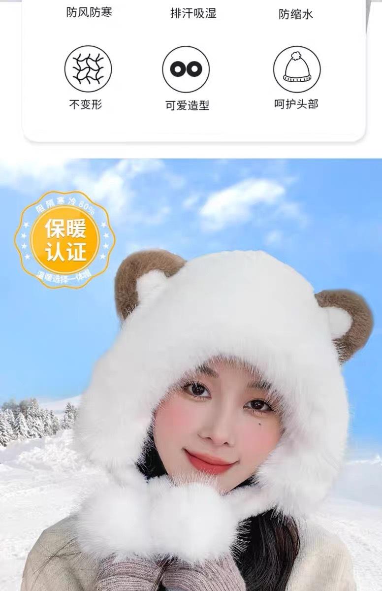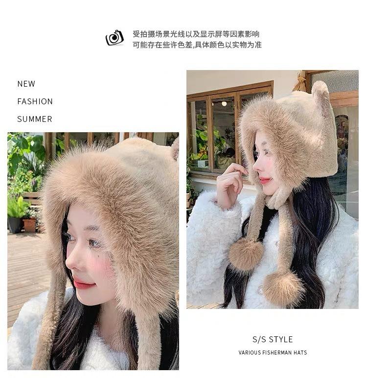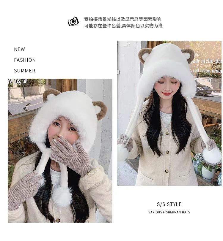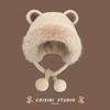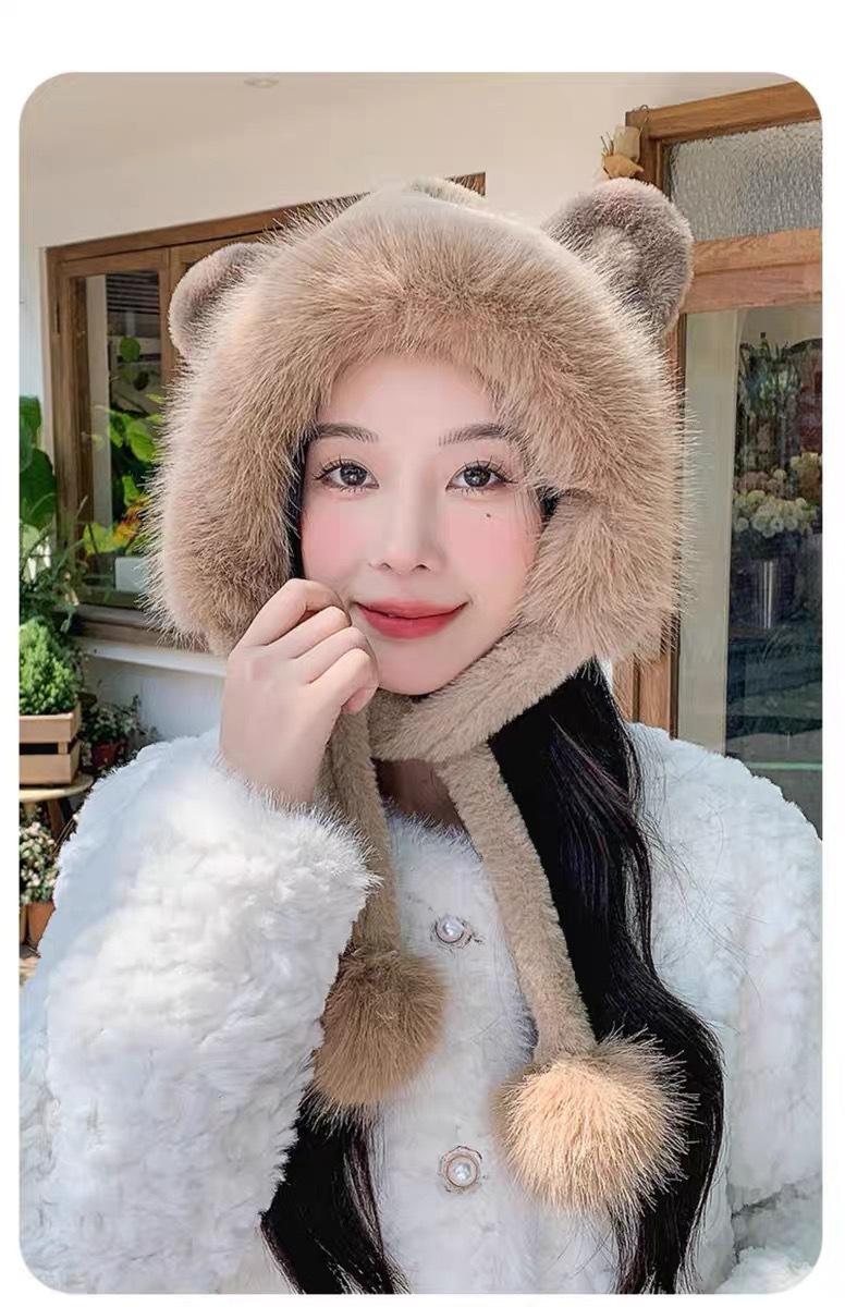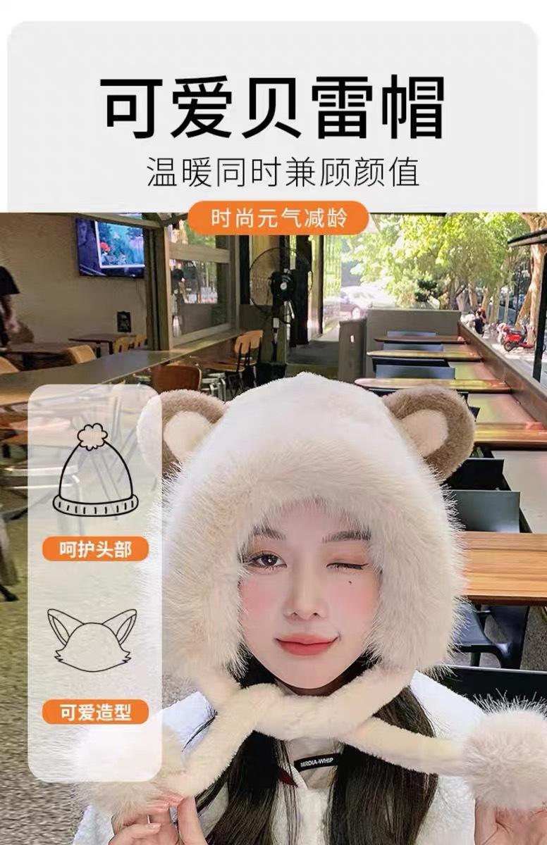 Gorro de orejas de oso para mujer, bonito y esponjoso, estilo Lei Feng, para otoño e invierno, cálido y resistente al frío.