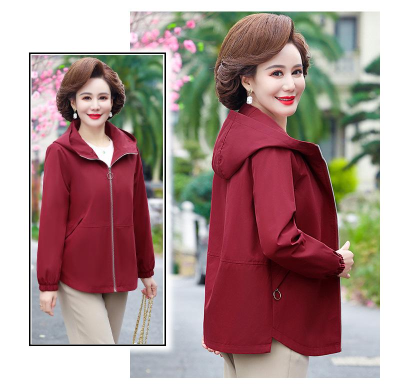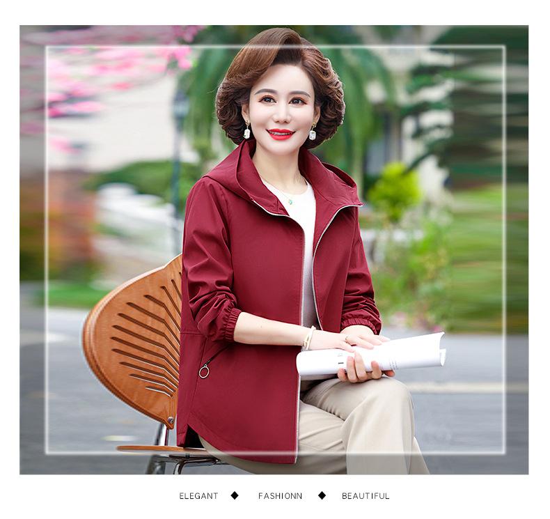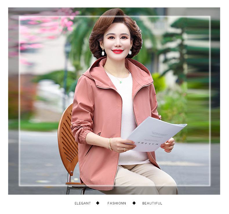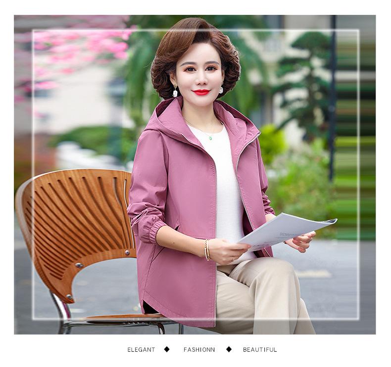 Abrigo fino para madre de primavera y otoño de 2024, chaqueta con capucha informal para mujeres de mediana edad de 40 y 50 años.