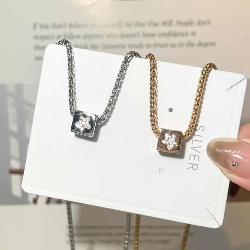 Collar de plata esterlina S925 para mujer, personalizado, con colgante cuadrado a juego, cadena de clavícula, collar de alta gama a la moda, regalo para novia.
