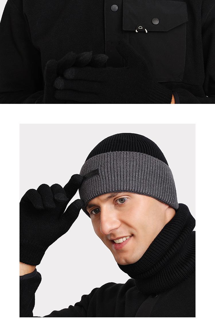Black warm three-piece set (hat, neck gaiter and gloves)