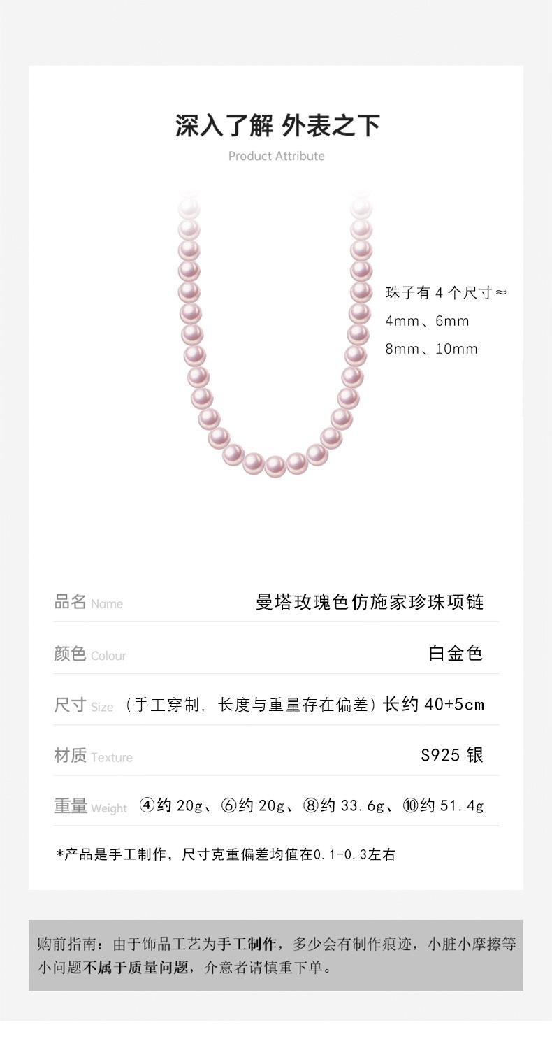 Collar de perlas de imitación Shijia de plata esterlina S925 con diseño de rosa Manta, estilo francés, ligero, de lujo, elegante y combinable con todo.