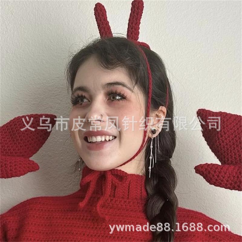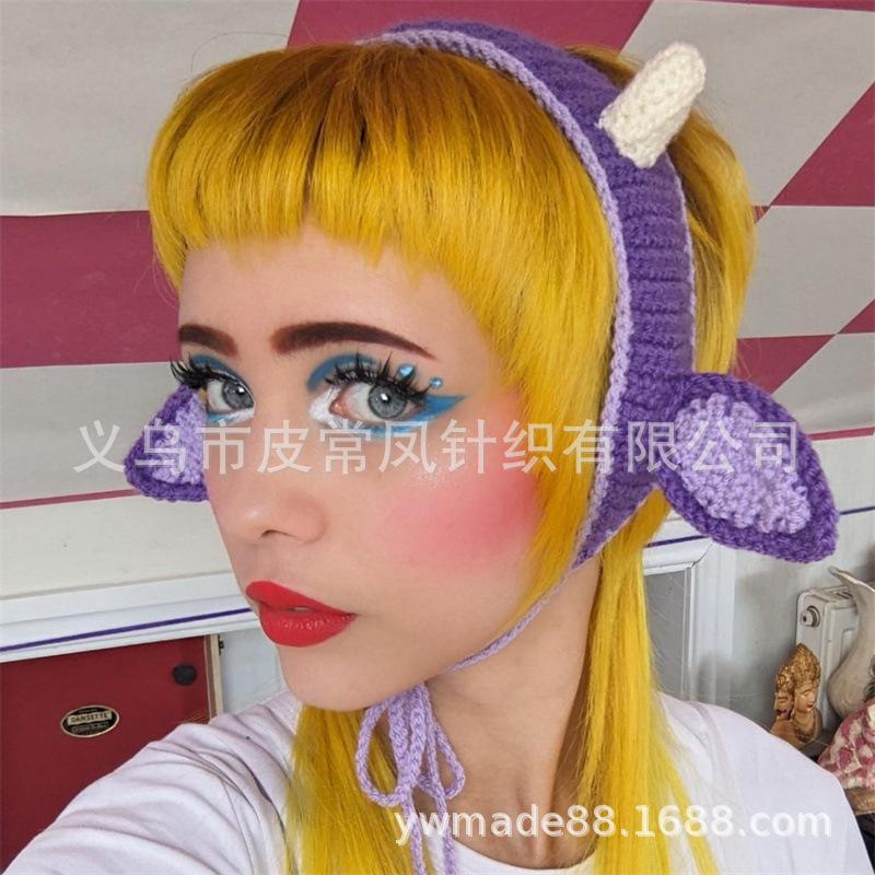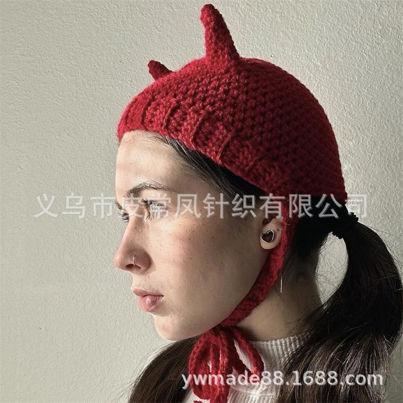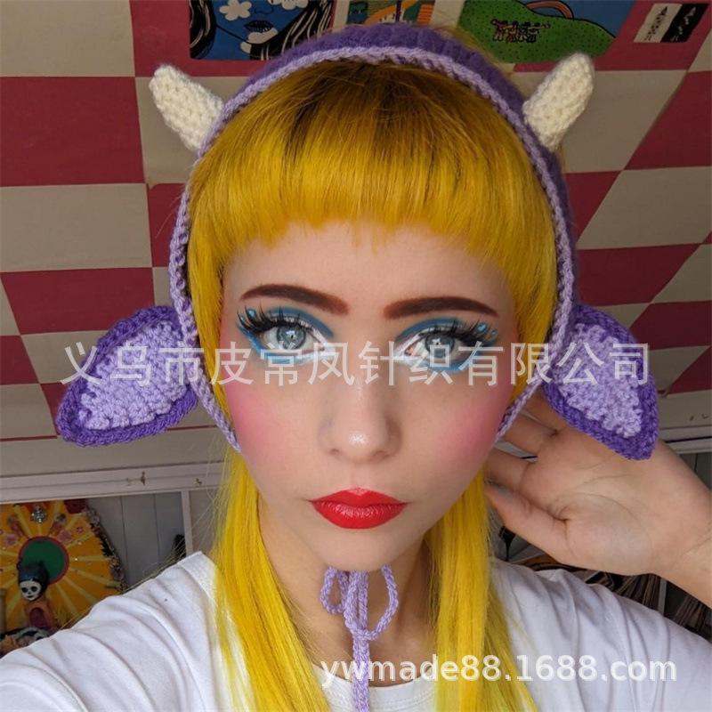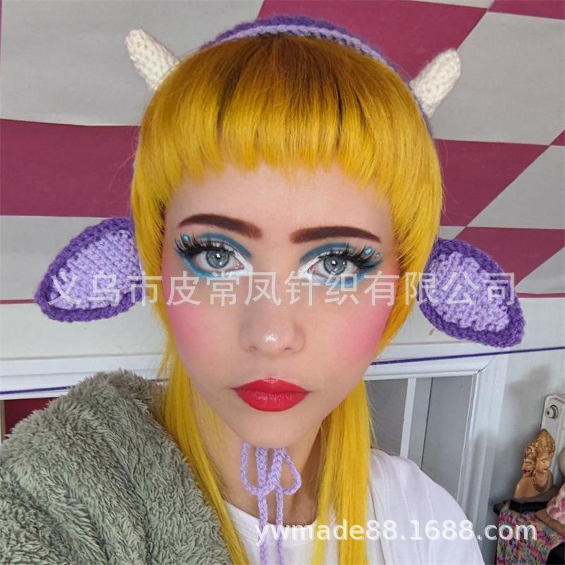 Gorra de moda personalizada con banda para el pelo de cuerno divertido para adultos, hecha a mano, de ganchillo, de comercio exterior de Amazon, transfronteriza