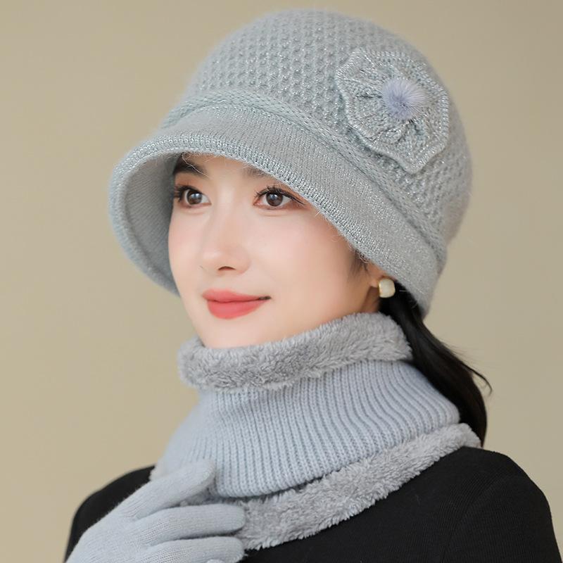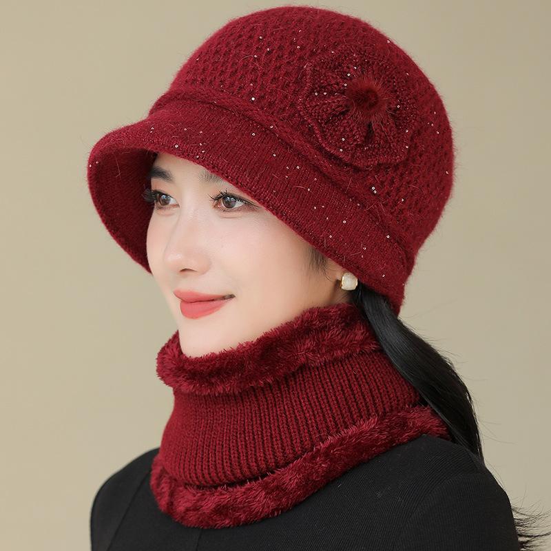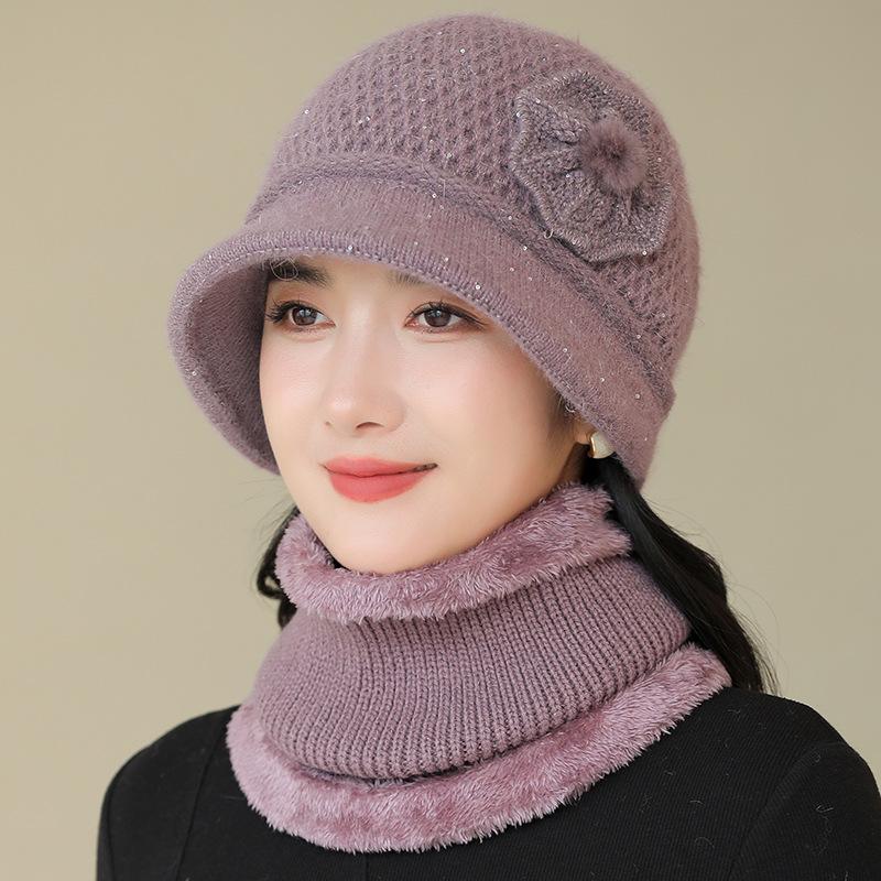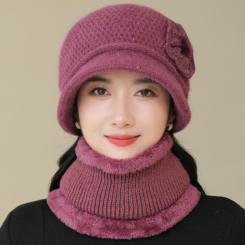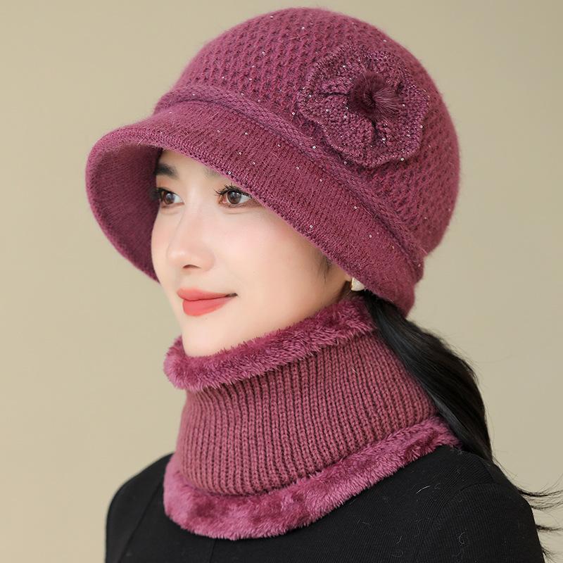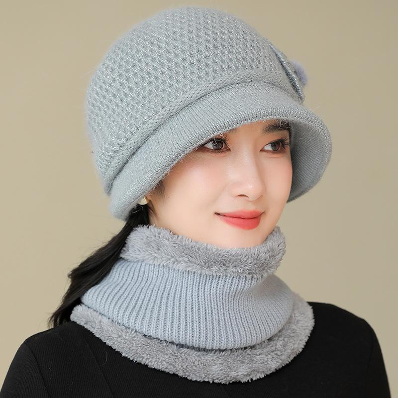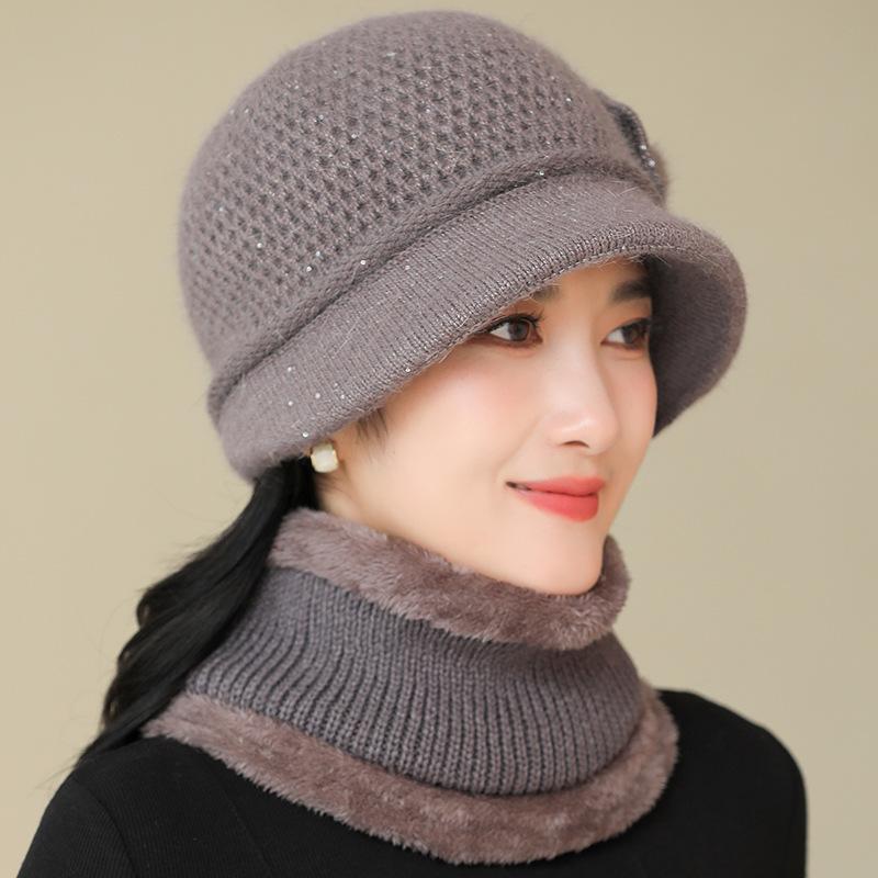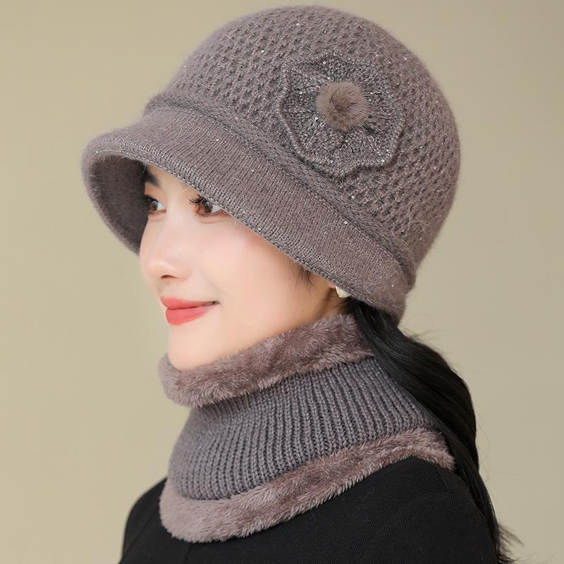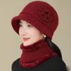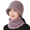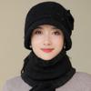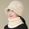 Gorro de punto elegante de invierno para mujer, cálido y elegante gorro de abuela para exteriores, gorro de lana con lengua de pato y forro polar grueso, traje de bufanda