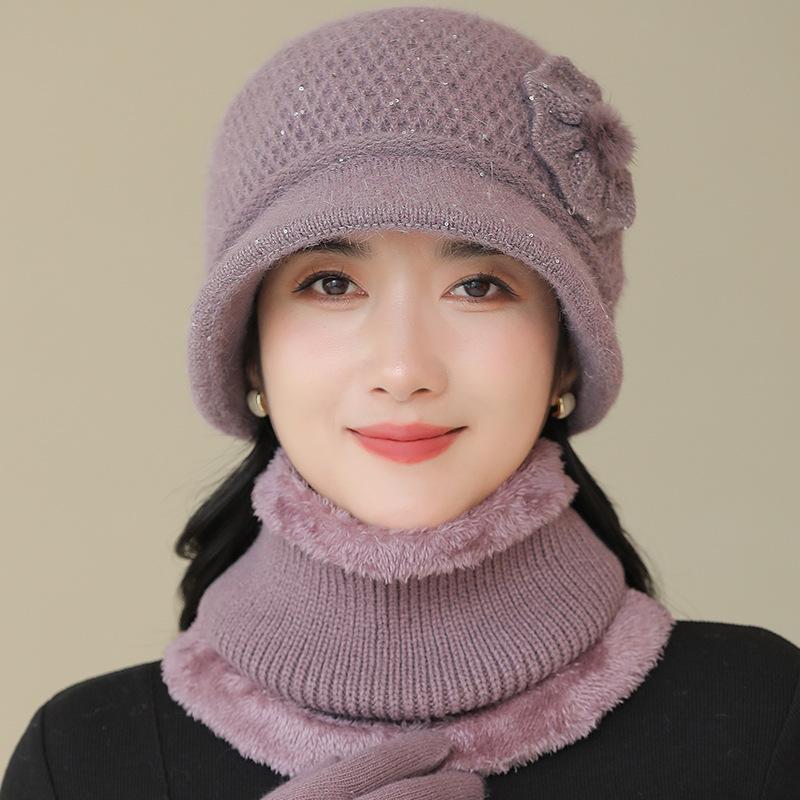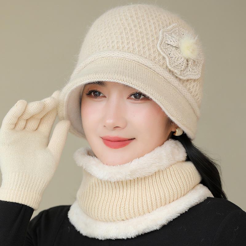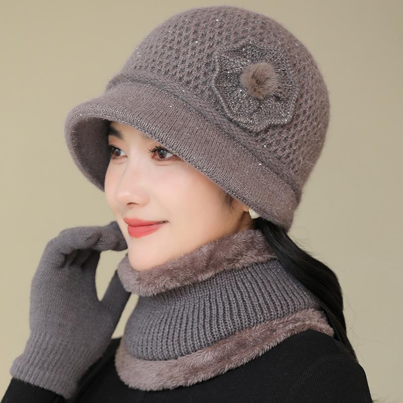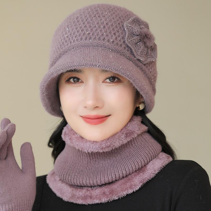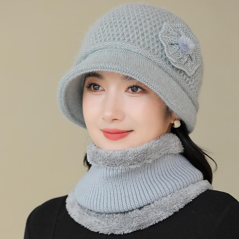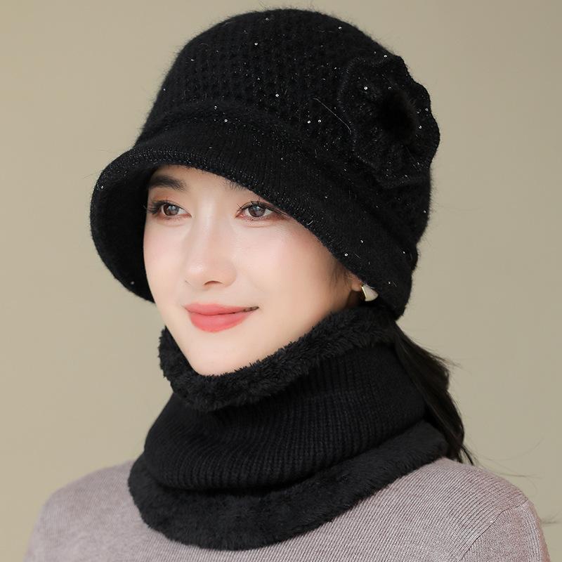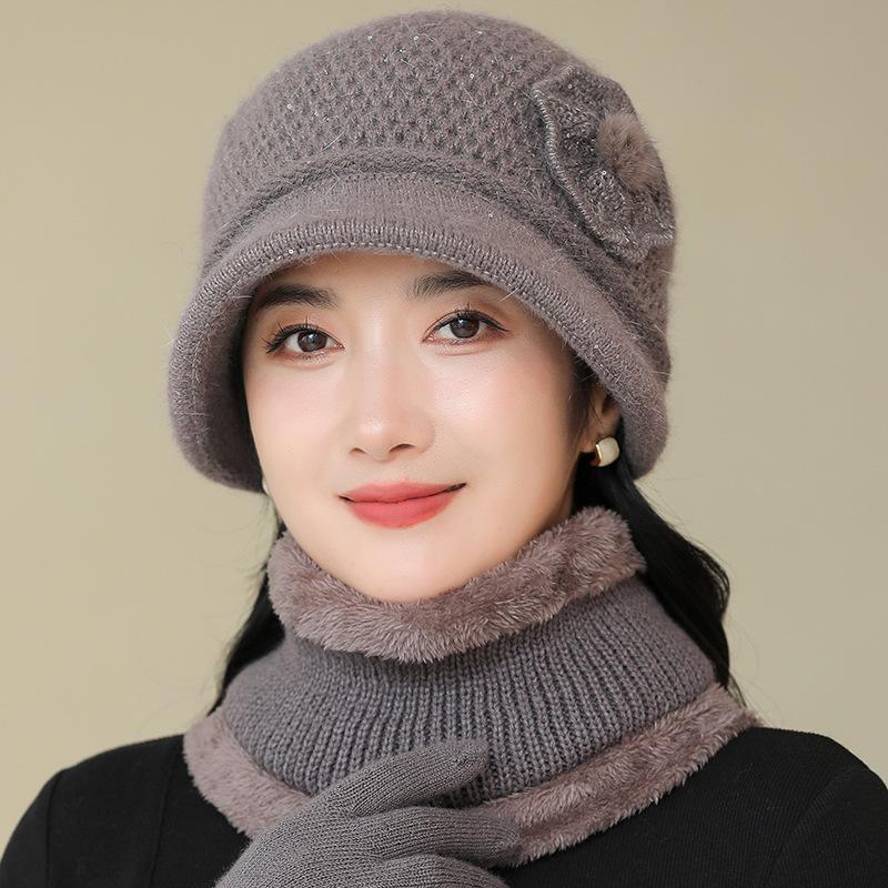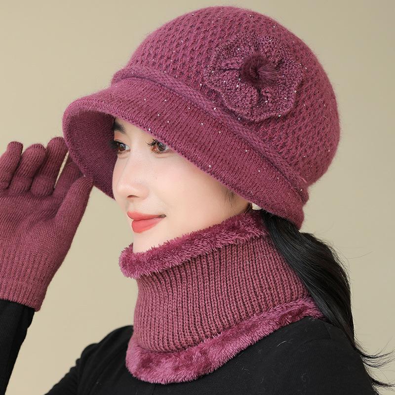 Gorro de punto elegante de invierno para mujer, cálido y elegante gorro de abuela para exteriores, gorro de lana con lengua de pato y forro polar grueso, traje de bufanda