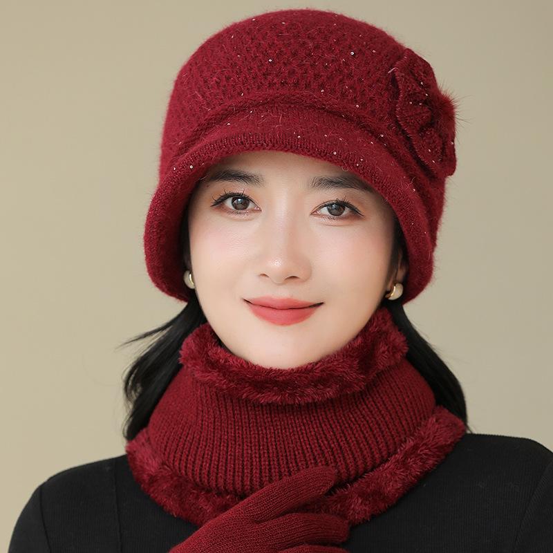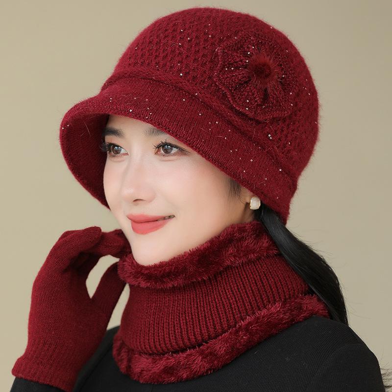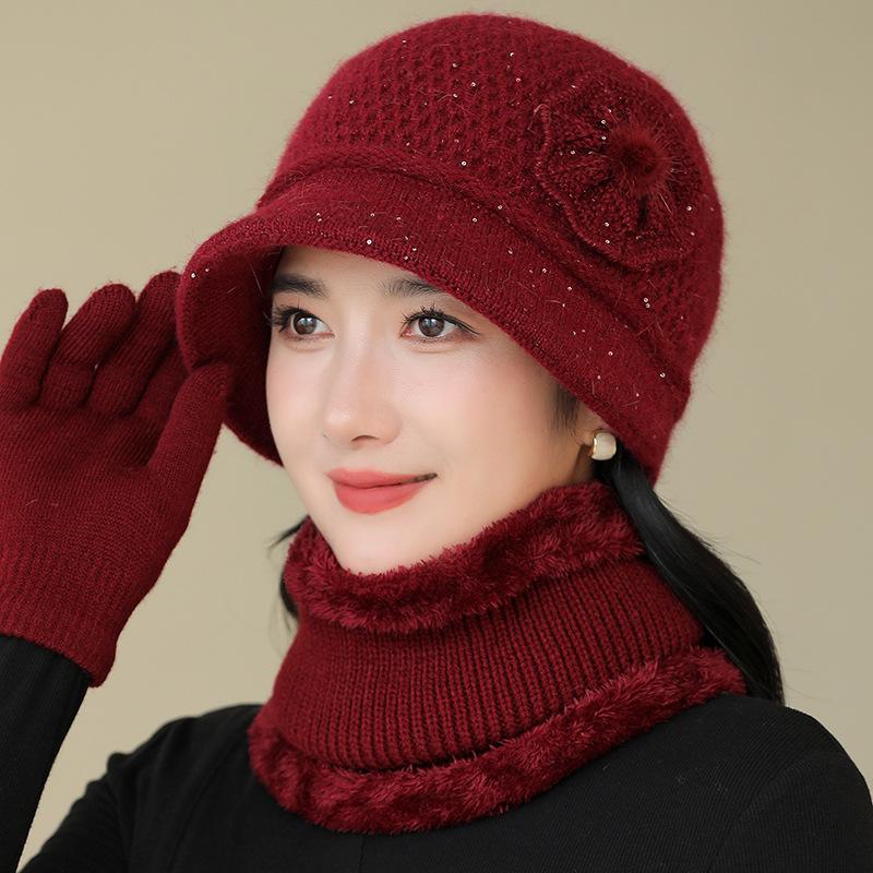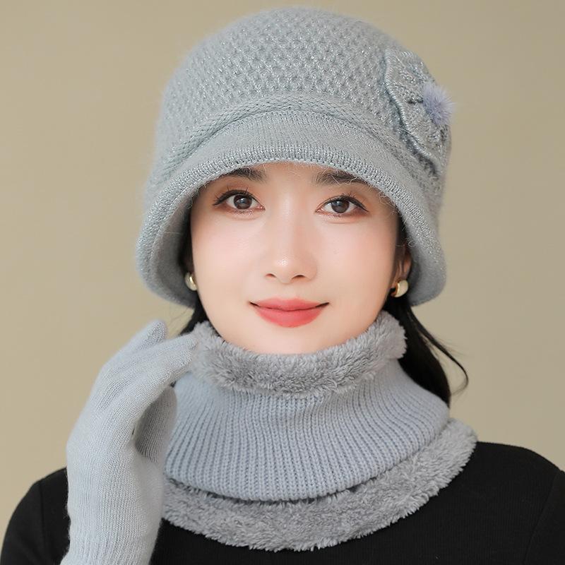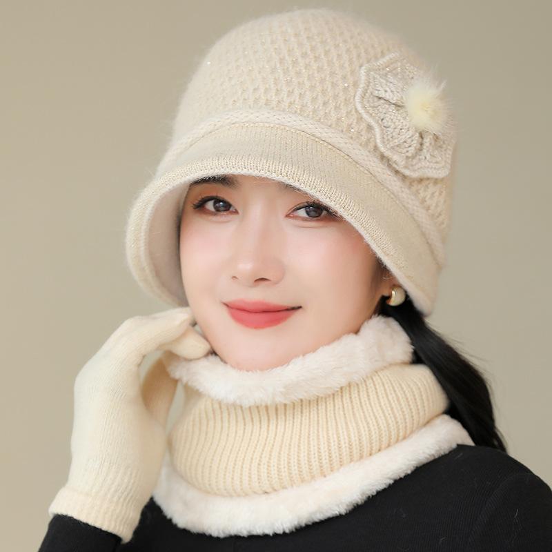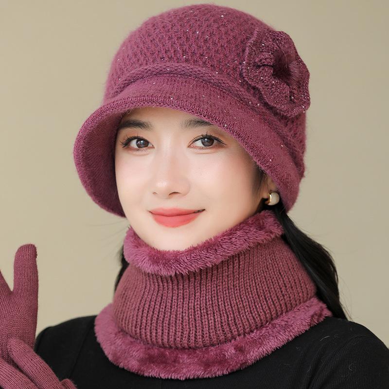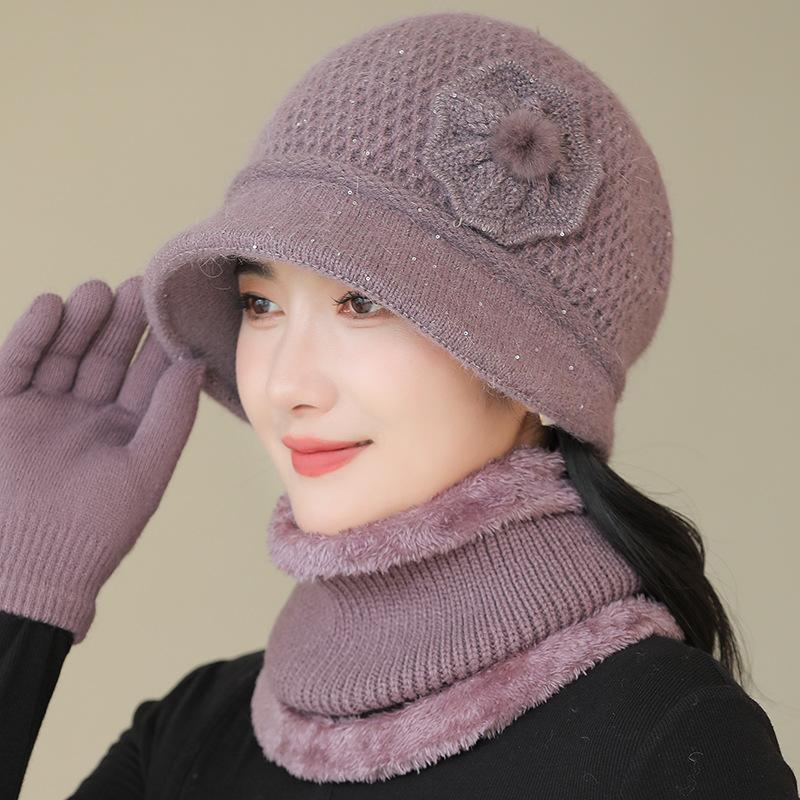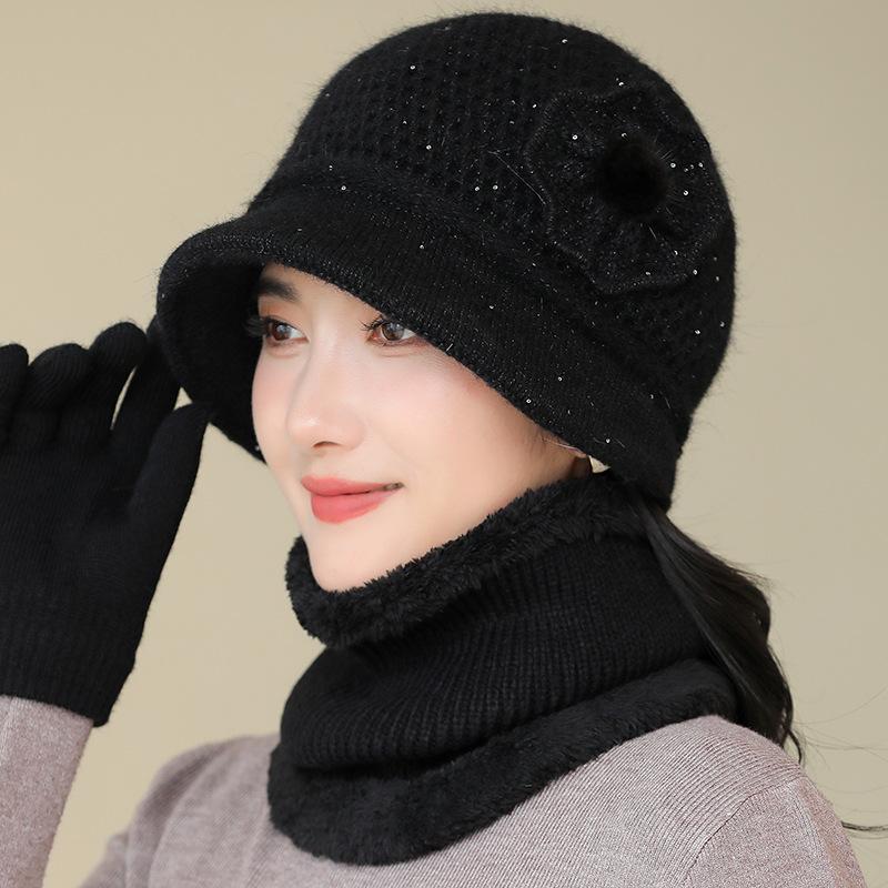 Gorro de punto elegante de invierno para mujer, cálido y elegante gorro de abuela para exteriores, gorro de lana con lengua de pato y forro polar grueso, traje de bufanda
