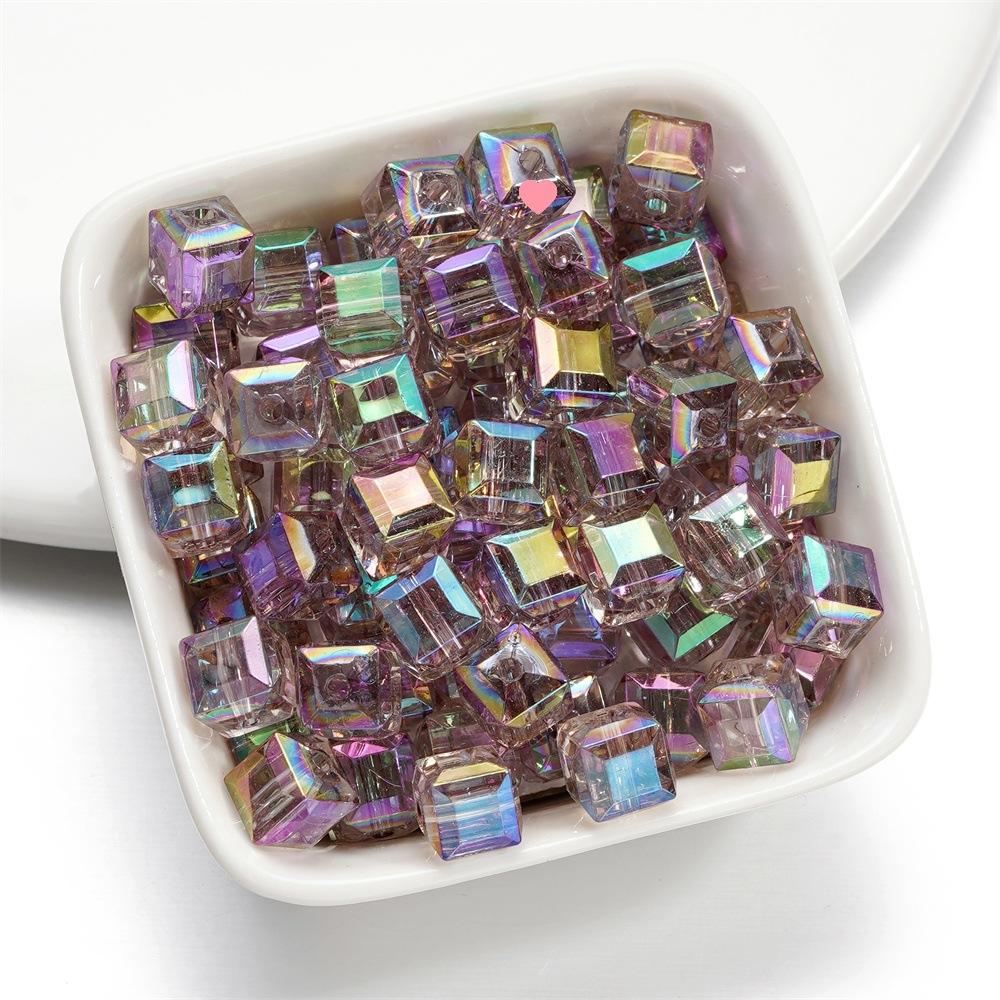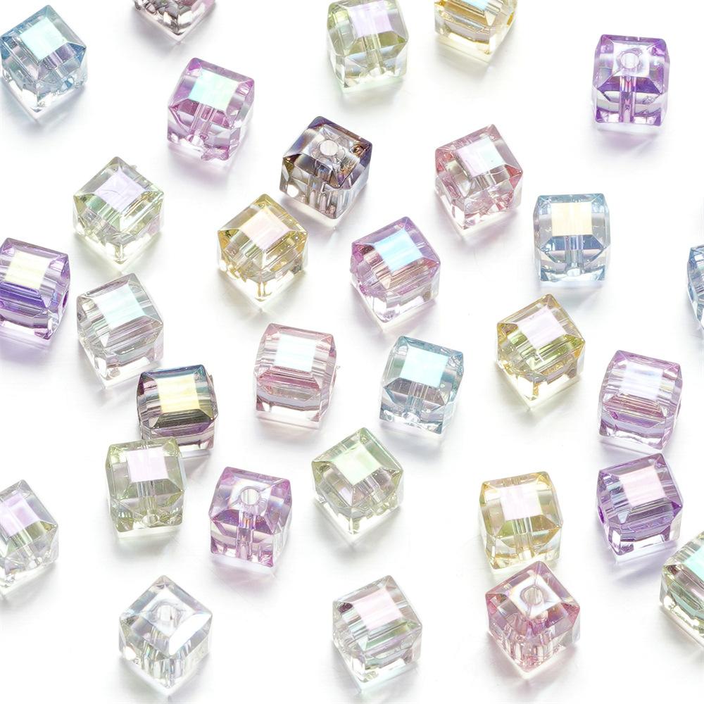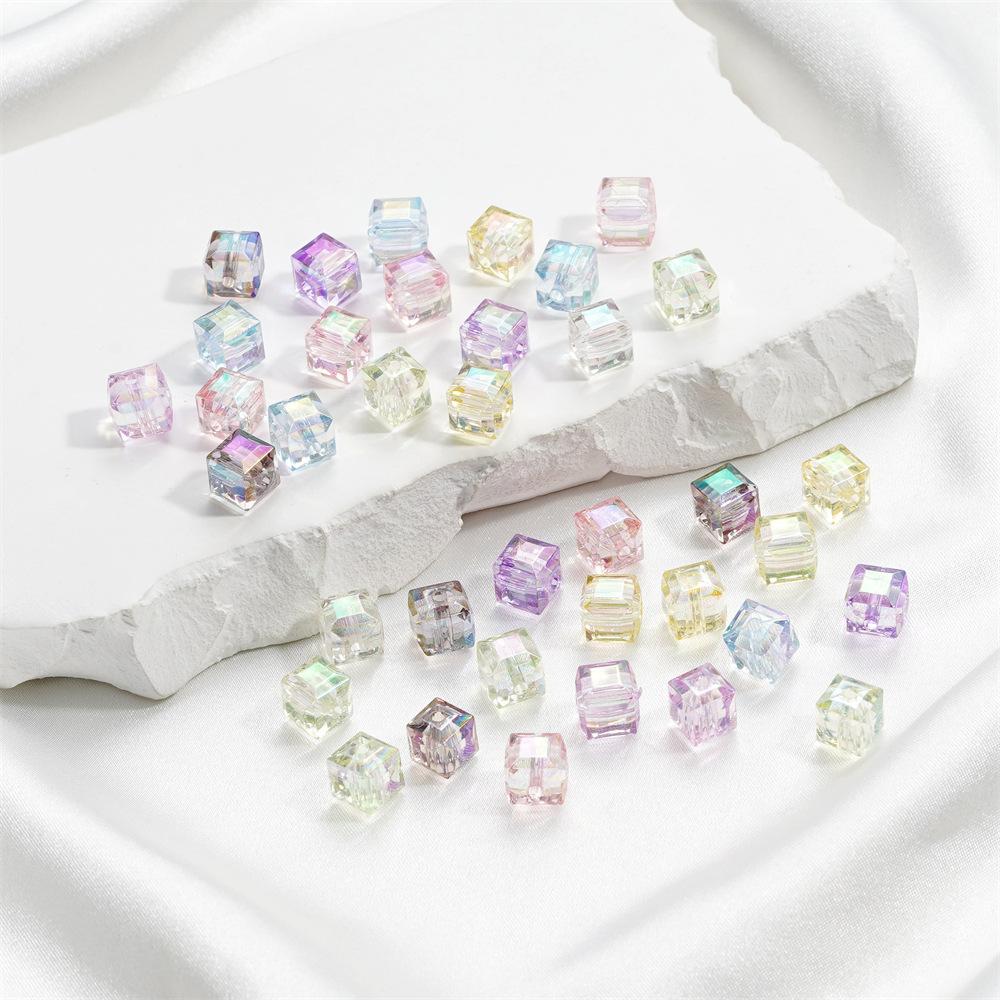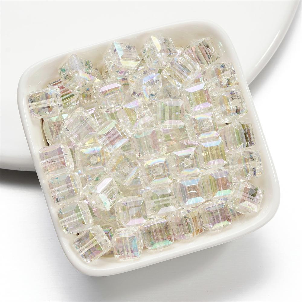 Cuentas tridimensionales de cubo de azúcar mágico de imitación de vidrio, cuentas sueltas perforadas, accesorios para pulsera de cuentas DIY, cadena para teléfono móvil