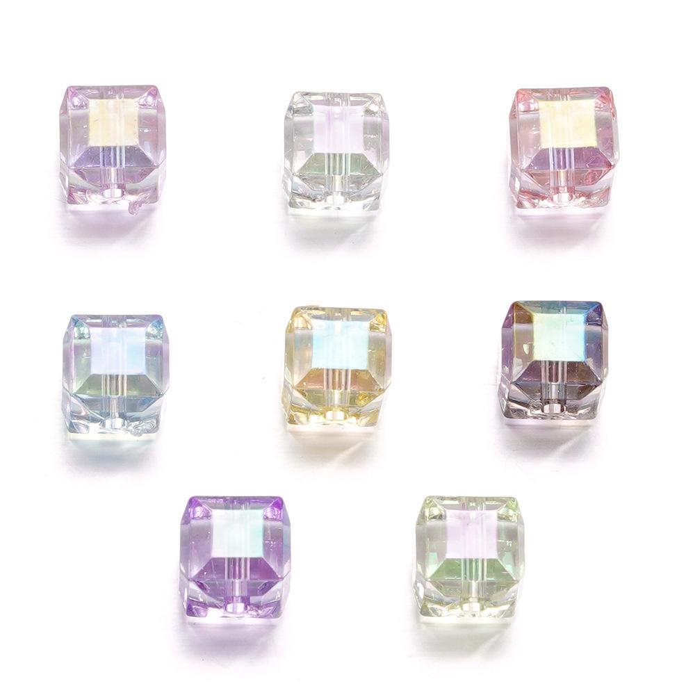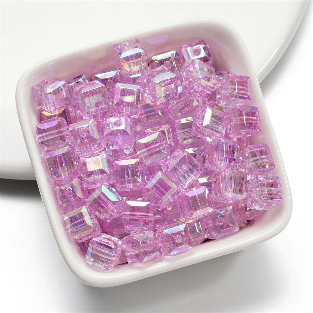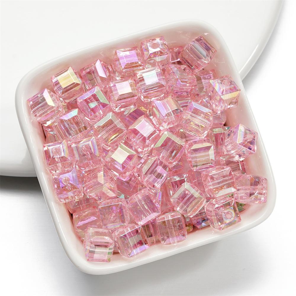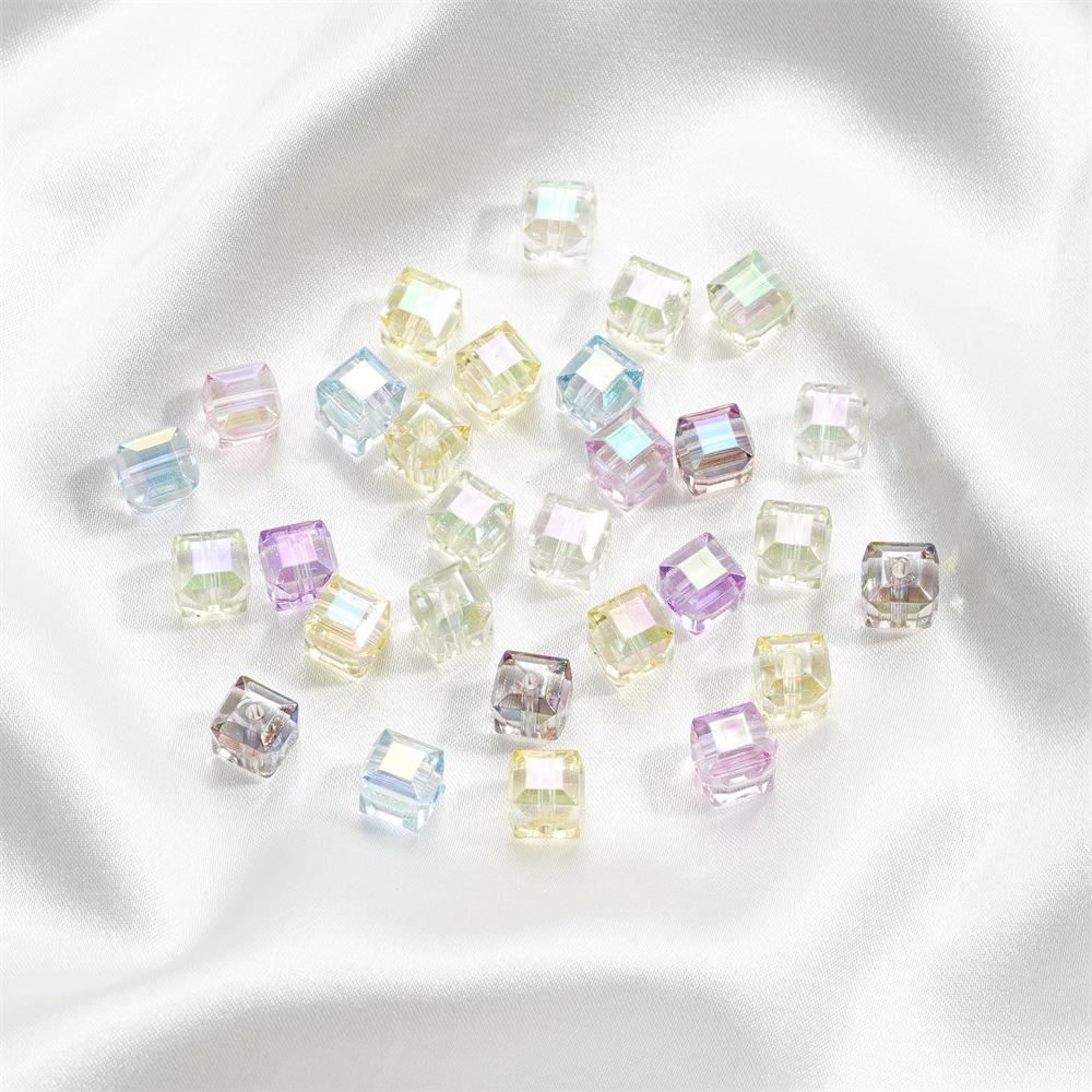 Cuentas tridimensionales de cubo de azúcar mágico de imitación de vidrio, cuentas sueltas perforadas, accesorios para pulsera de cuentas DIY, cadena para teléfono móvil