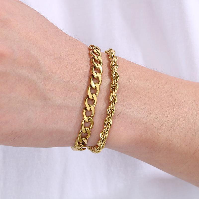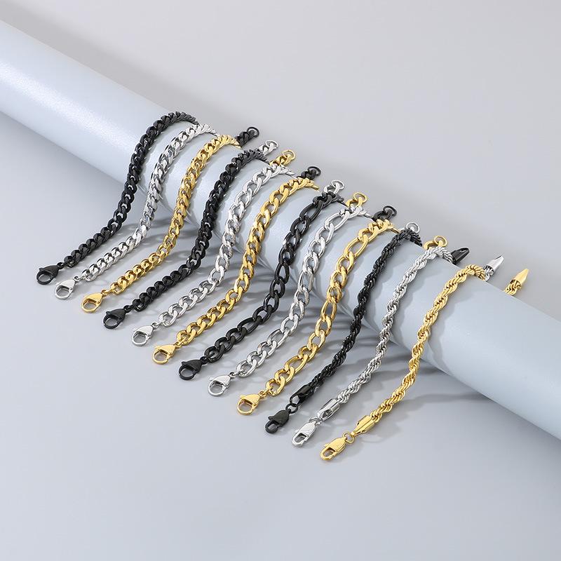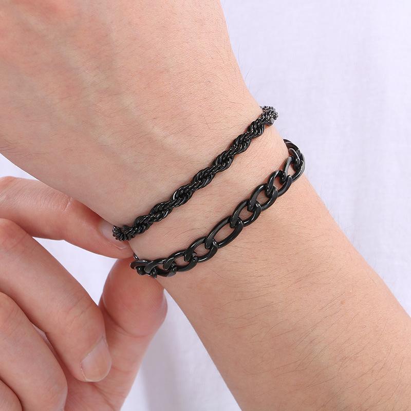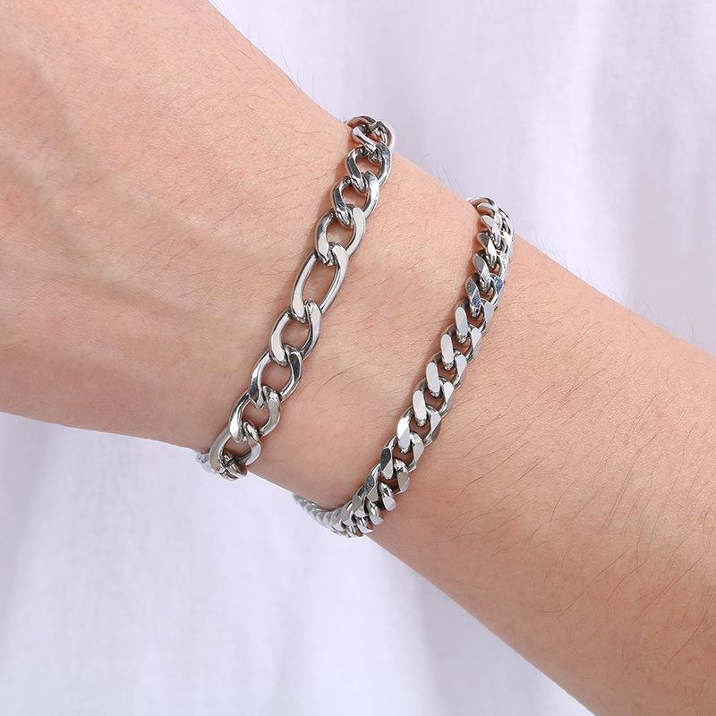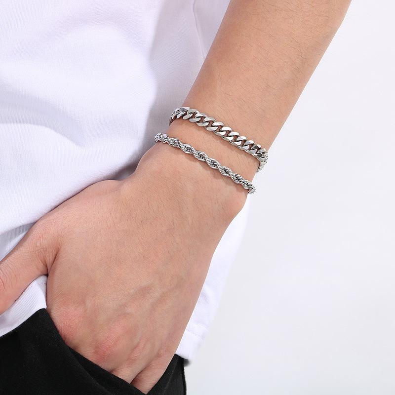 Pulsera Cubana de Acero Inoxidable Europeo y Americano para Hombre, Doble Capa Superpuesta, Hip-Hop, Figaro Twist, Simple para Hombre y Mujer