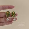 Hermosos pendientes de perlas artificiales 2023, nuevos, elegantes y a la moda, estilo retro dulce de Hong Kong, con diamantes de colores en la parte posterior y aguja plateada para mujer.