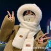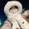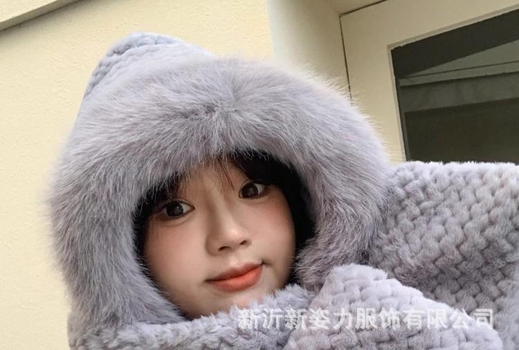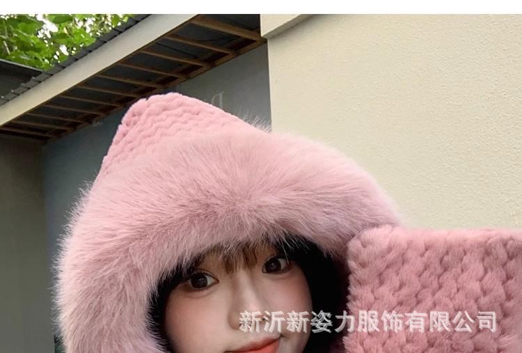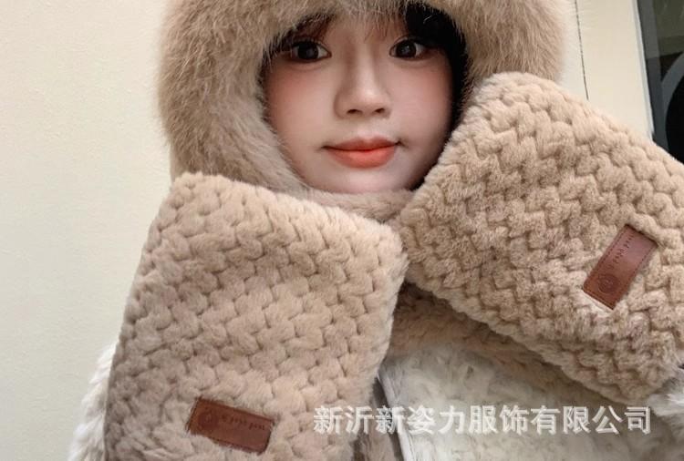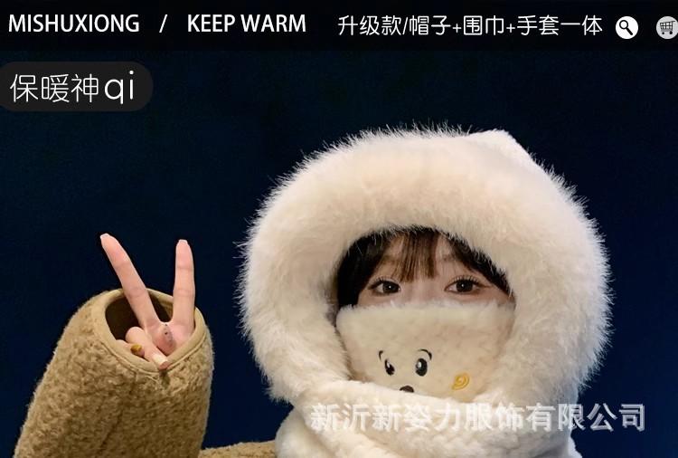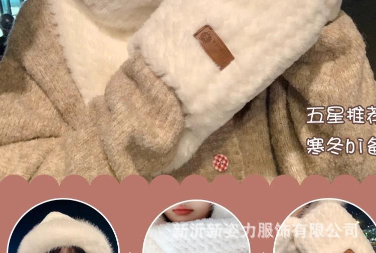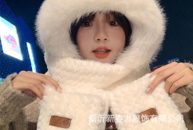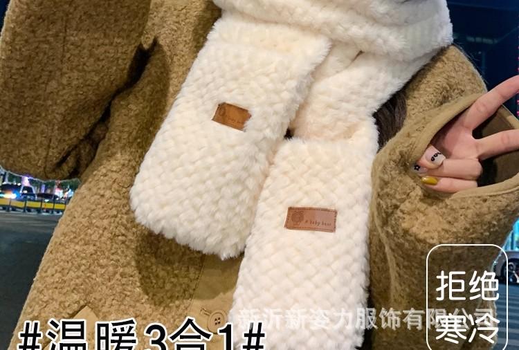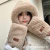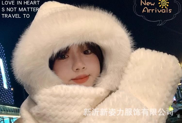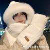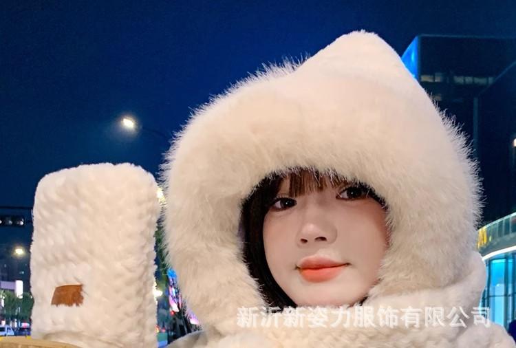 Sombrero de Oso de Otoño e Invierno para Mujer Sombrero de Felpa Tres en Uno Viento Coreano Cálido Protección para las Orejas Sombrero de Felpa Bufanda Juego de Tres Piezas