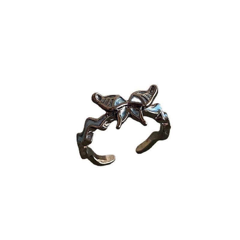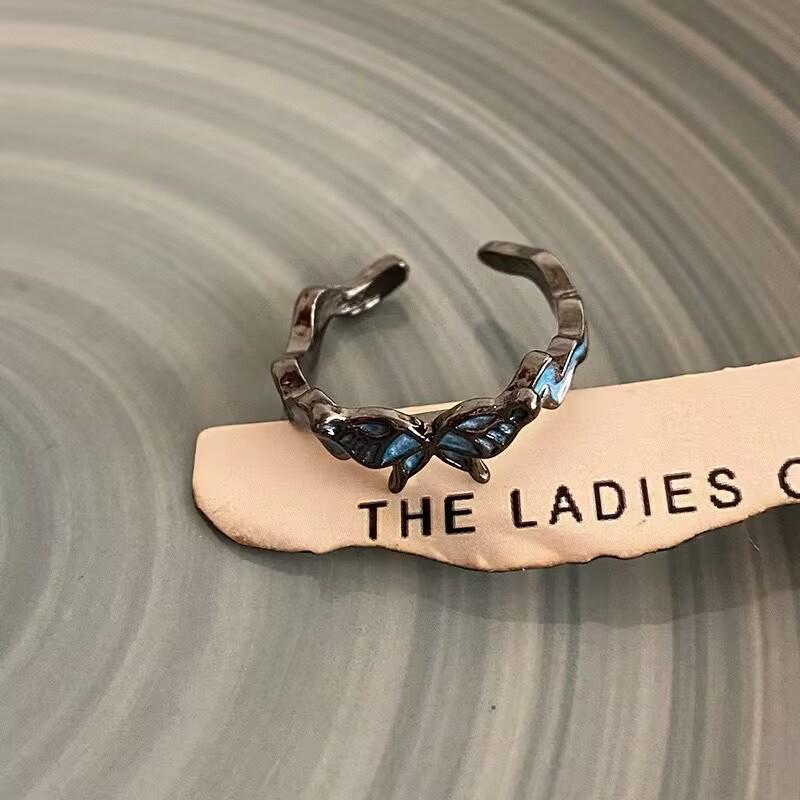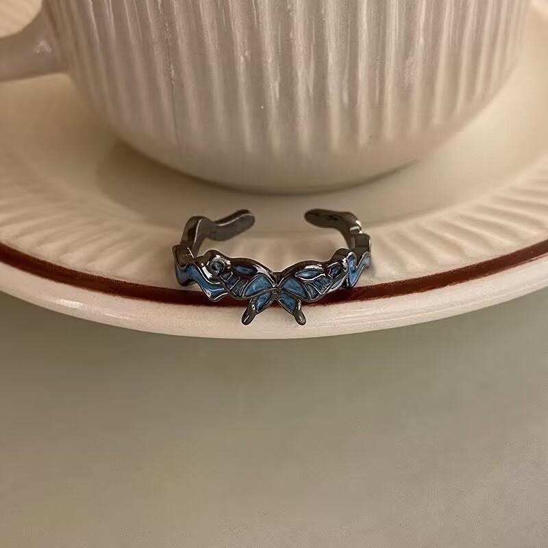 Anillo de Mariposa Azul Quemado para Mujer Estilo Punk Nicho Sentido del Diseño Personalidad Anillo Abierto para Dedo Sentido de Alta Gama Anillo Simple a la Moda