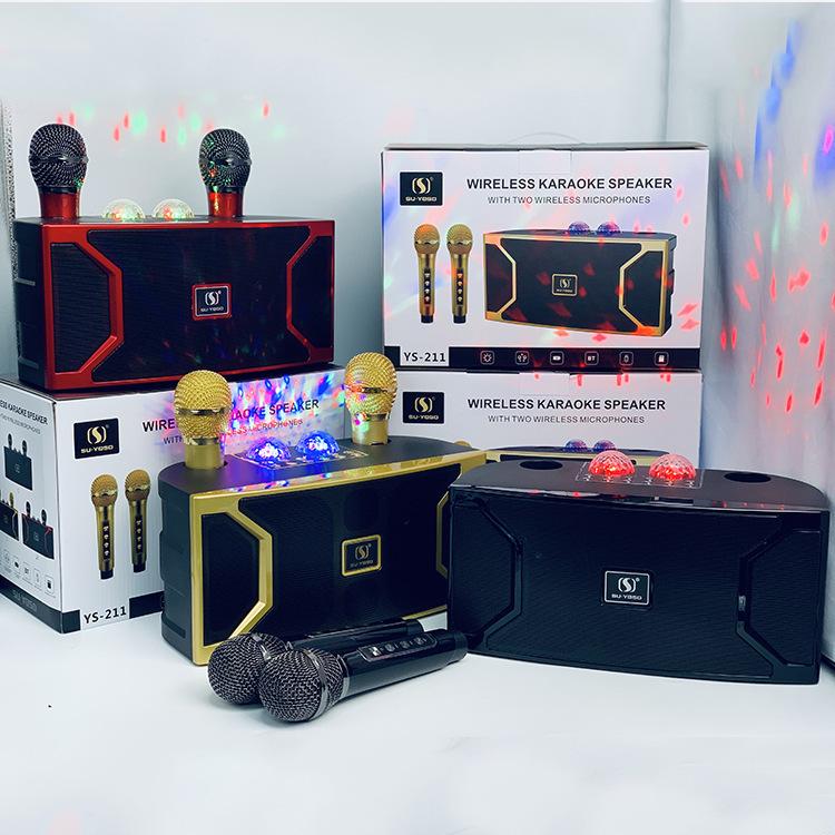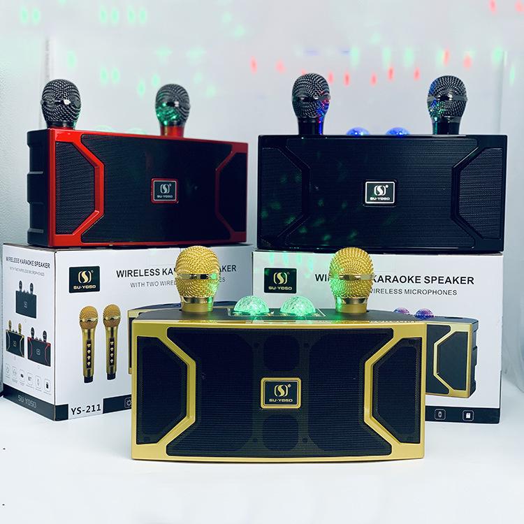 Altavoz Bluetooth YS-211 de alta potencia K-song, tarjeta de subwoofer multifunción de audio pesado con micrófono inalámbrico LED