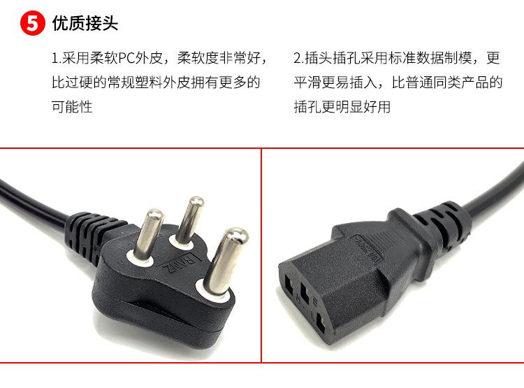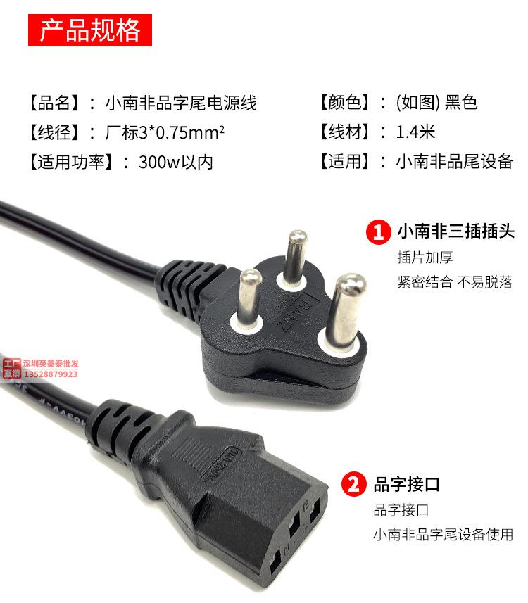 Cable de alimentación para computadora pequeño de Sudáfrica 1.4 m de 3 núcleos con enchufe cable de cola con palabra de visualización suministro directo de fábrica