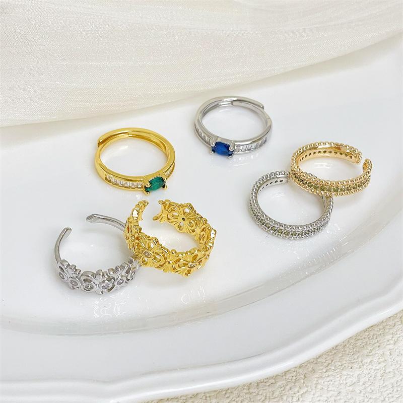 Anillo Abierto Estilo Corte Retro Transfronterizo Tesoro de Color Sentido de Alta Gama Moda Nicho Sentido del Diseño Anillo de Dedo Medieval Medio Anillo de Dedo para Comida