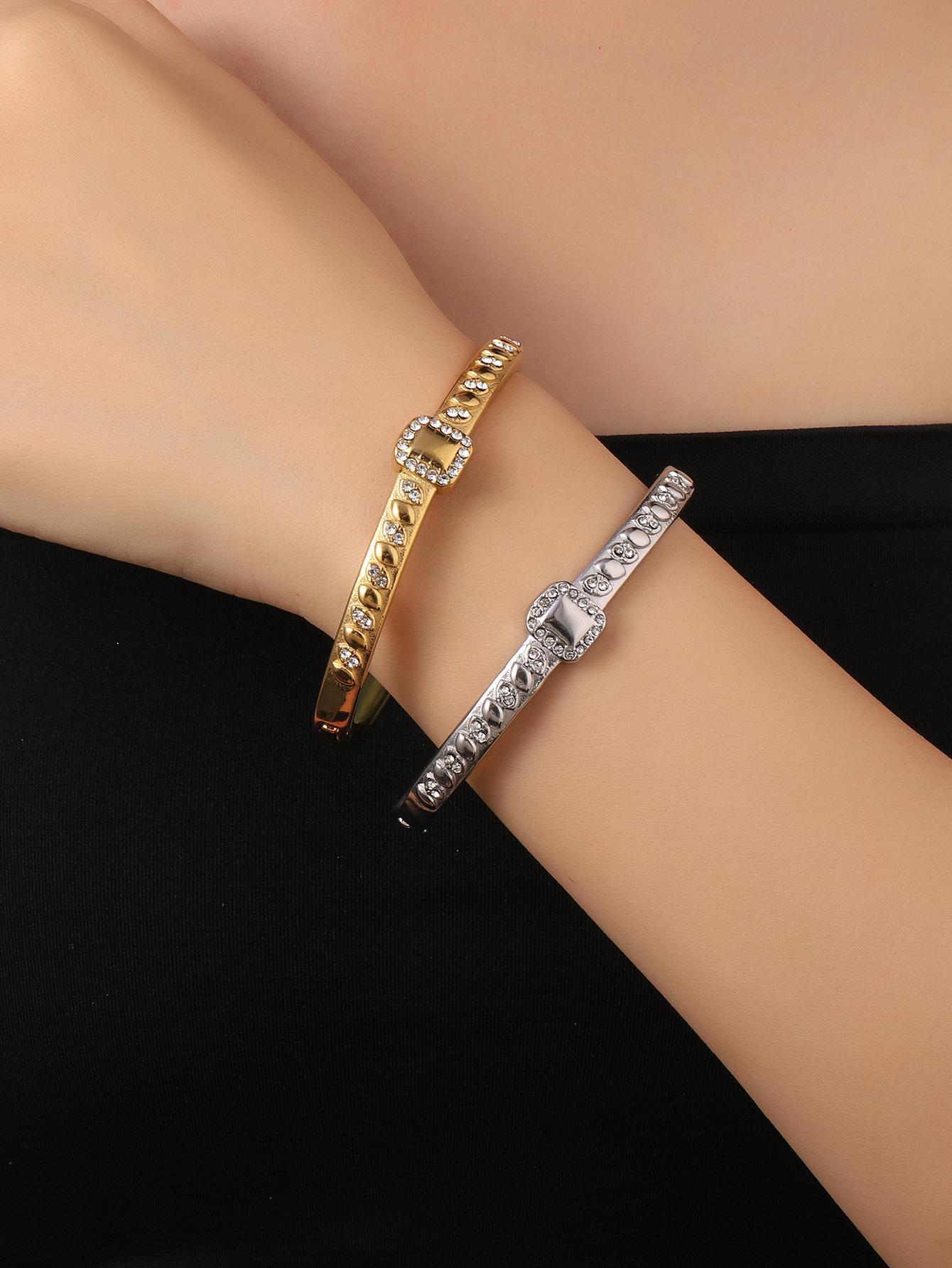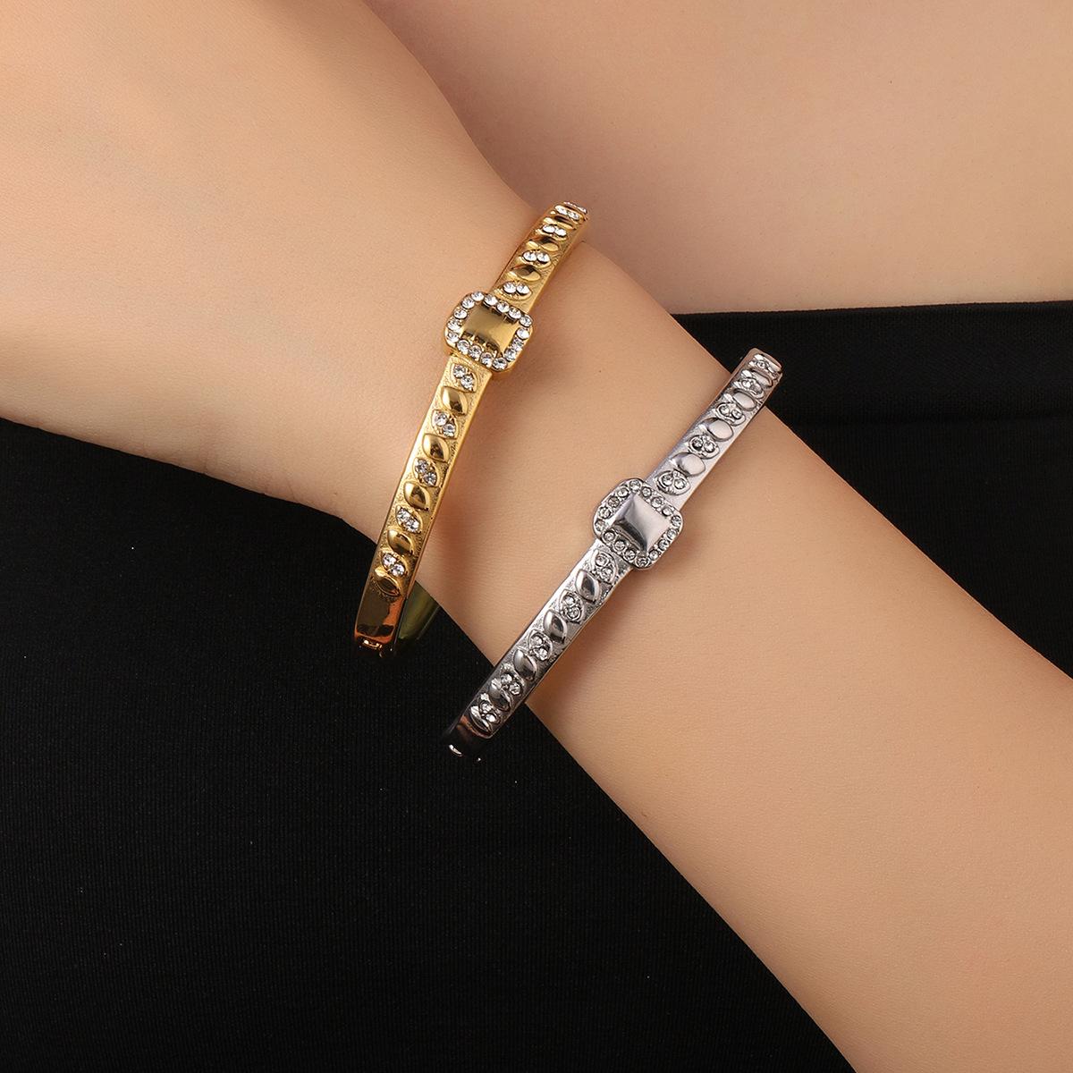 Europa y Estados Unidos ventas calientes nueva pulsera de acero de titanio gota de agua diamante patrón de diamantes joyería joyería pulsera de acero inoxidable al por mayor
