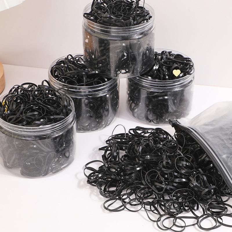 Banda de goma pequeña desechable para mujer, banda de cuero negra pequeña para el cabello, cuerda para el cabello, banda elástica alta para el cabello para niños, tocado