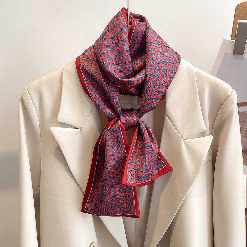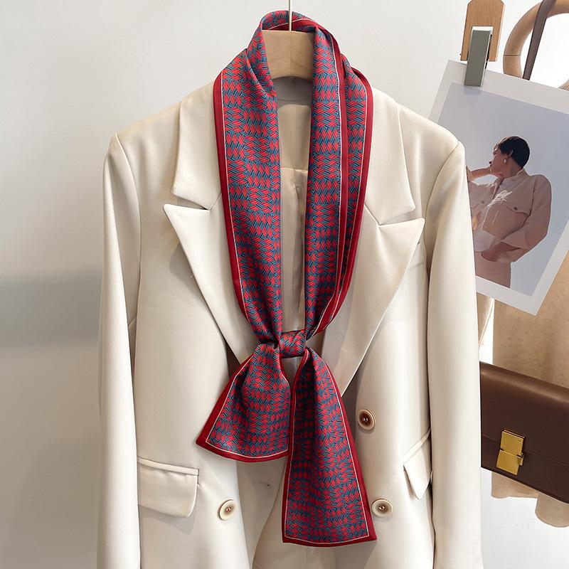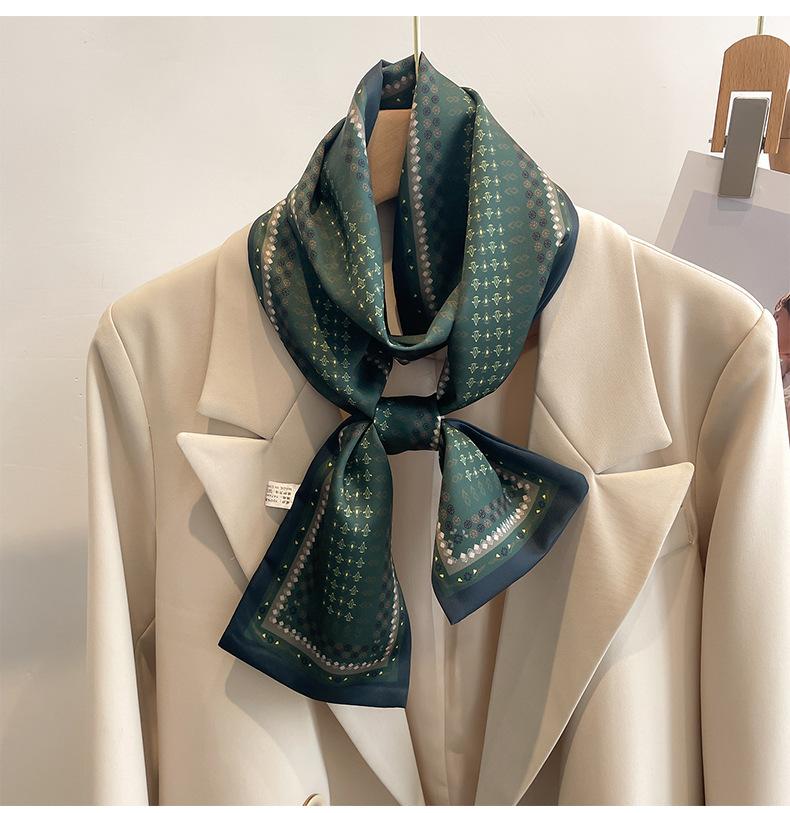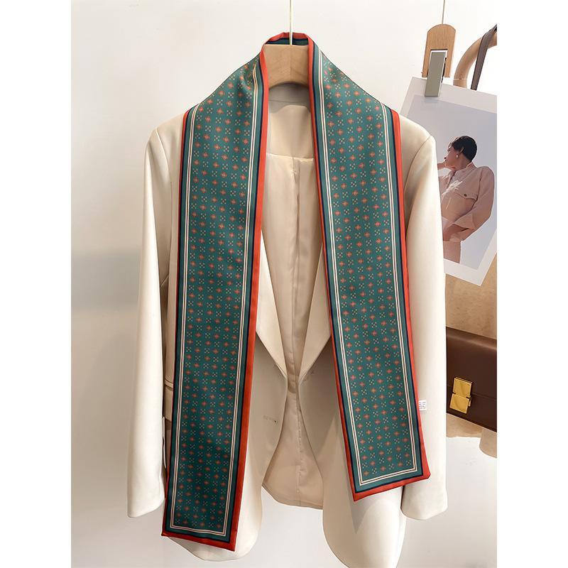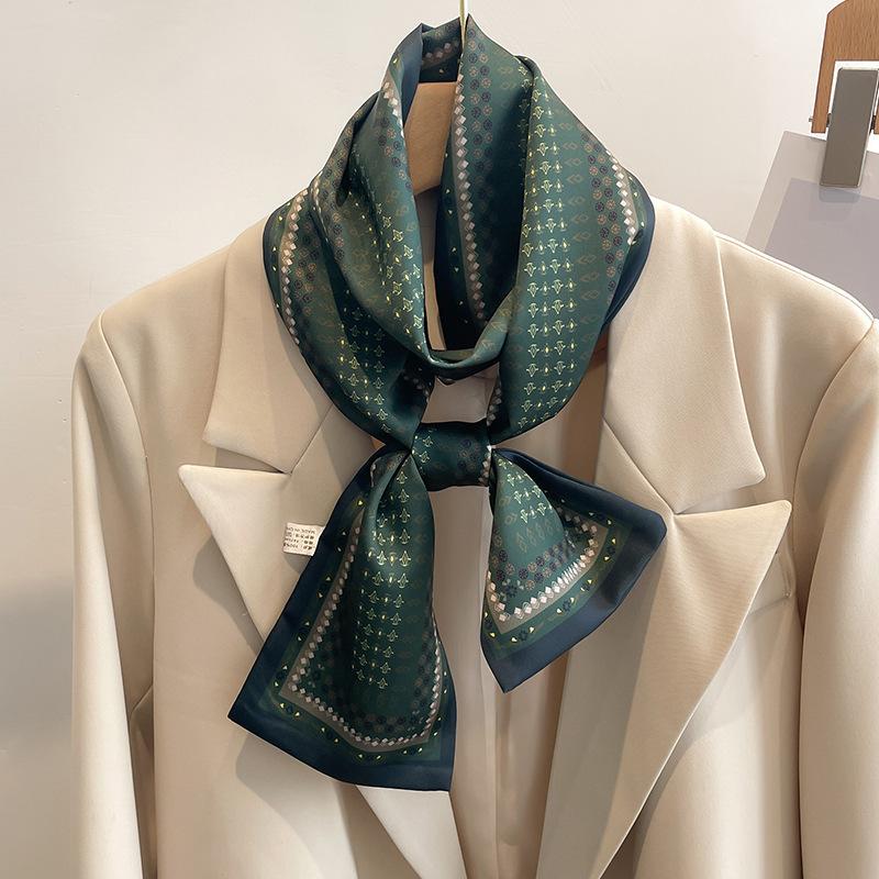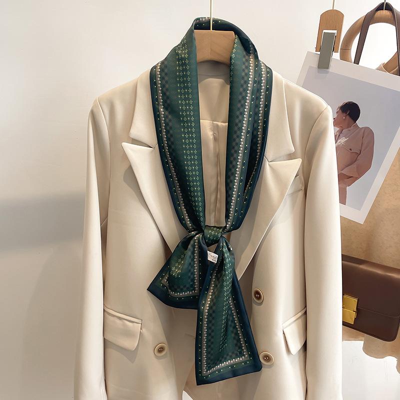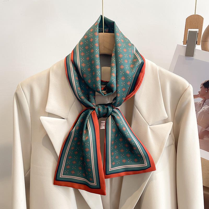 Bufanda Pequeña Dulce Verde Estilo Japonés y Coreano para Mujer Bufanda Pequeña de Corea del Sur Larga Primavera y Otoño Verano Fina Elegante Camisa de Moda