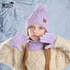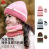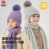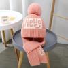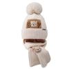 Gorro y bufanda de dos piezas para invierno para niños, forro polar grueso, resistente al frío, protección para los oídos, gorro de punto, bufanda, traje, gorro de lana de dibujos animados.
