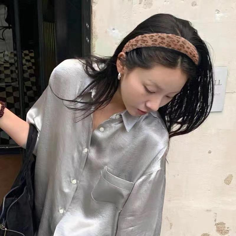 Diadema Mao con estampado de leopardo retro, diadema de alta calidad con parte superior craneal, paquete de cabello para rostro, pequeñas pinzas para el cabello, novedad de 2024