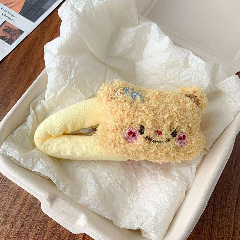 Horquilla de oso de peluche con dibujos animados para mujer, para otoño e invierno, con flequillo lateral, bonita horquilla para niña, accesorio para la cabeza