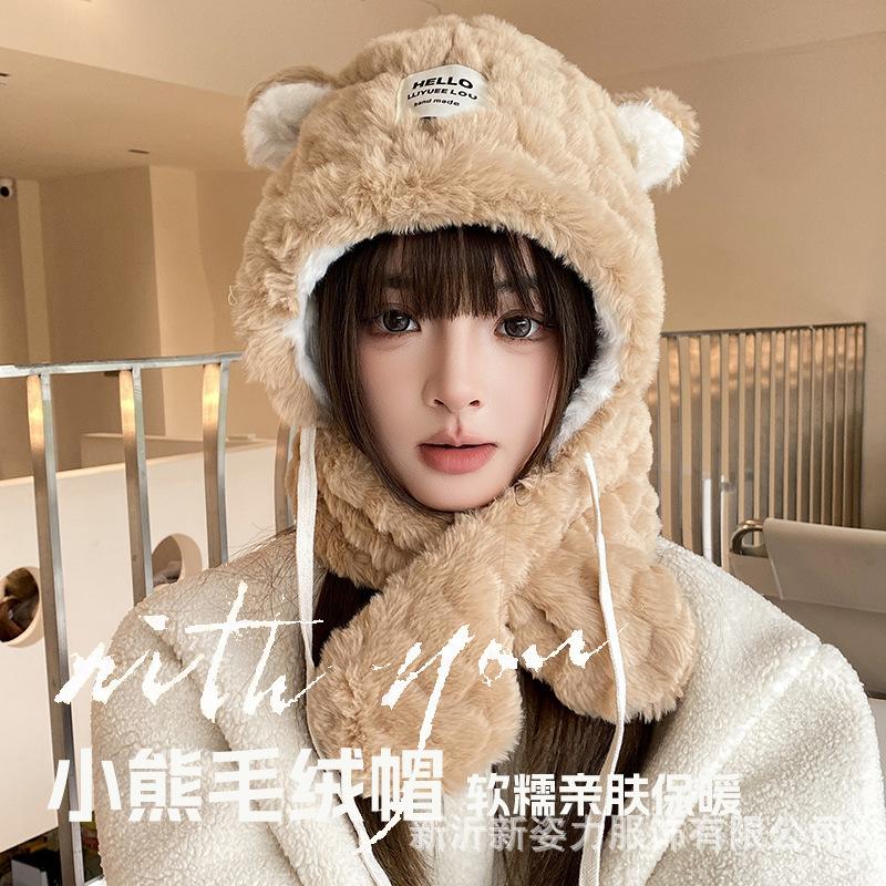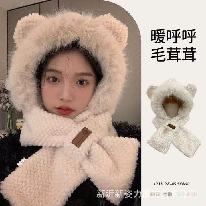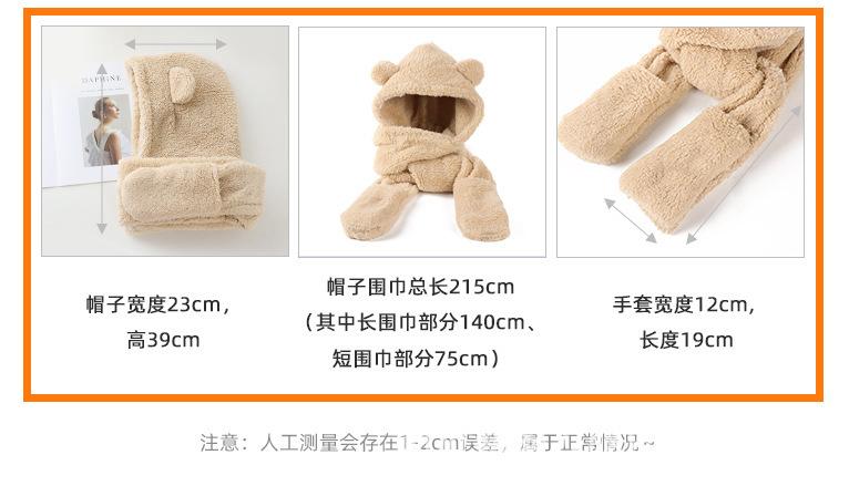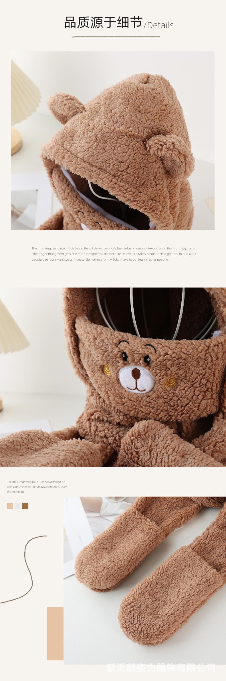 Gorro de invierno, gorro de tres piezas, bufanda, guantes, todo en uno, máscara de oso, cuatro en uno, lindo estudiante, ciclismo, cálido
