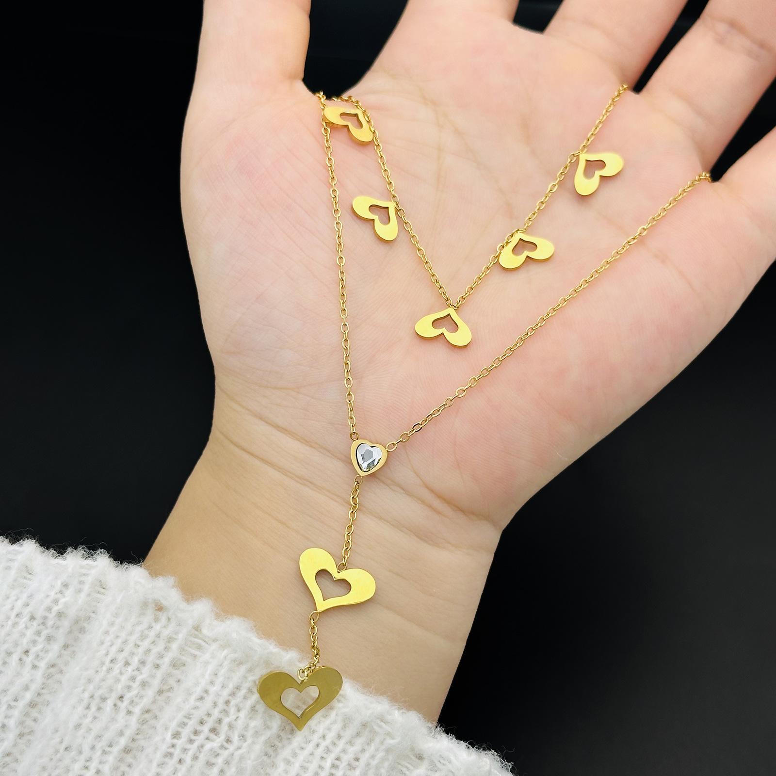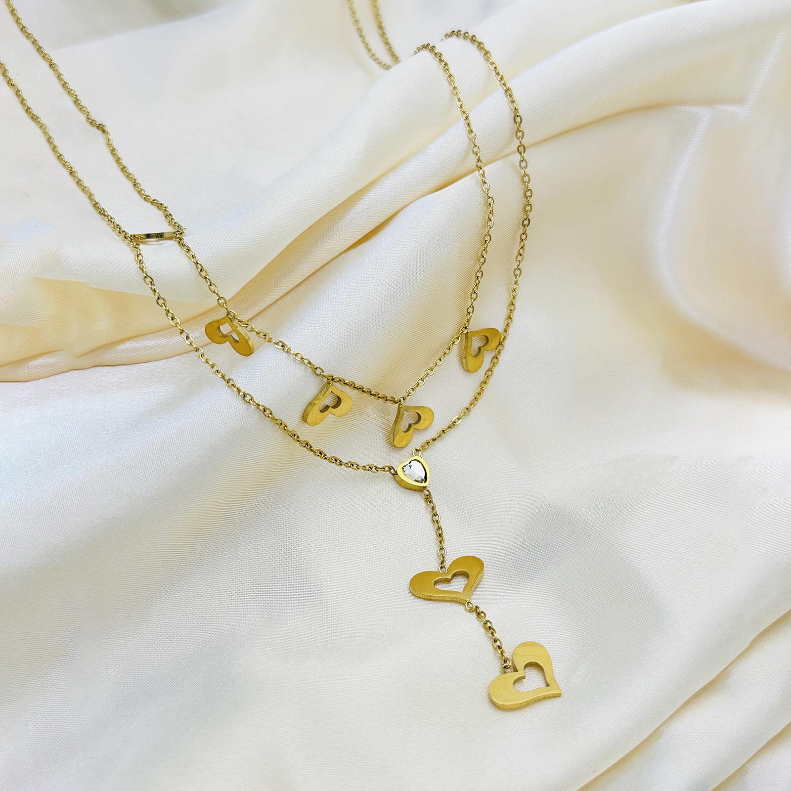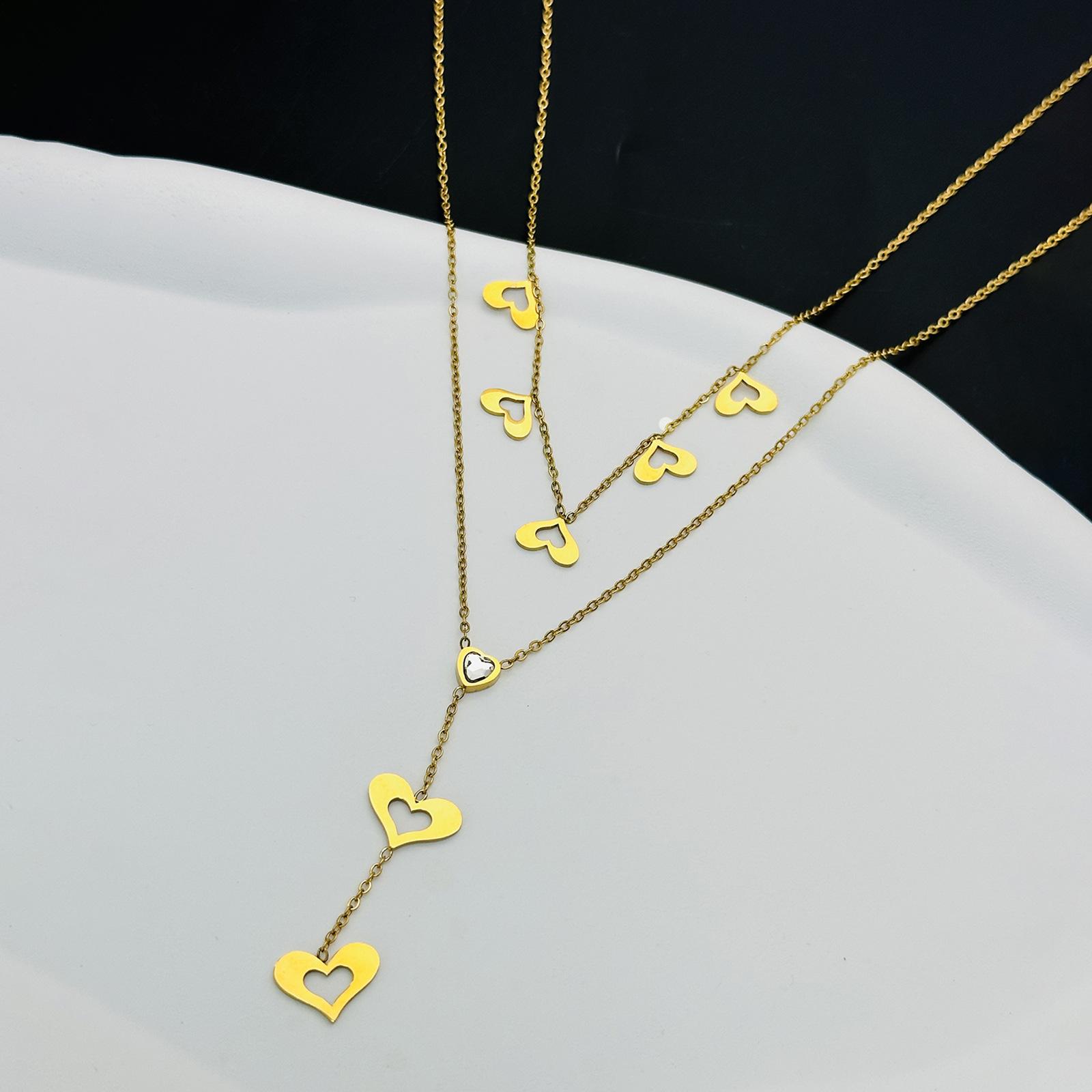 Collar elegante y sencillo de corazón de oro de 18 quilates con diseño retro europeo y americano para mujer, cadena de clavícula de estilo frío de celebridades de Internet.