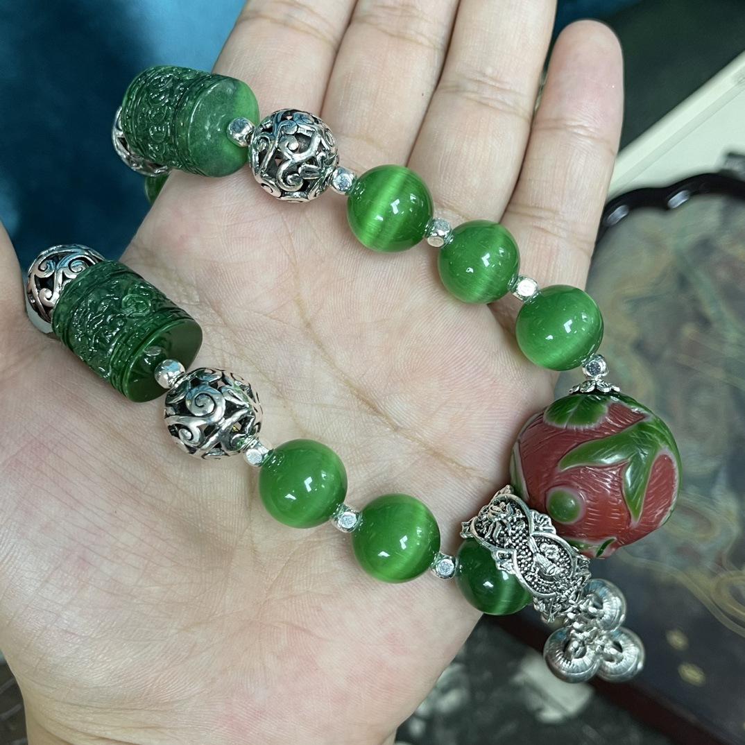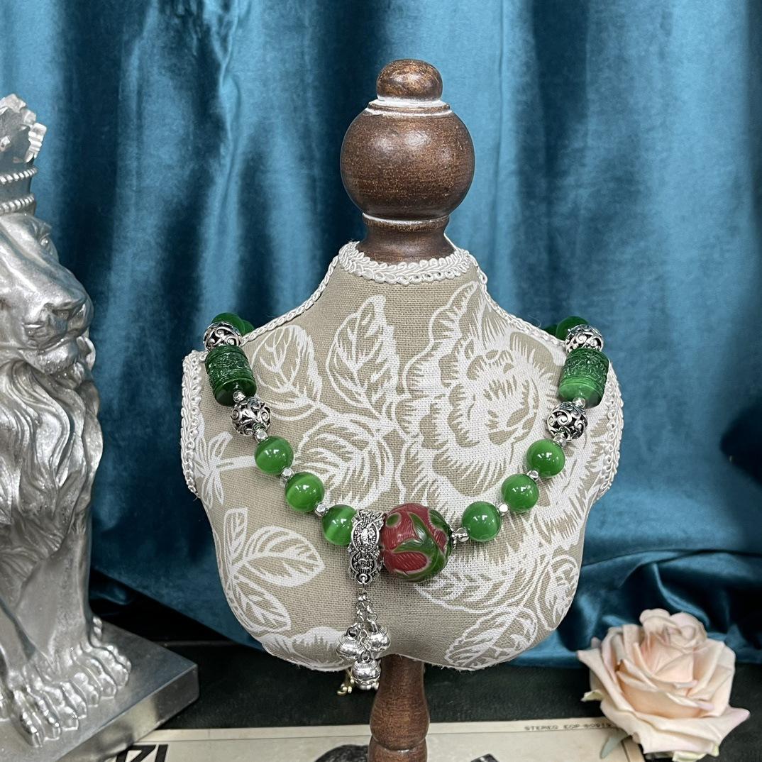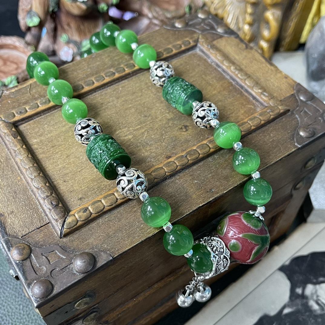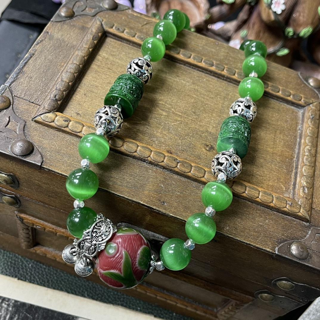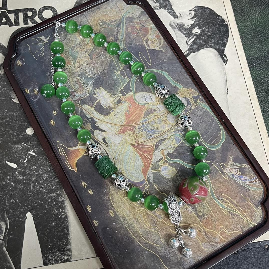 [Mi Nan] Collar Joker vintage estilo retro nacional, simple, creativo, nuevo, de ojo de gato verde con cuentas talladas
