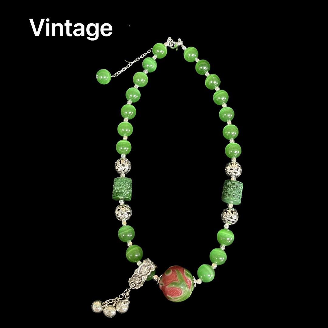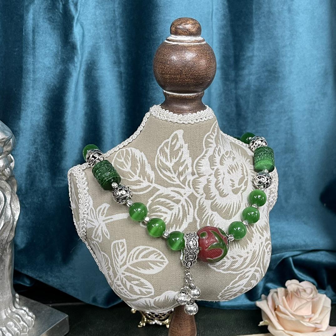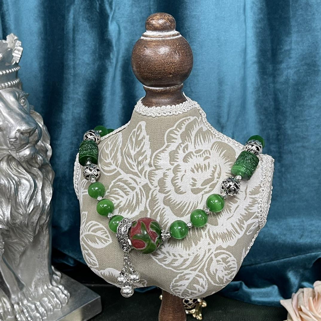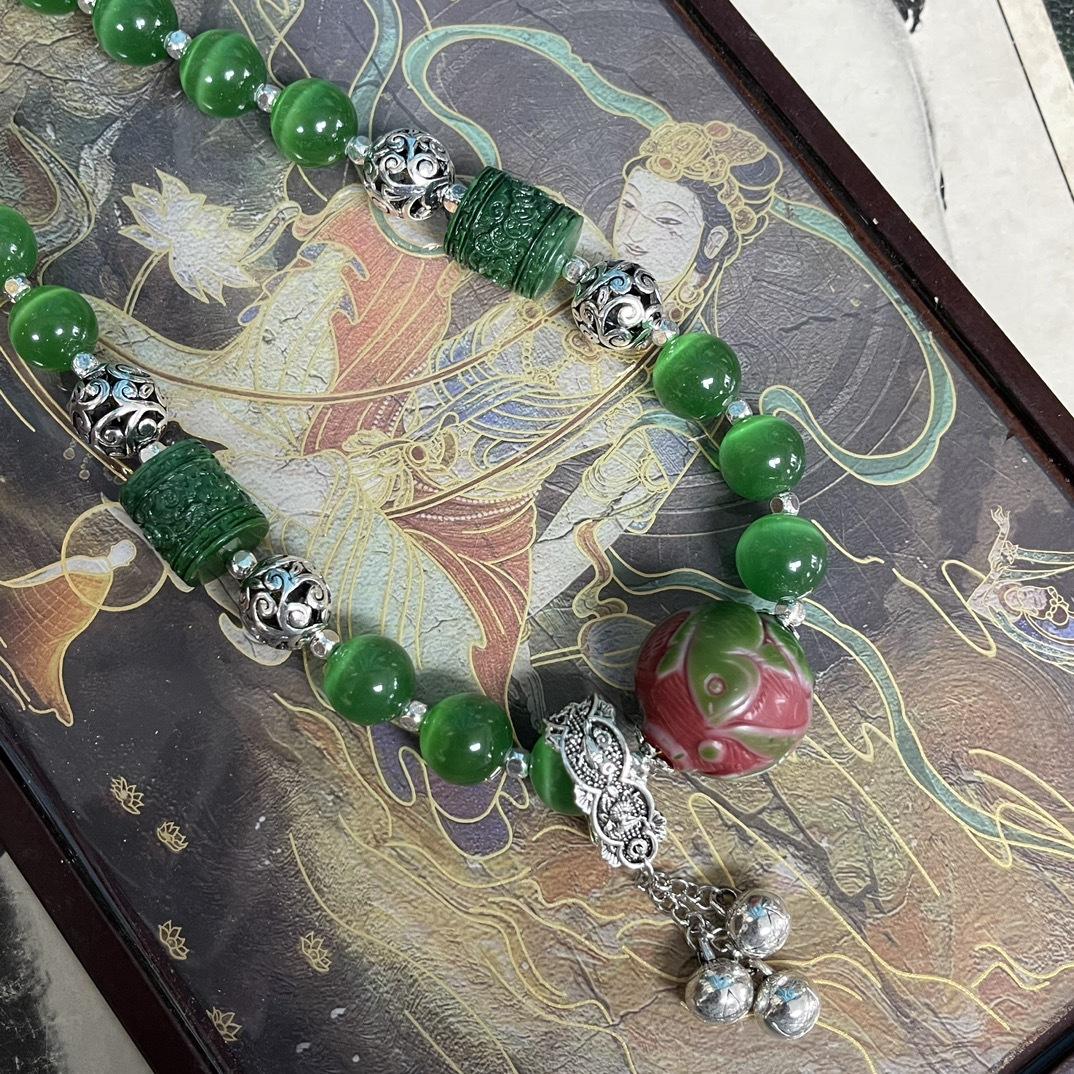 Compra [Mi Nan] Collar Joker vintage estilo retro nacional, simple, creativo, nuevo, de ojo de gato verde con cuentas talladas al por mayor en Joom.pro