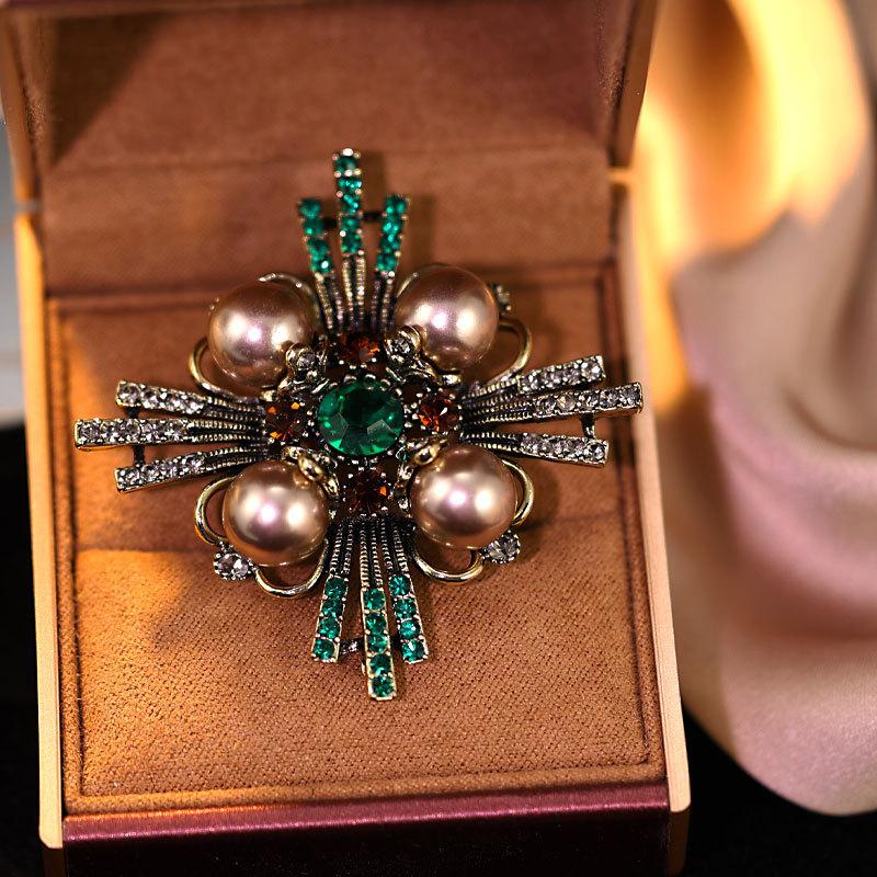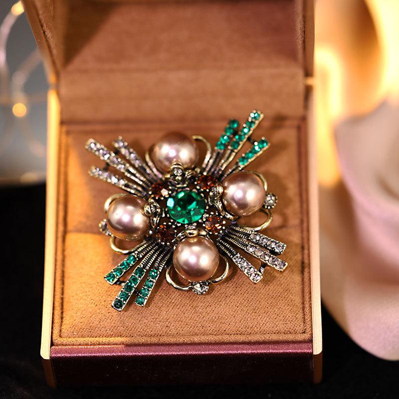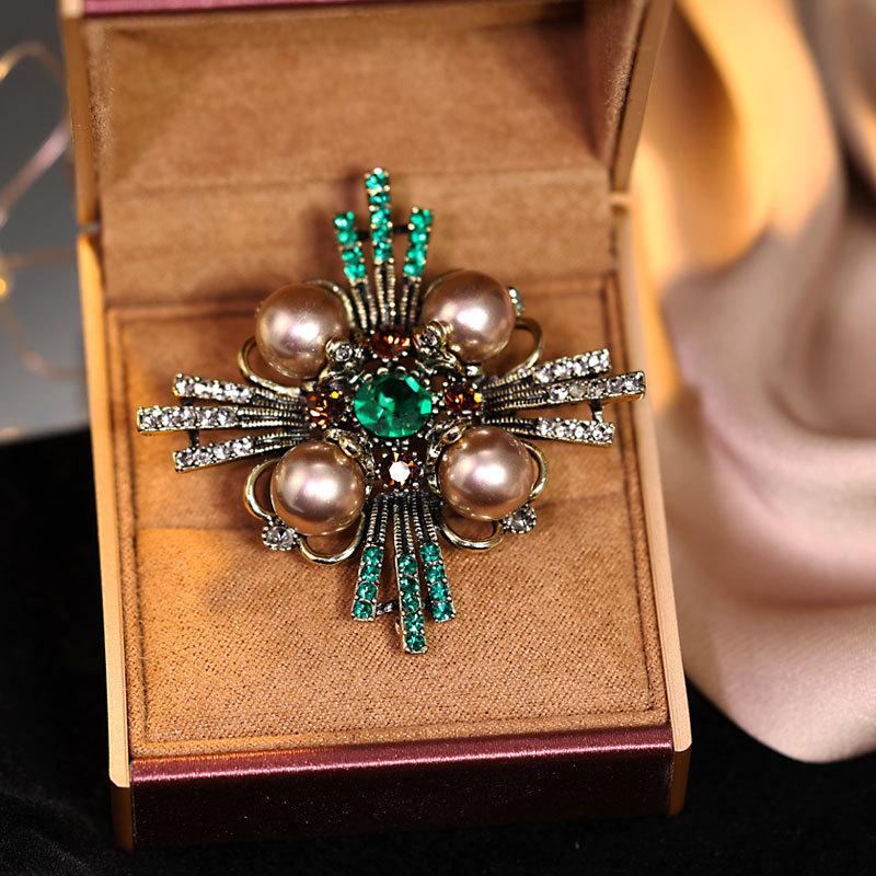 Broche Vintage de Lujo Ligero con Perlas y Pedrería Formal Decorativo con Borla Corsage Pin Accesorio Pin para Cuello Estilo Lujo Ligero
