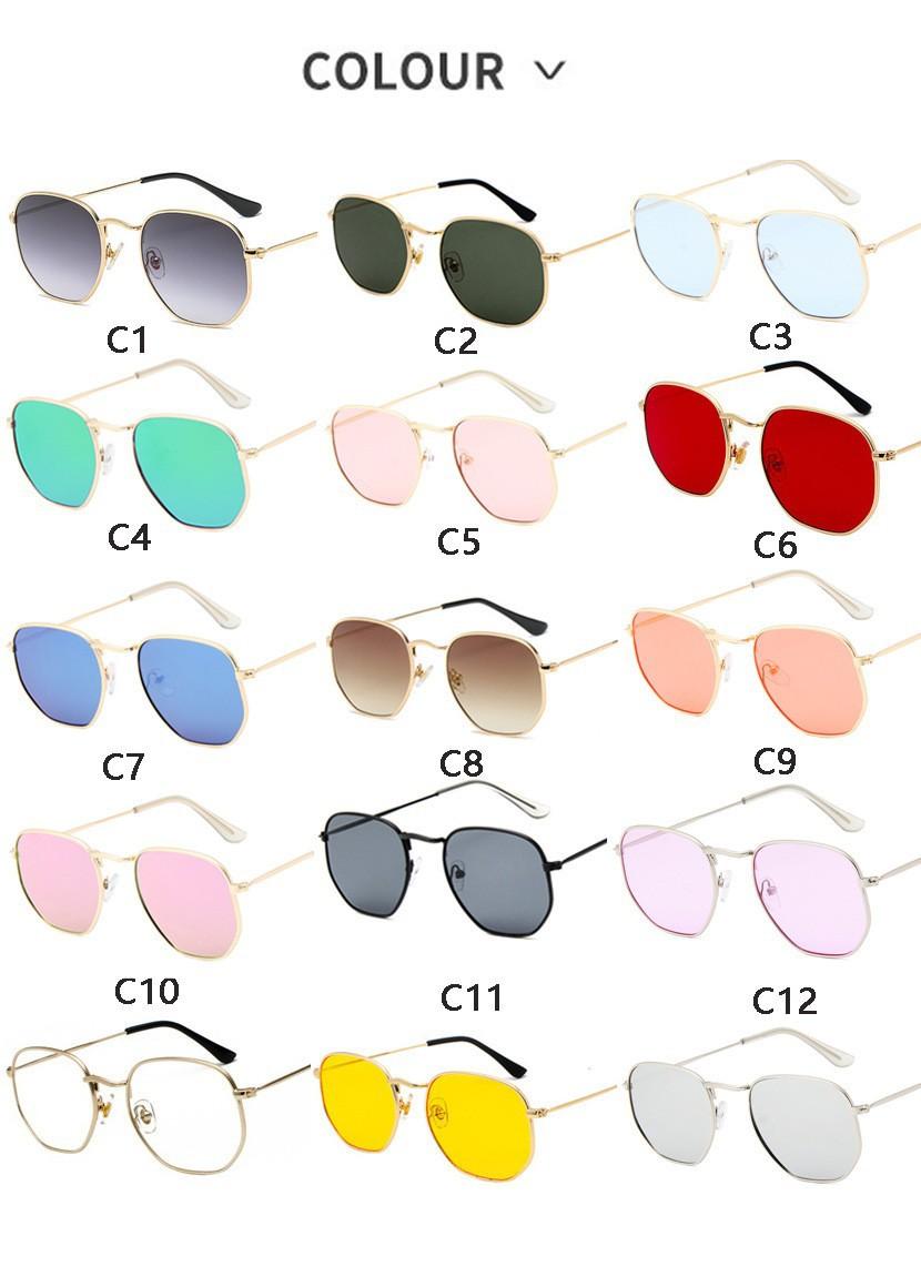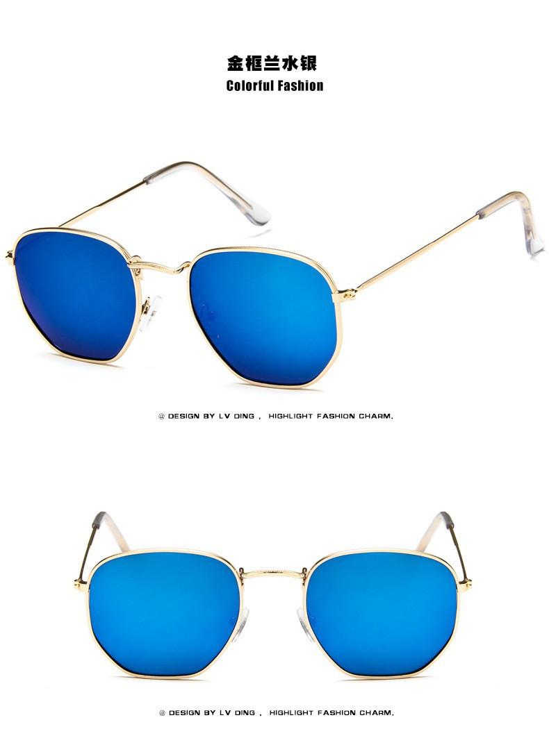 Nuevas gafas de sol poligonales de metal para mujer, tendencia europea y americana, montura pequeña, gafas de sol coloridas mercurio océano al por mayor 3548