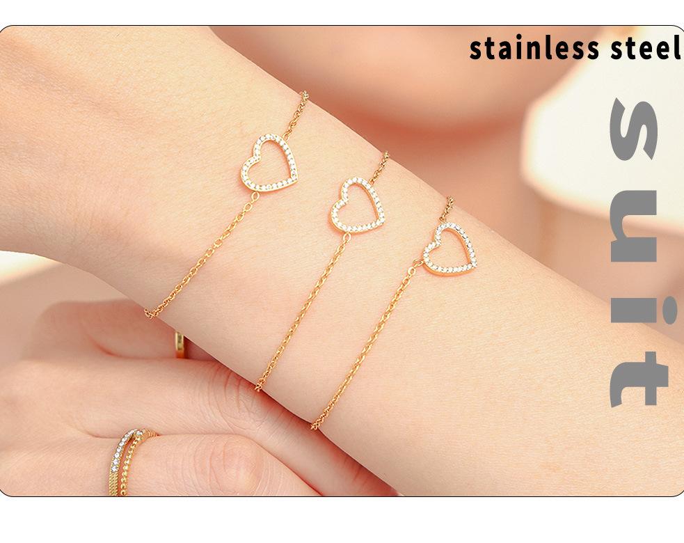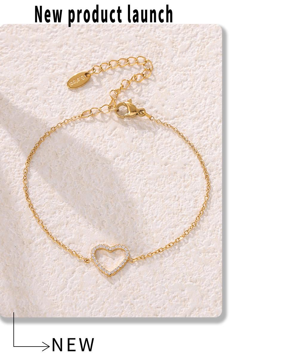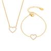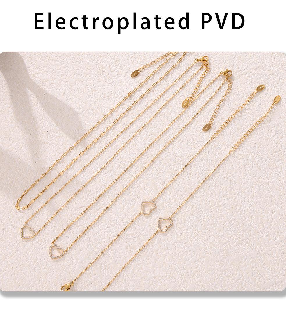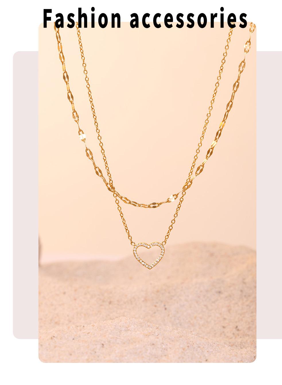 Pulsera de collar con doble clavícula de circonitas en forma de corazón, hecha a mano, con revestimiento de PVD de acero titanio y preservación del color oro auténtico.