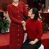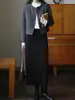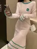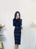Vestido de punto de cuello alto medio estilo francés otoño e invierno Nuevo estilo falda interior de cadera falda de fondo pequeño moda femenina