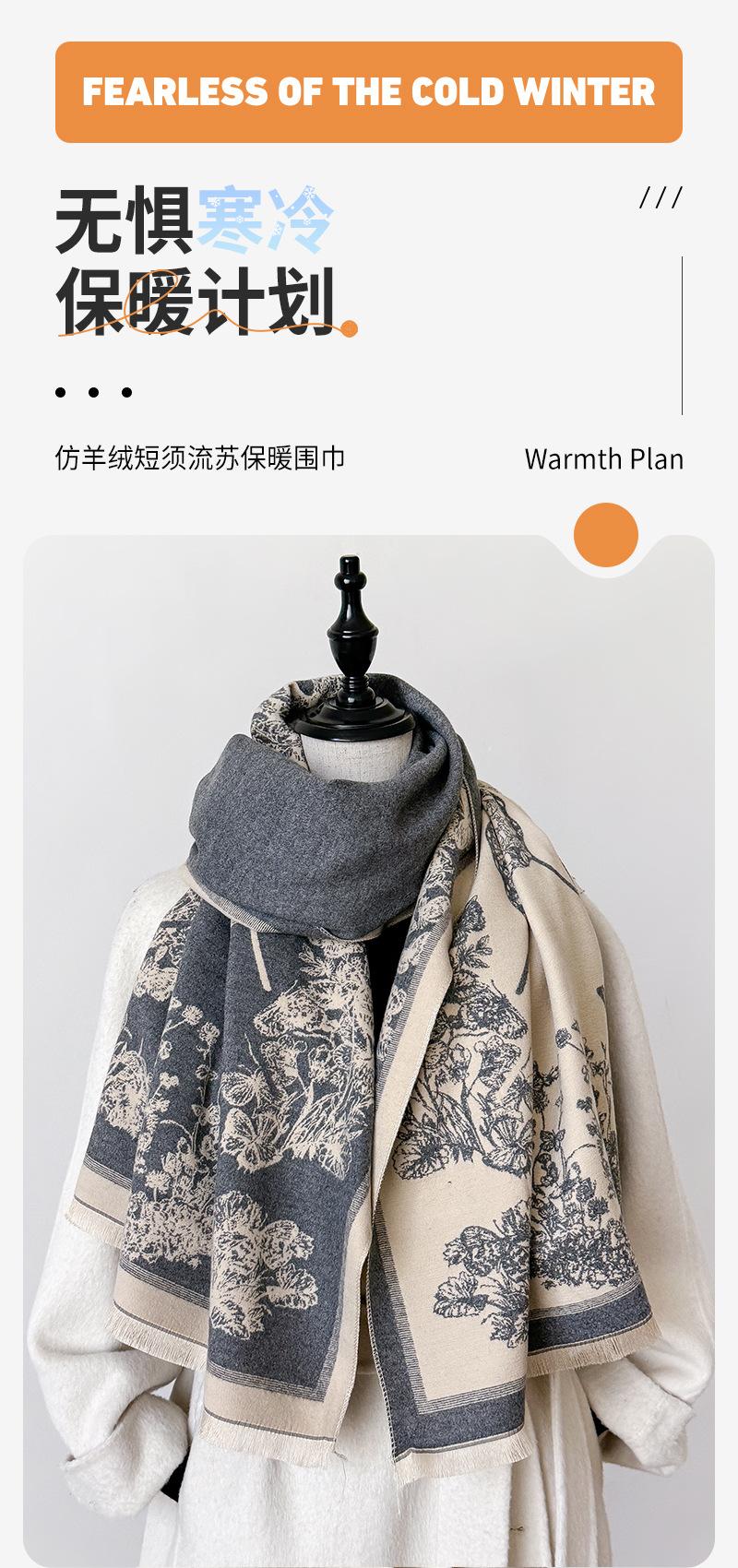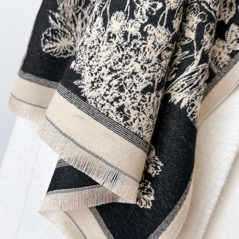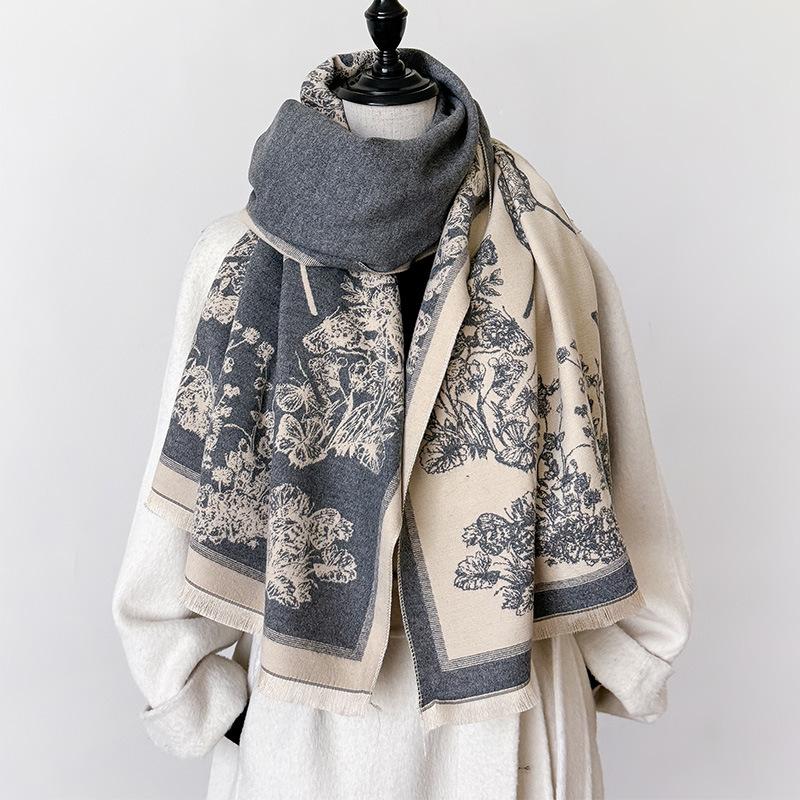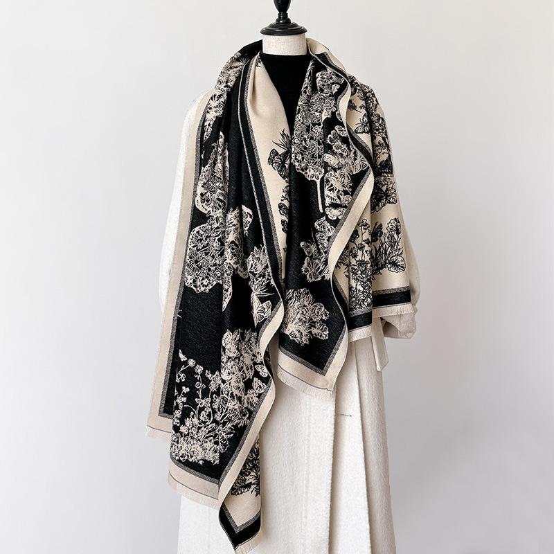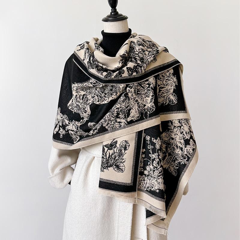 Bufanda grande de cachemir elegante con estampado de mariposas e insectos para mujer, estilo europeo y americano, cálida y a la moda, para otoño e invierno.