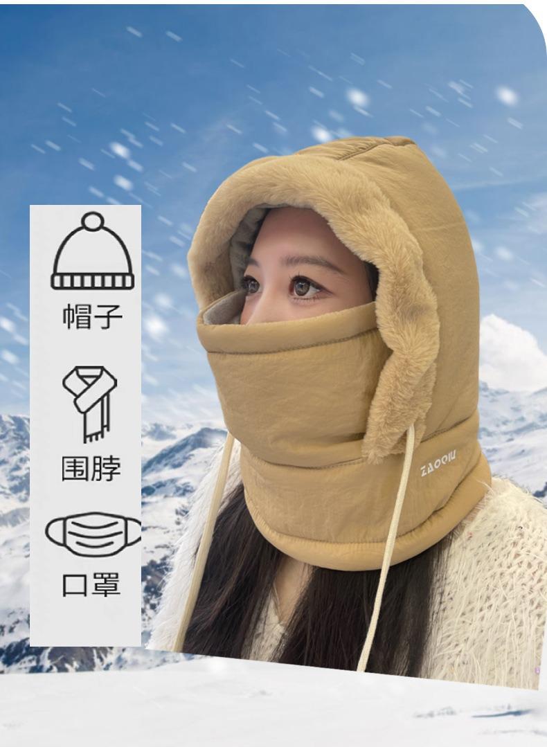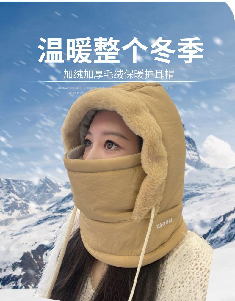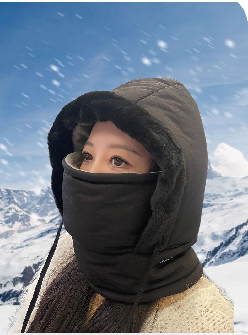 Sombrero Lei Feng con forro polar Bufanda gruesa Mascarilla Sombrero integrado Resistente al frío A prueba de viento Sombrero de esquí Moderno Combinable Sombrero a prueba de viento