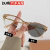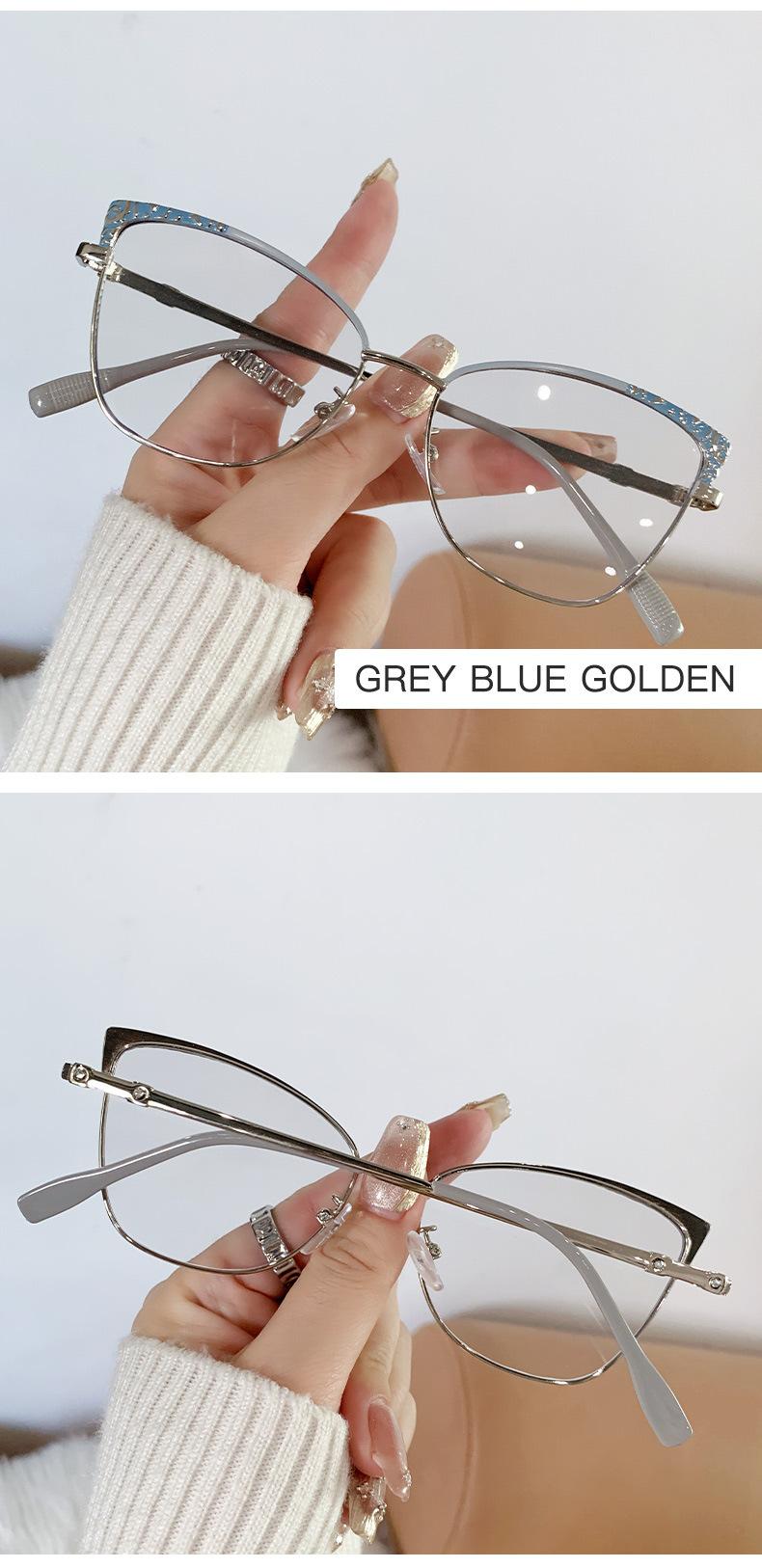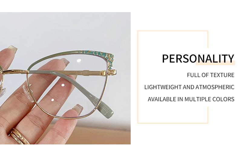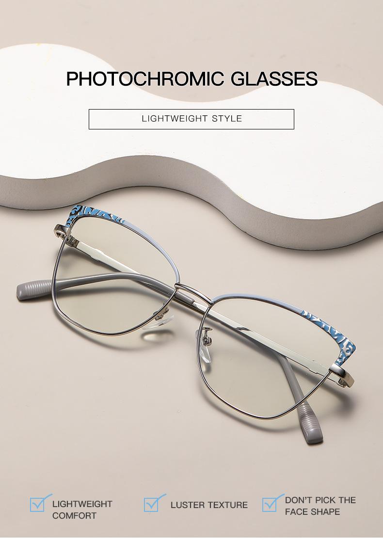 Gafas de moda con montura de ojo de gato para mujer, de metal, planas, europeas y americanas, con cambio de color y antiazules.