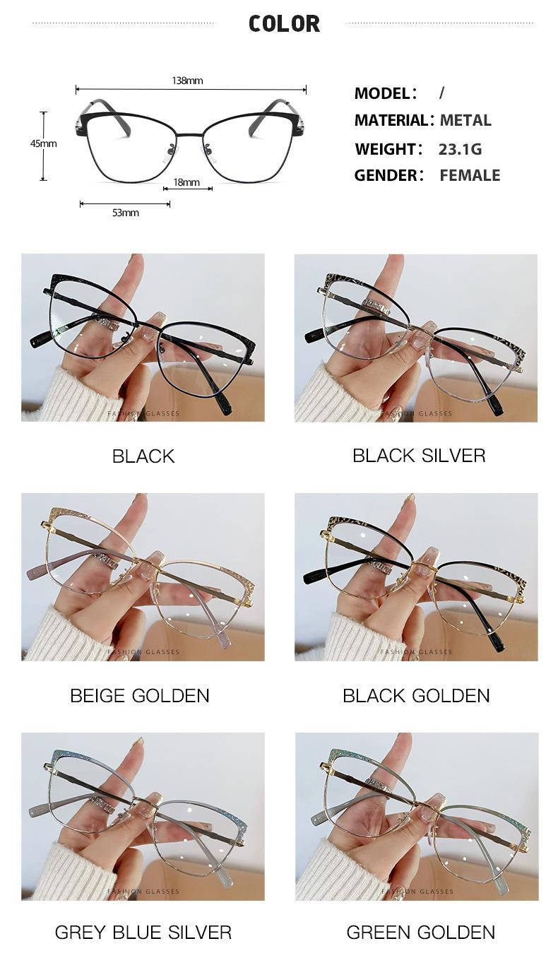 Black frame, Black silver frame, Khaki gold frame, Black gold frame, Blue silver frame, Green gold frame