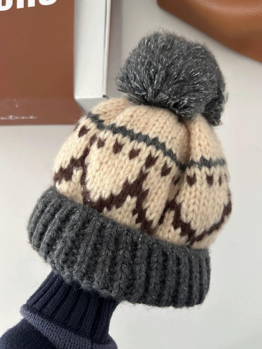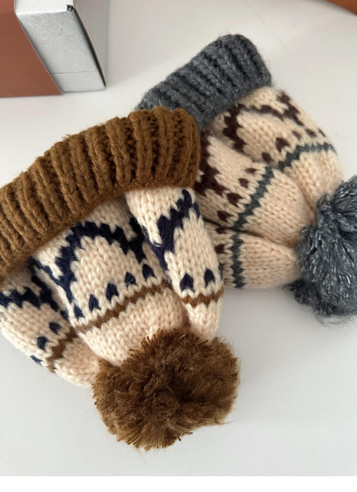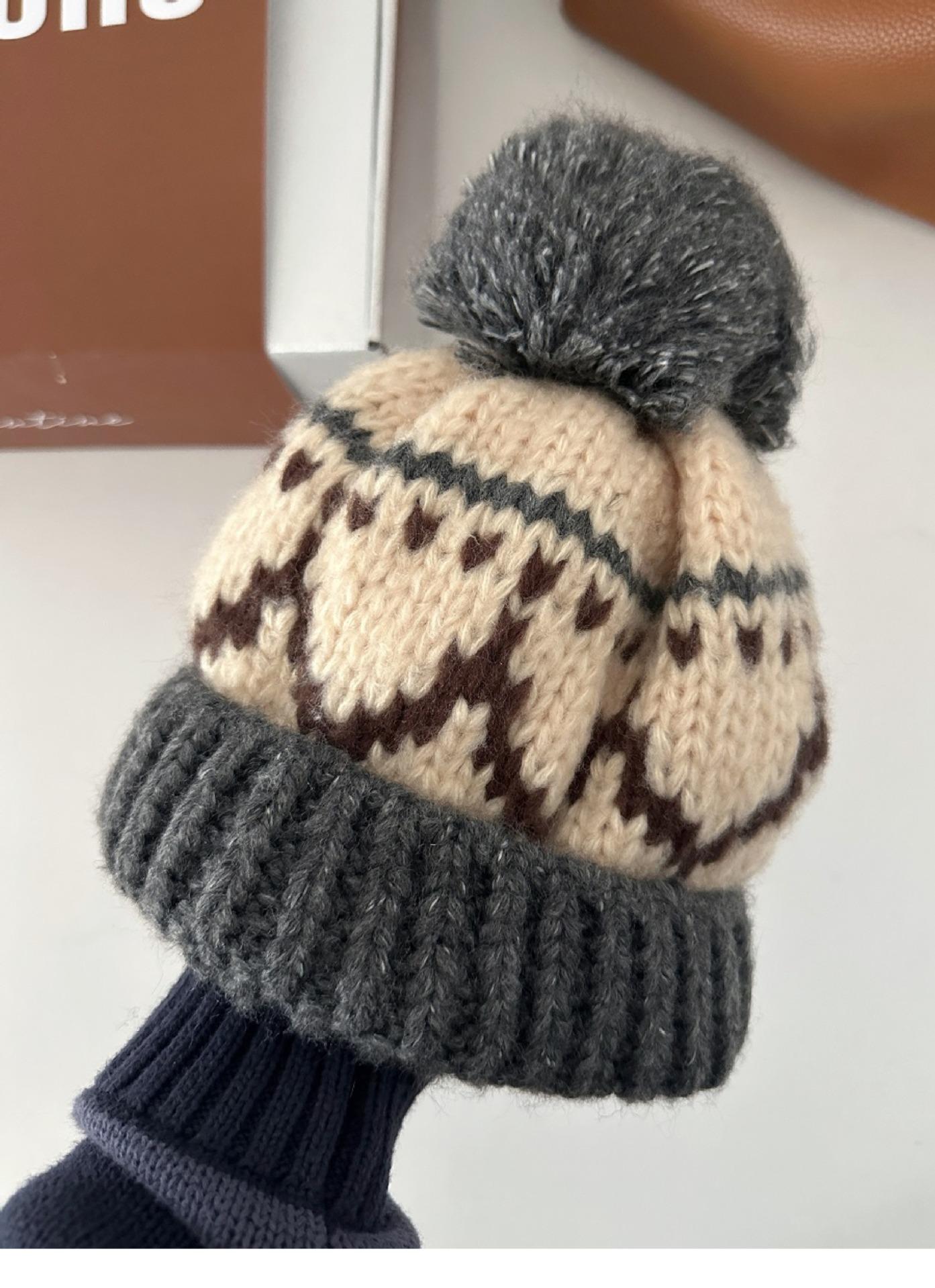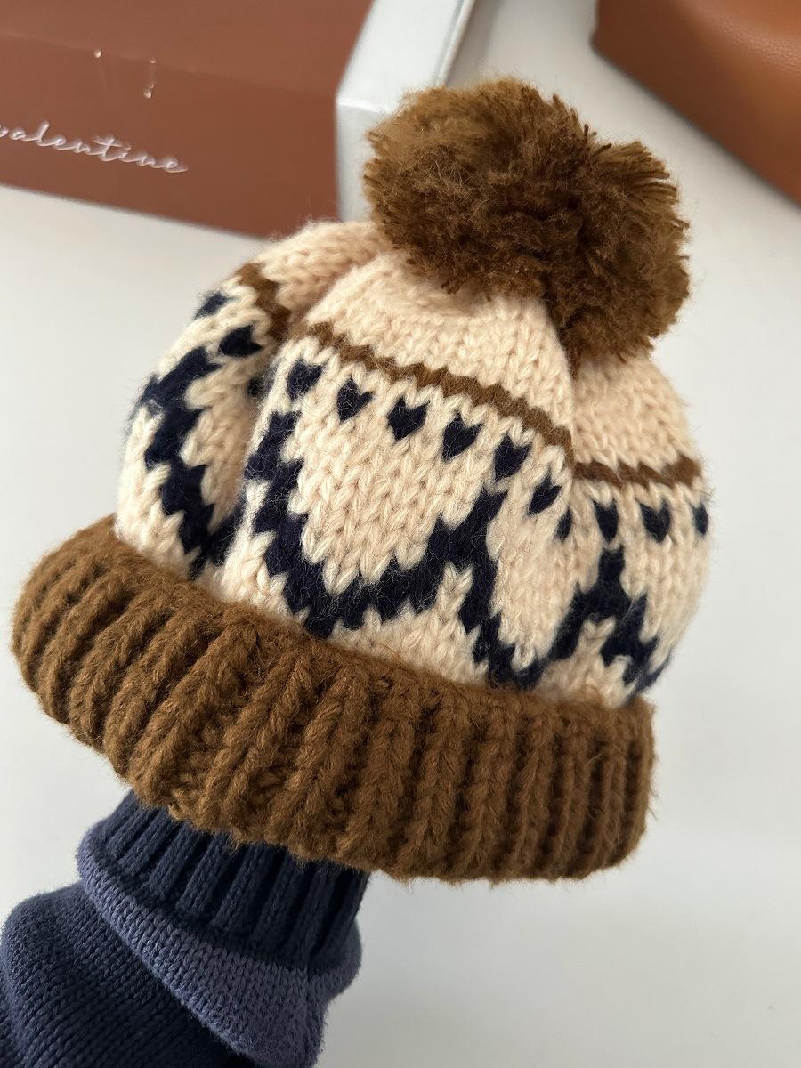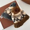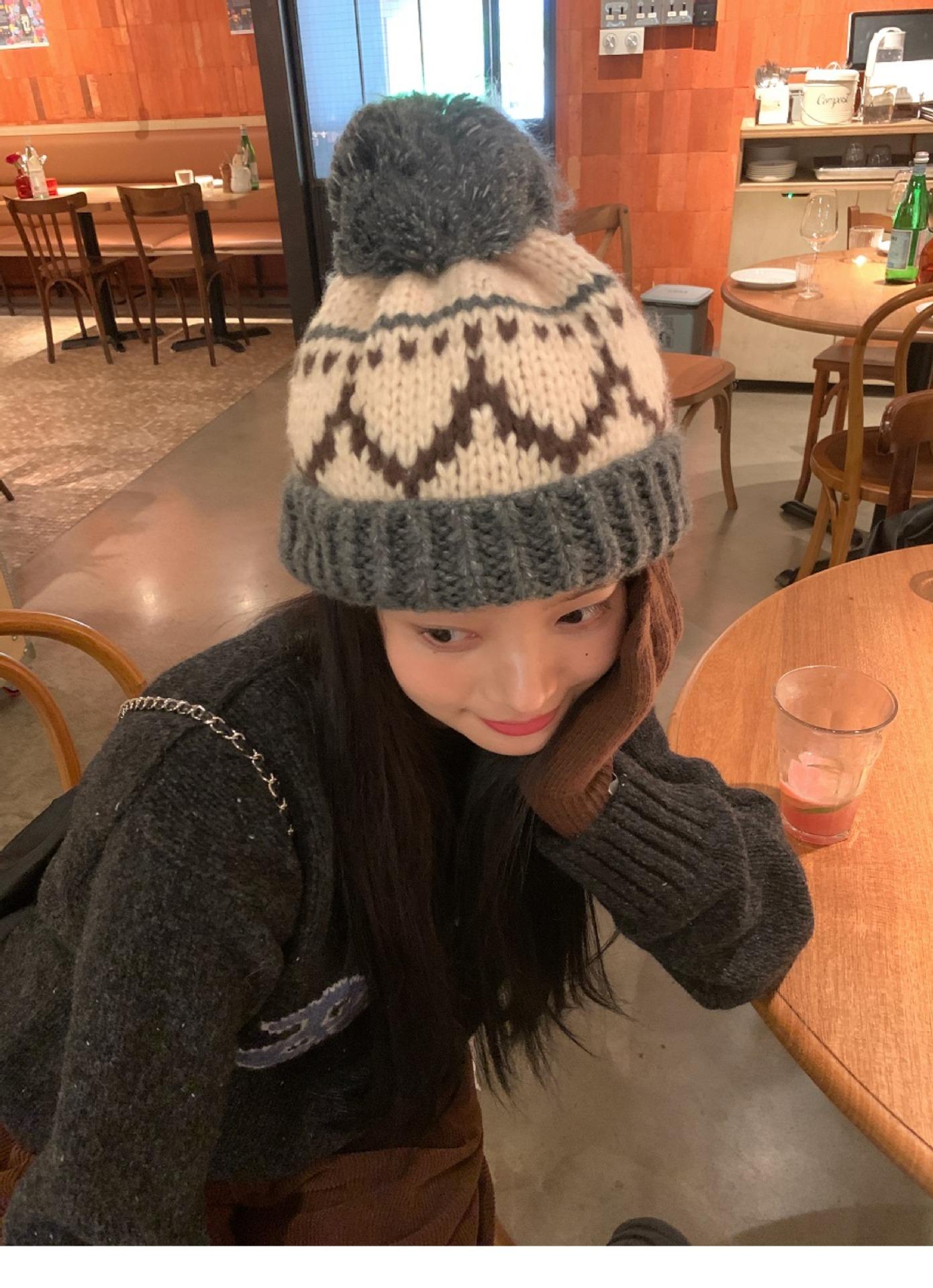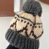 Gorro de lana jacquard vintage de estilo coreano, nuevo, para mujer, otoño e invierno, bonito gorro de punto con bola de pelo, gorro cálido para esquiar.