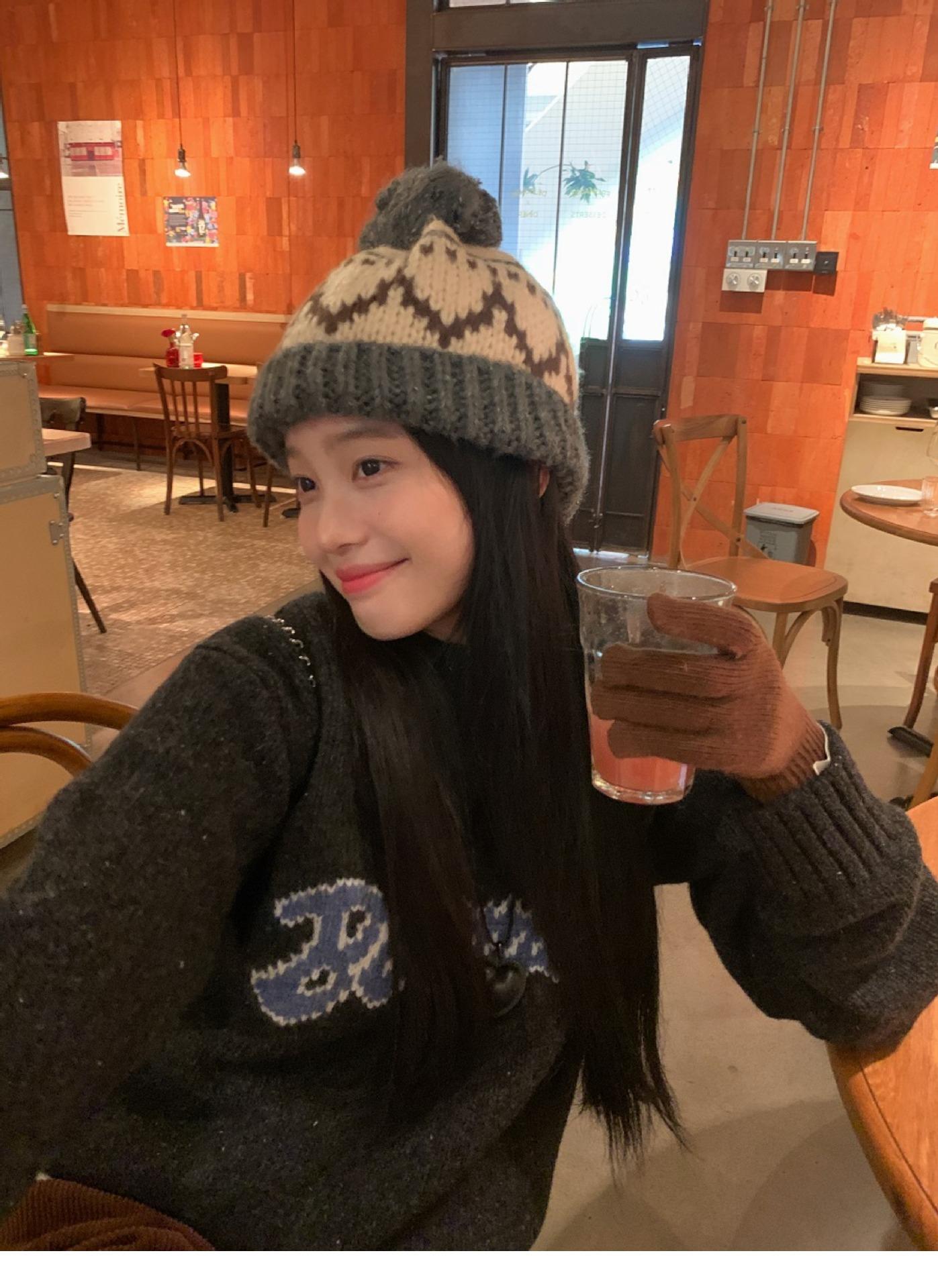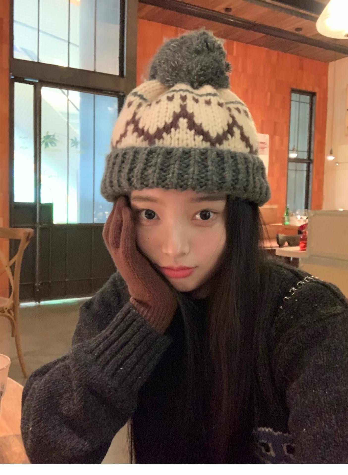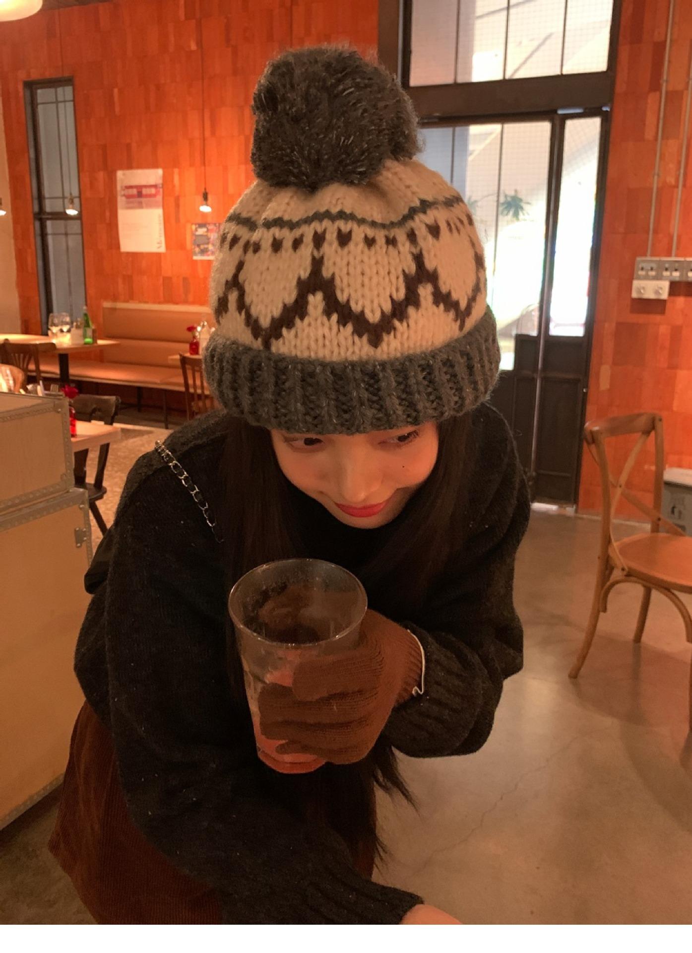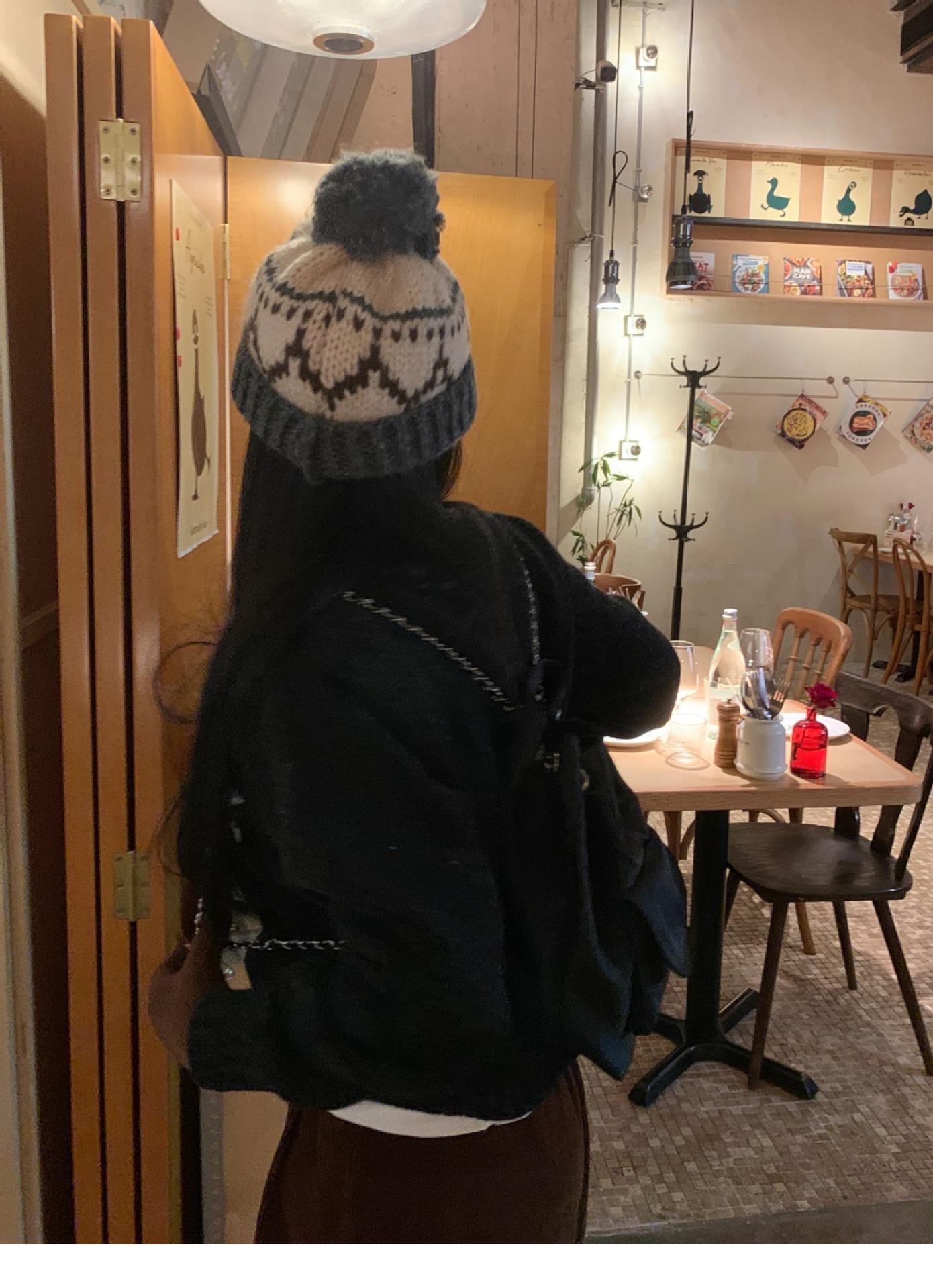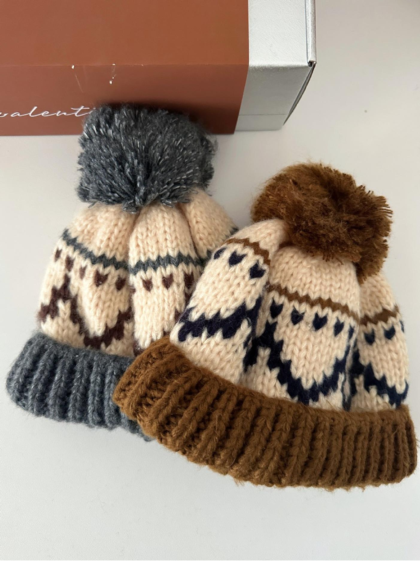Gorro de lana jacquard vintage de estilo coreano, nuevo, para mujer, otoño e invierno, bonito gorro de punto con bola de pelo, gorro cálido para esquiar.
